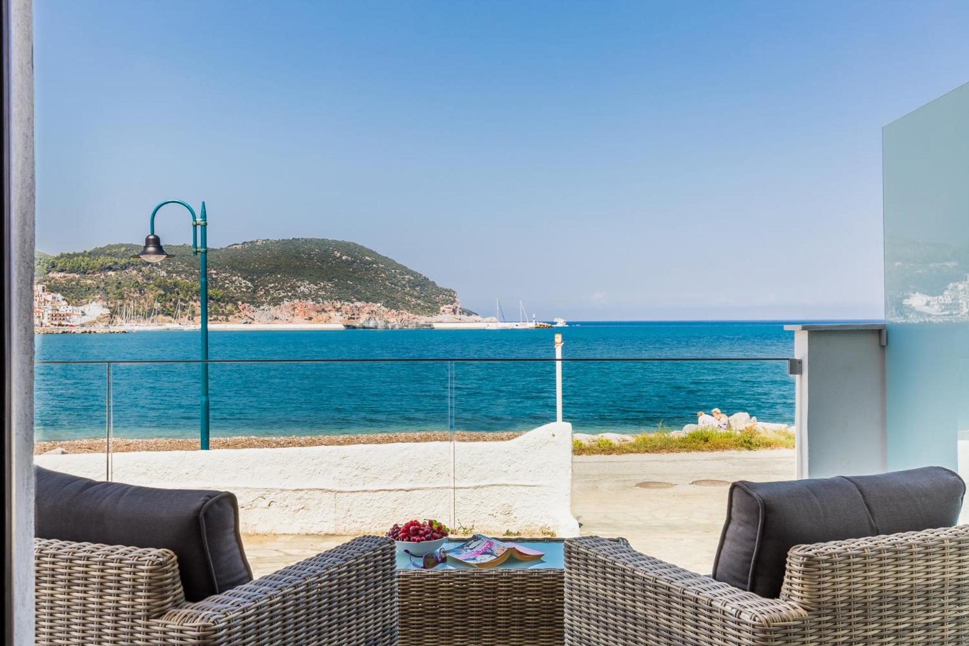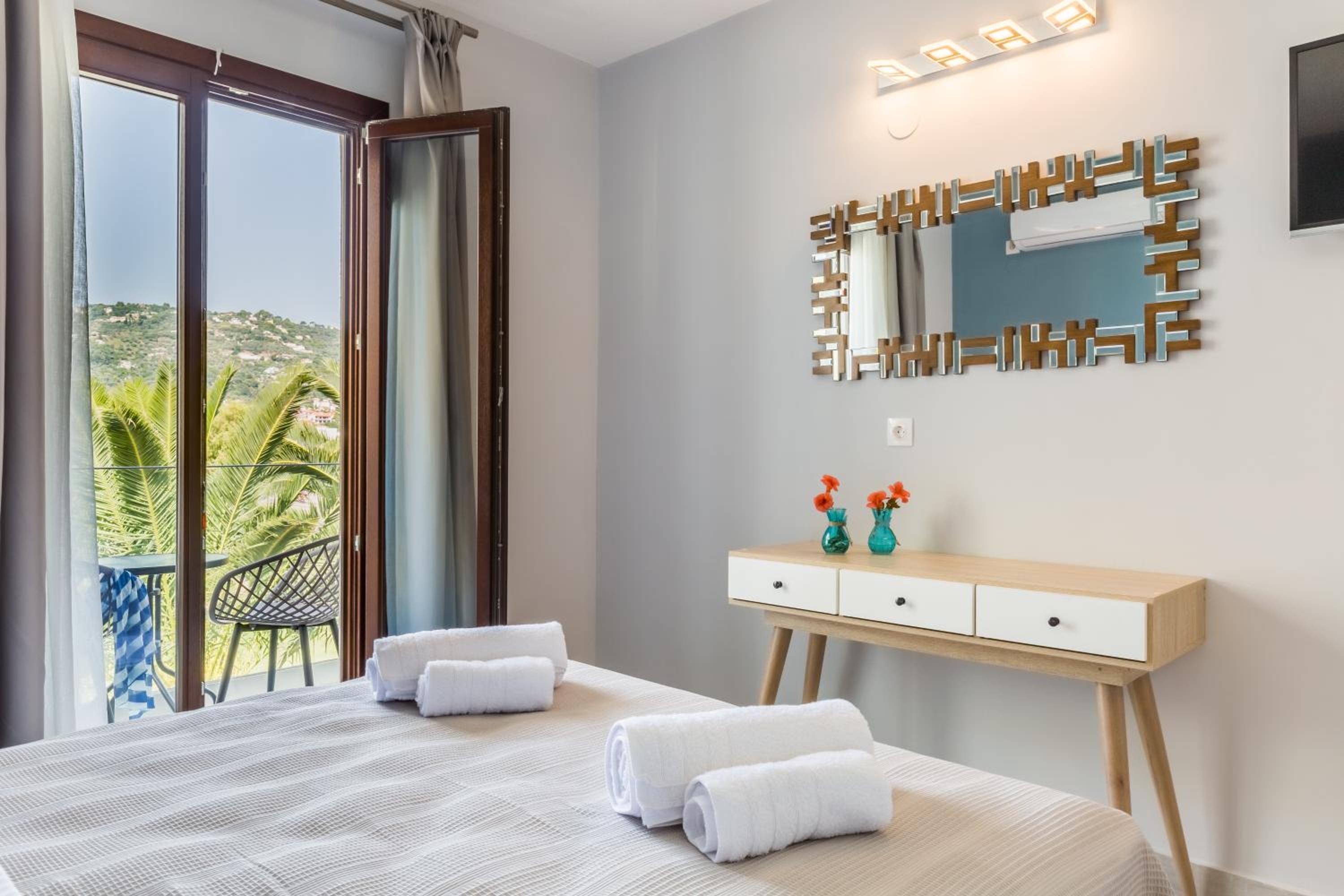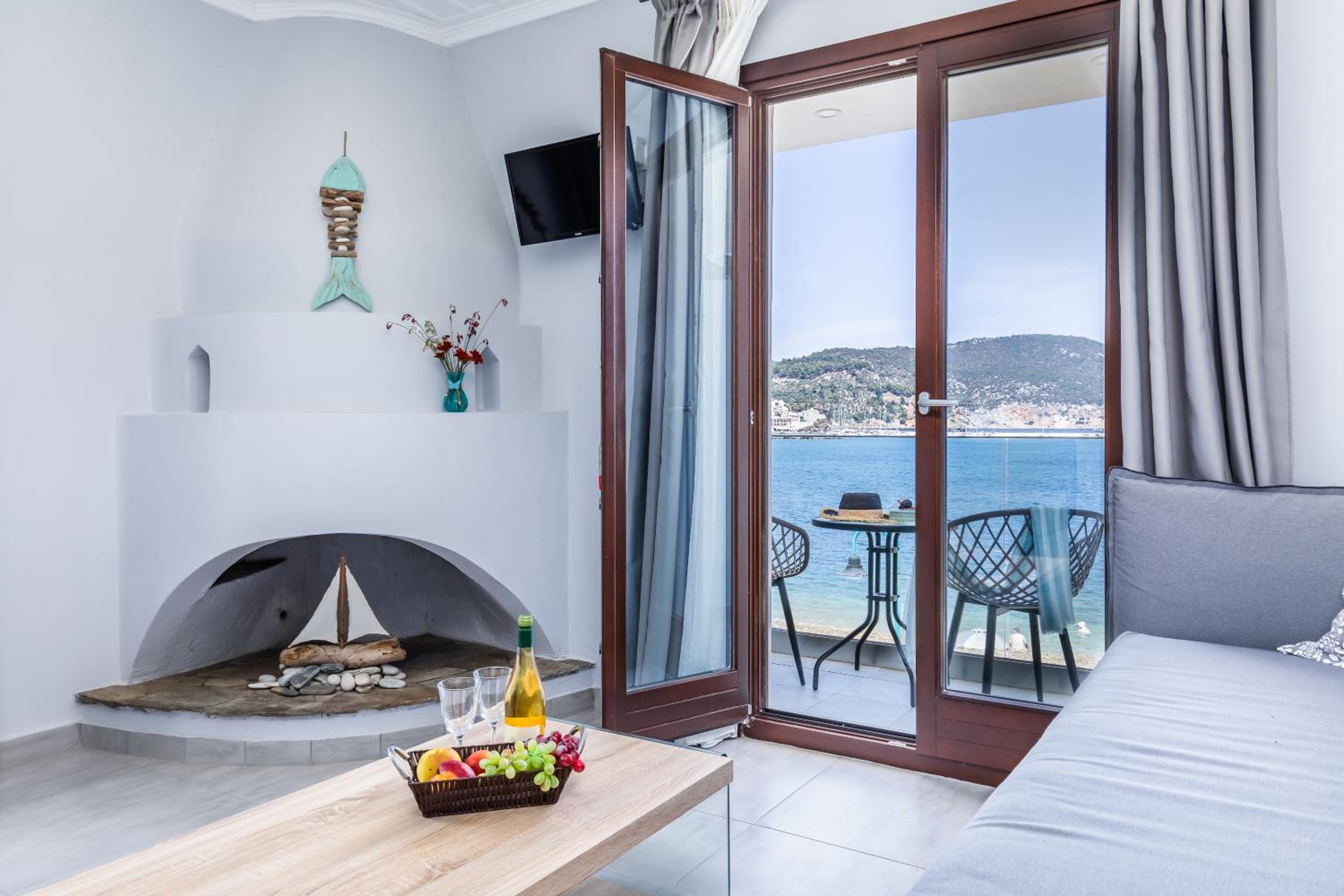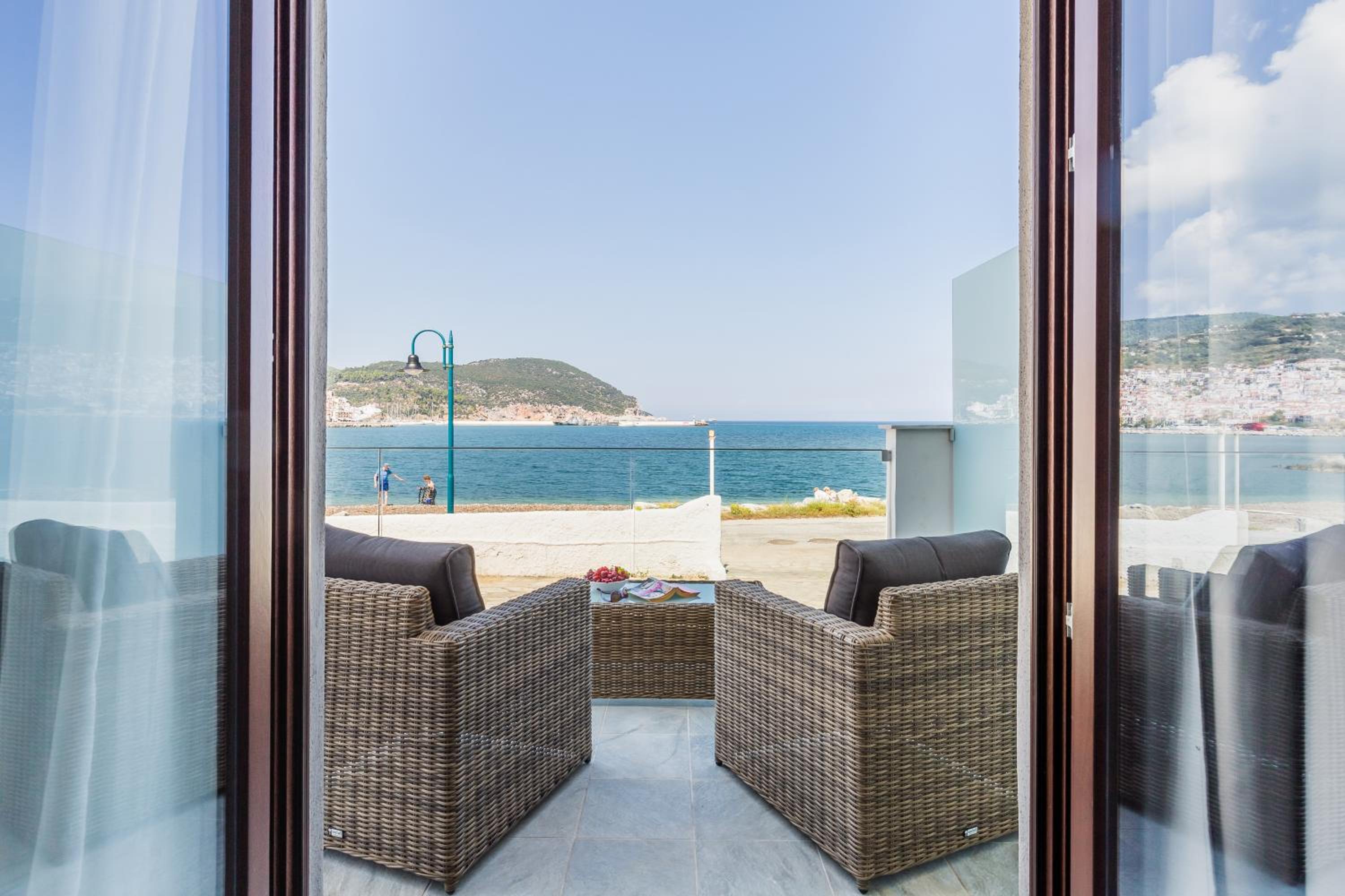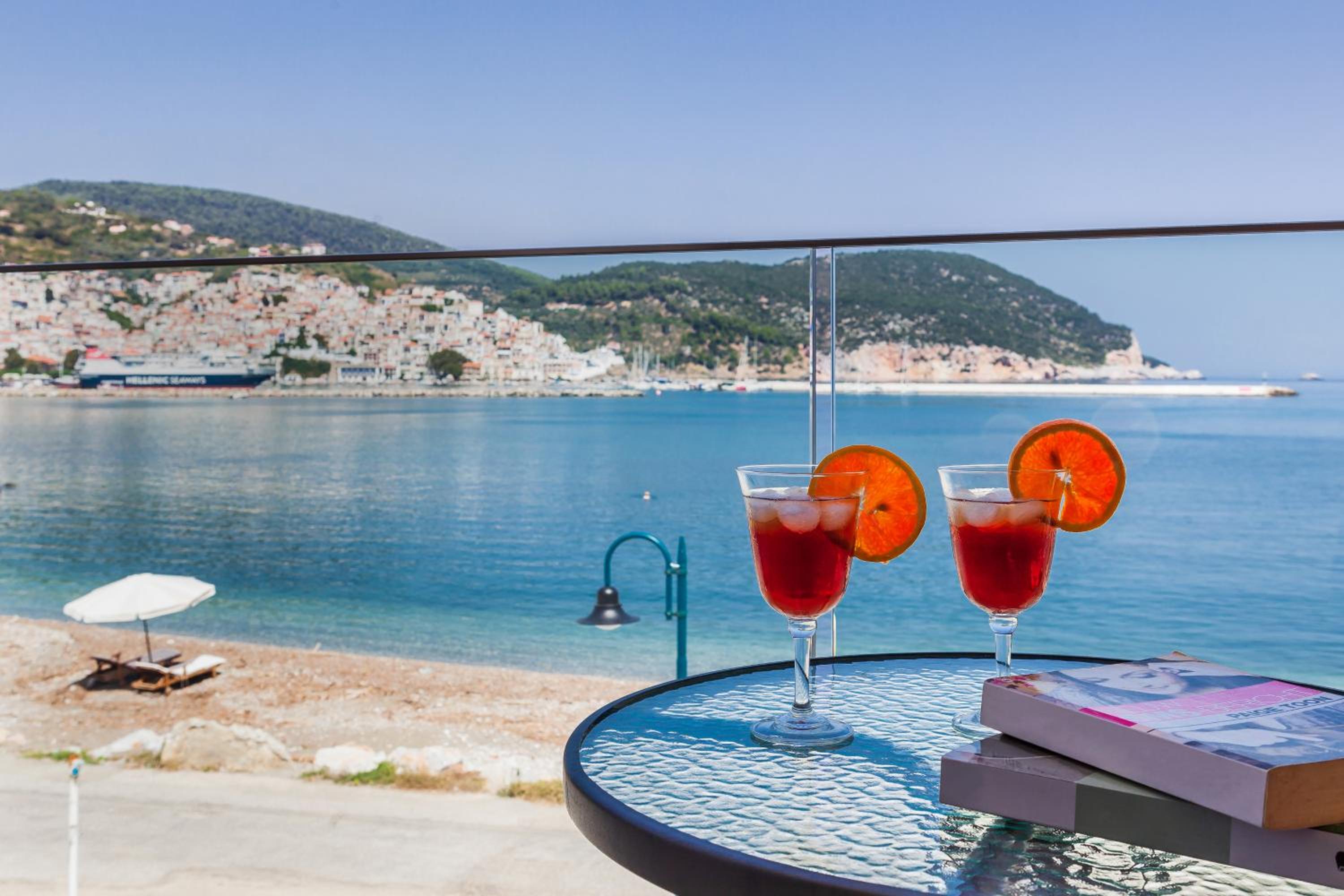 Prachtig zicht op de zee en Skopelos stad vanuit ons terras van kamer 102. Zeer verzorgd ontbijt buiten naast het zwembad in de schaduw. Zeer vriendelijk personeel met een super uitleg over de troeven van het mooie eiland Skopelos.