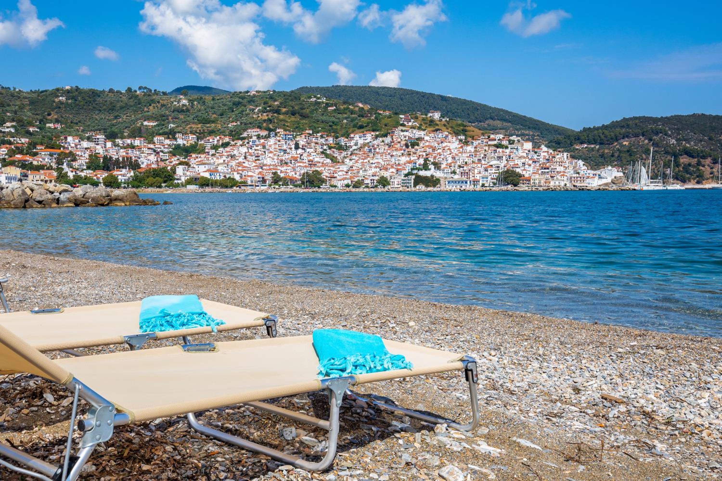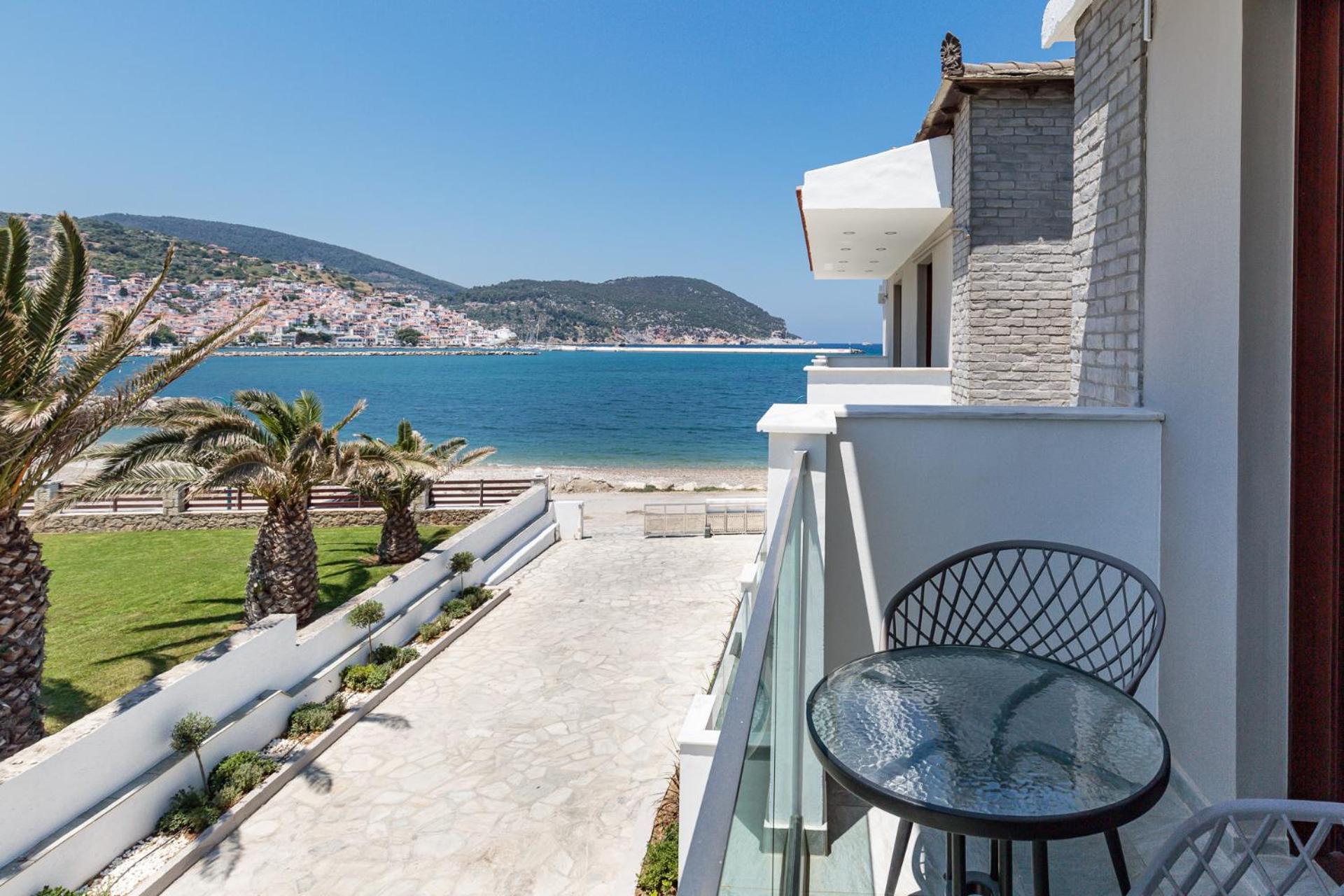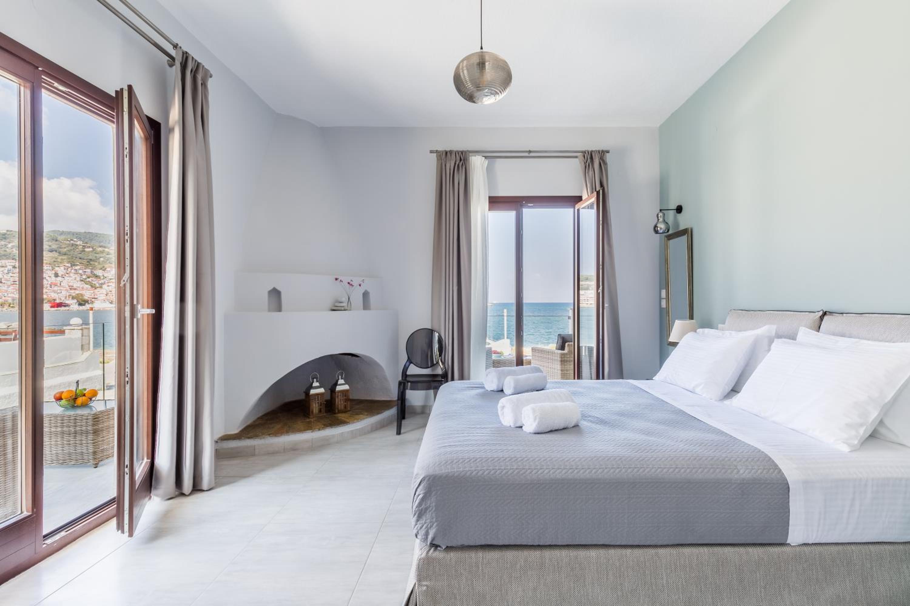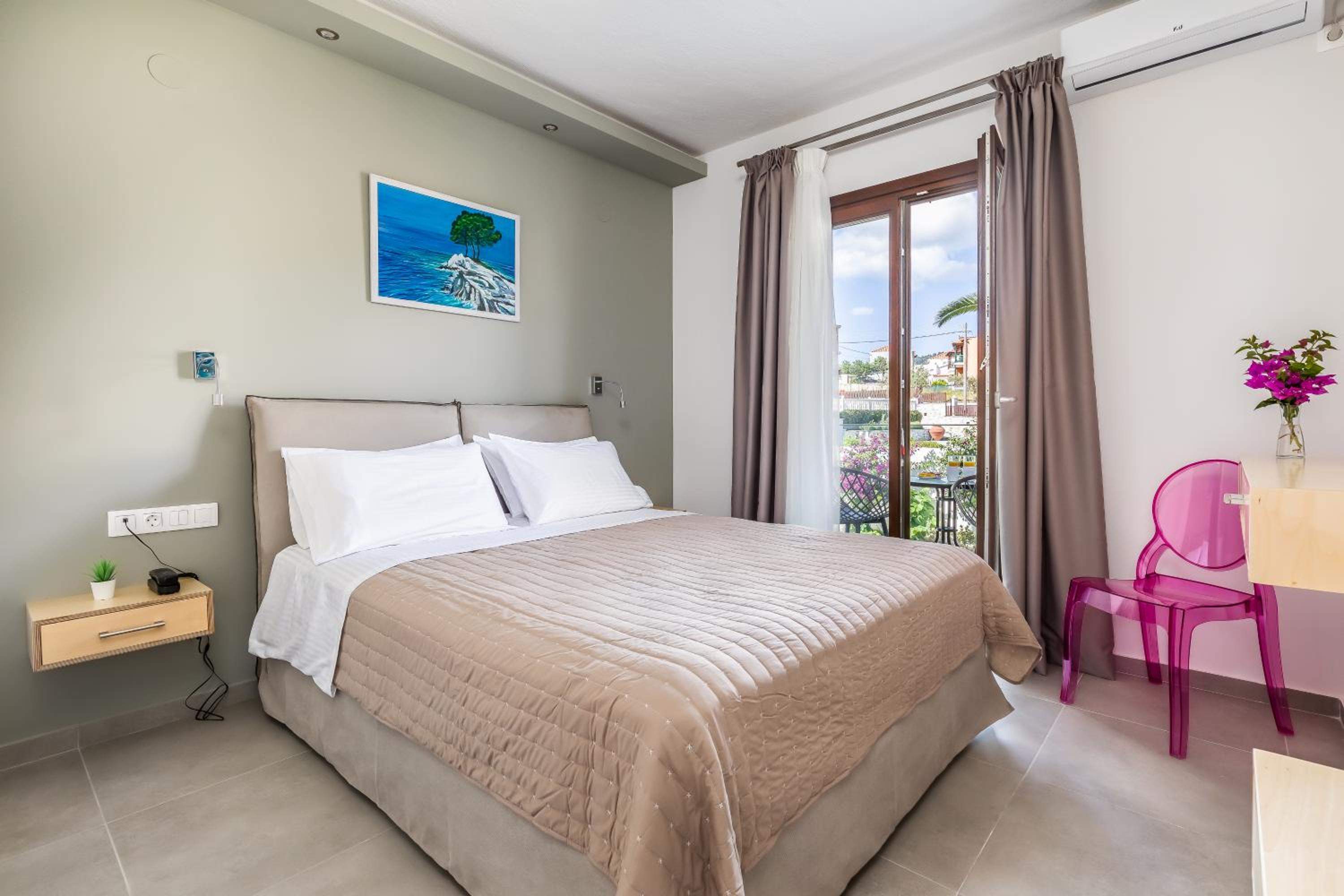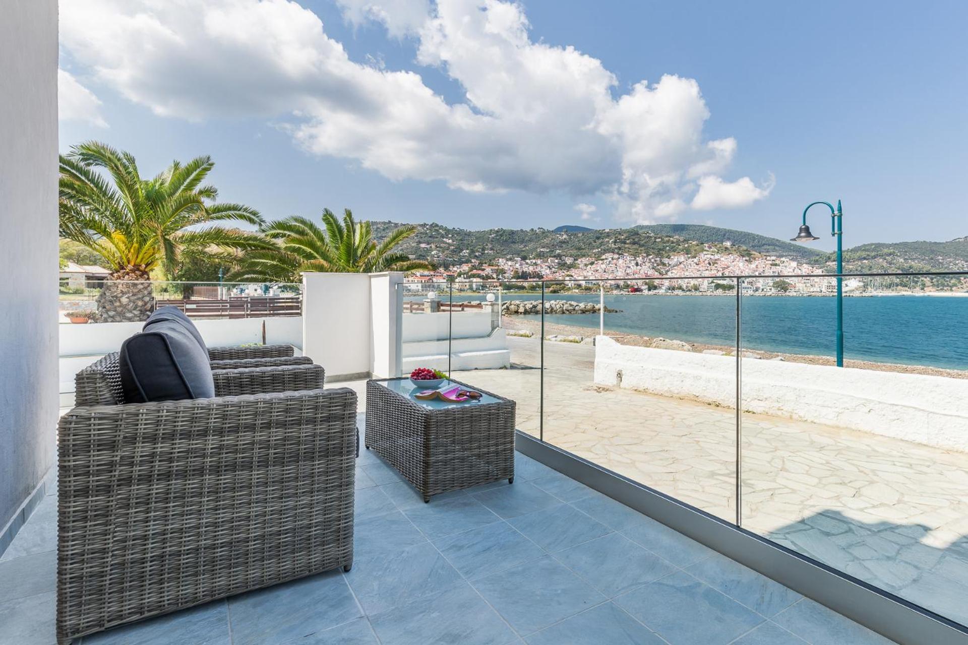 Prachtig zicht op de zee en Skopelos stad vanuit ons terras van kamer 102. Zeer verzorgd ontbijt buiten naast het zwembad in de schaduw. Zeer vriendelijk personeel met een super uitleg over de troeven van het mooie eiland Skopelos.
