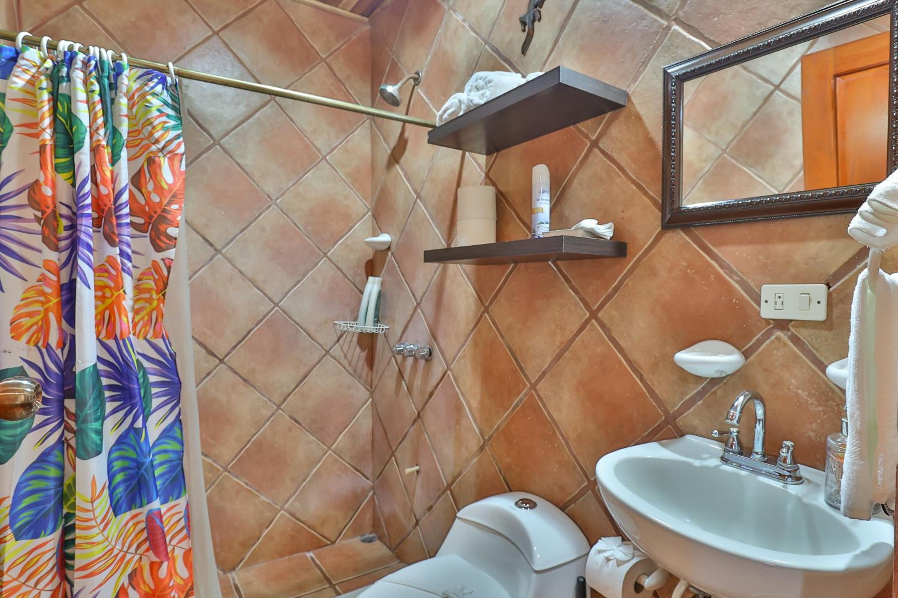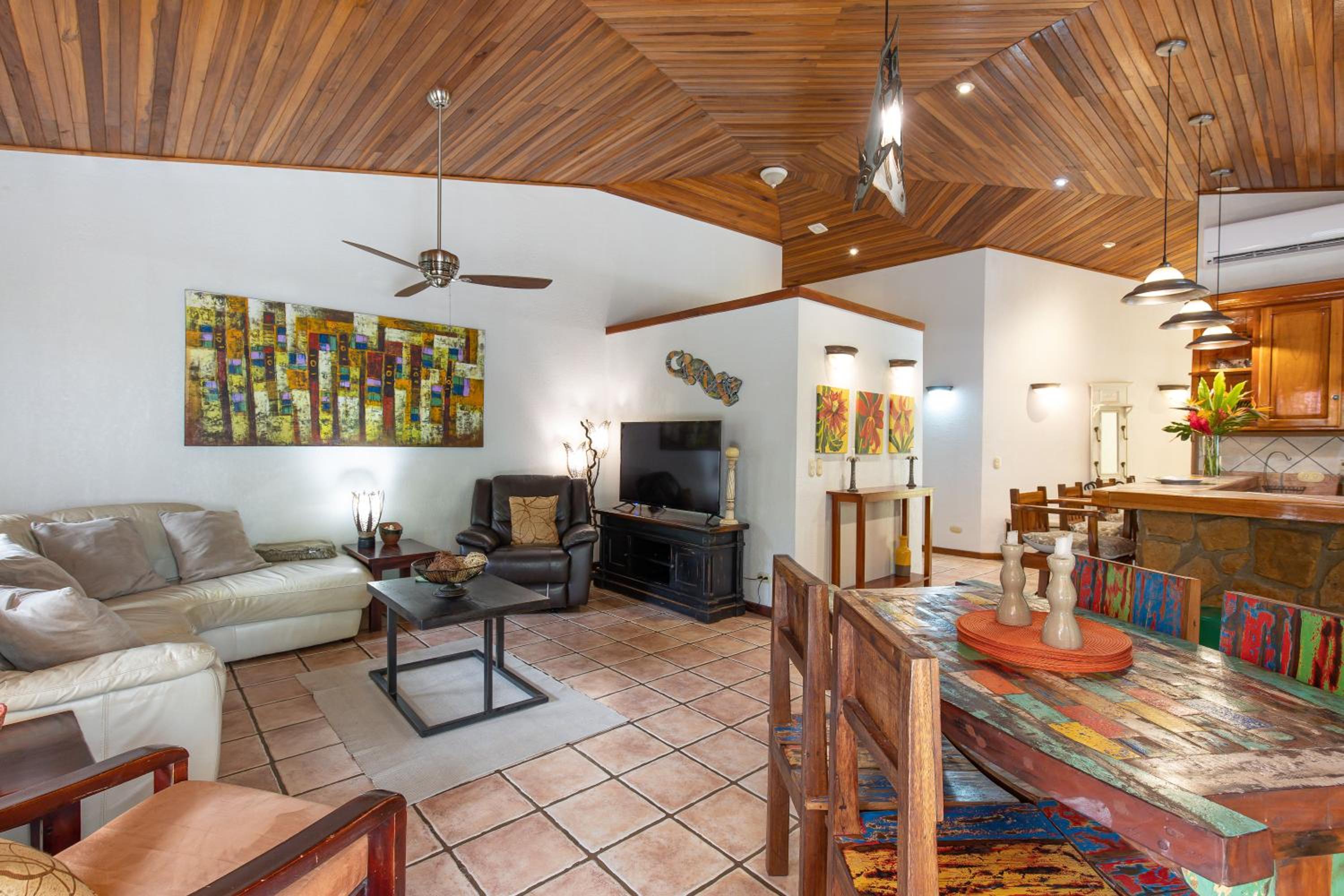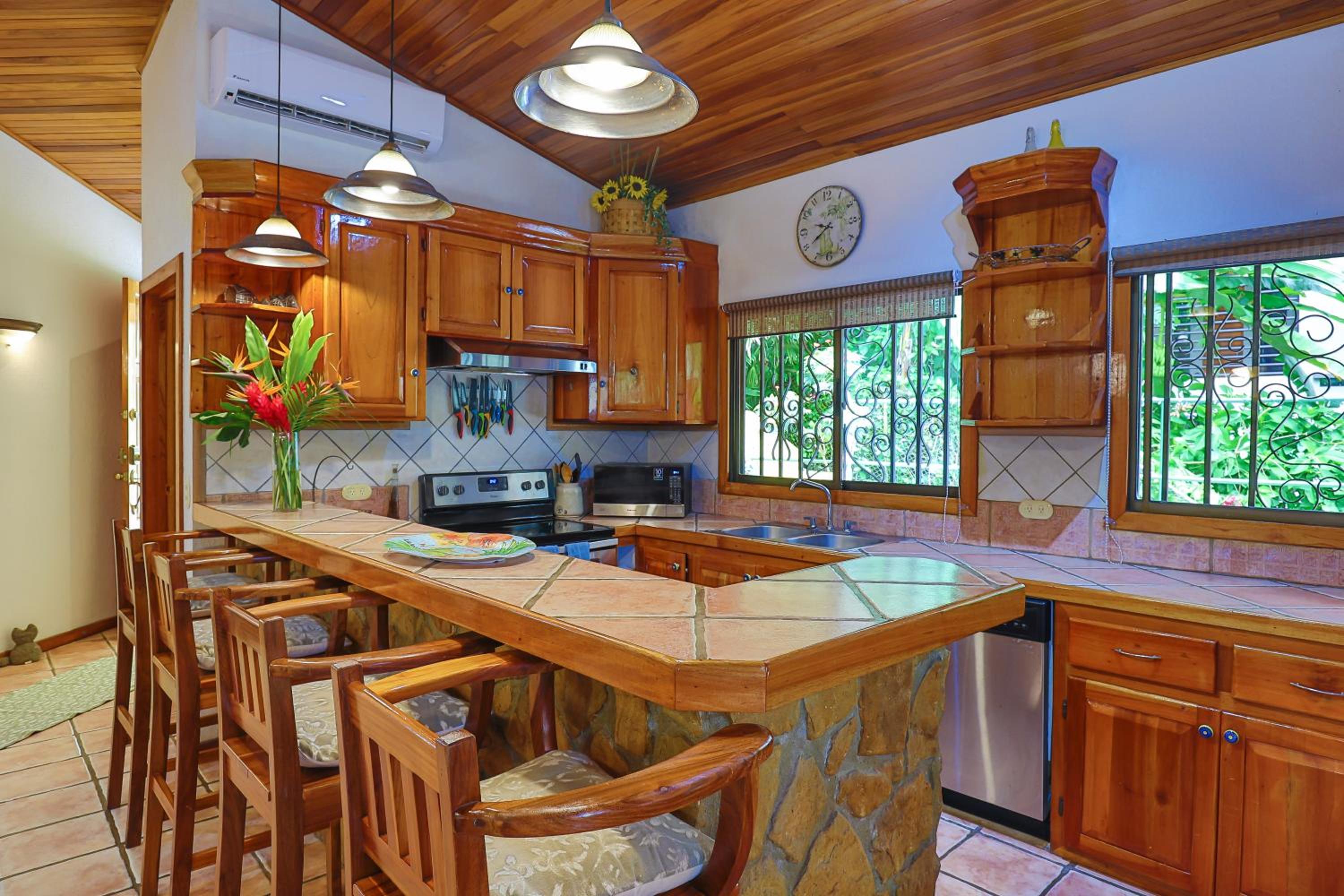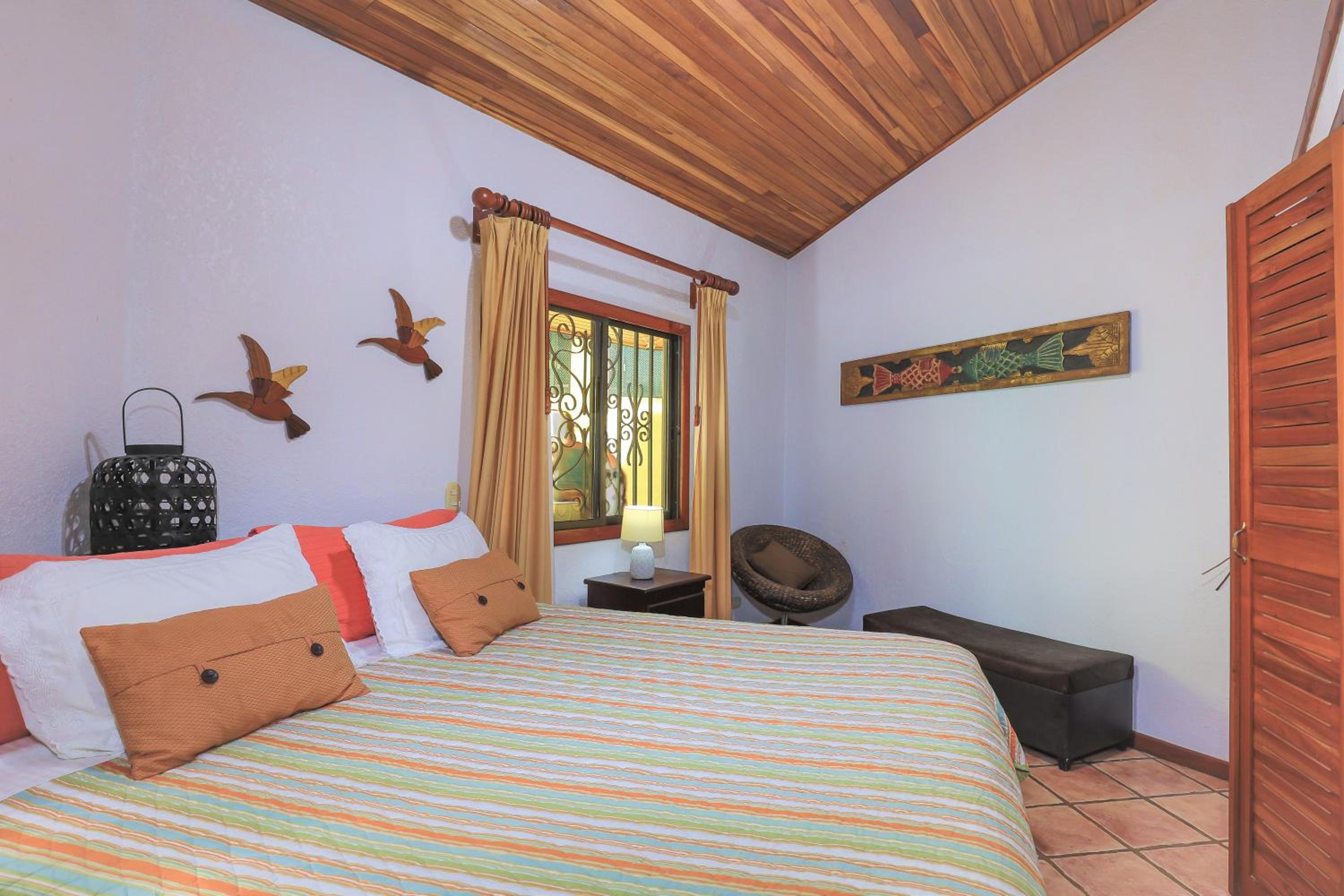 The house is up a quiet road which is nice. It was great for my family with three bedrooms and two bathrooms. It has a beautiful courtyard with a pool and is well kept. We saw some wonderful birds and wildlife from the back patio which was neat for people who aren't used to seeing things like toucans in the wild.