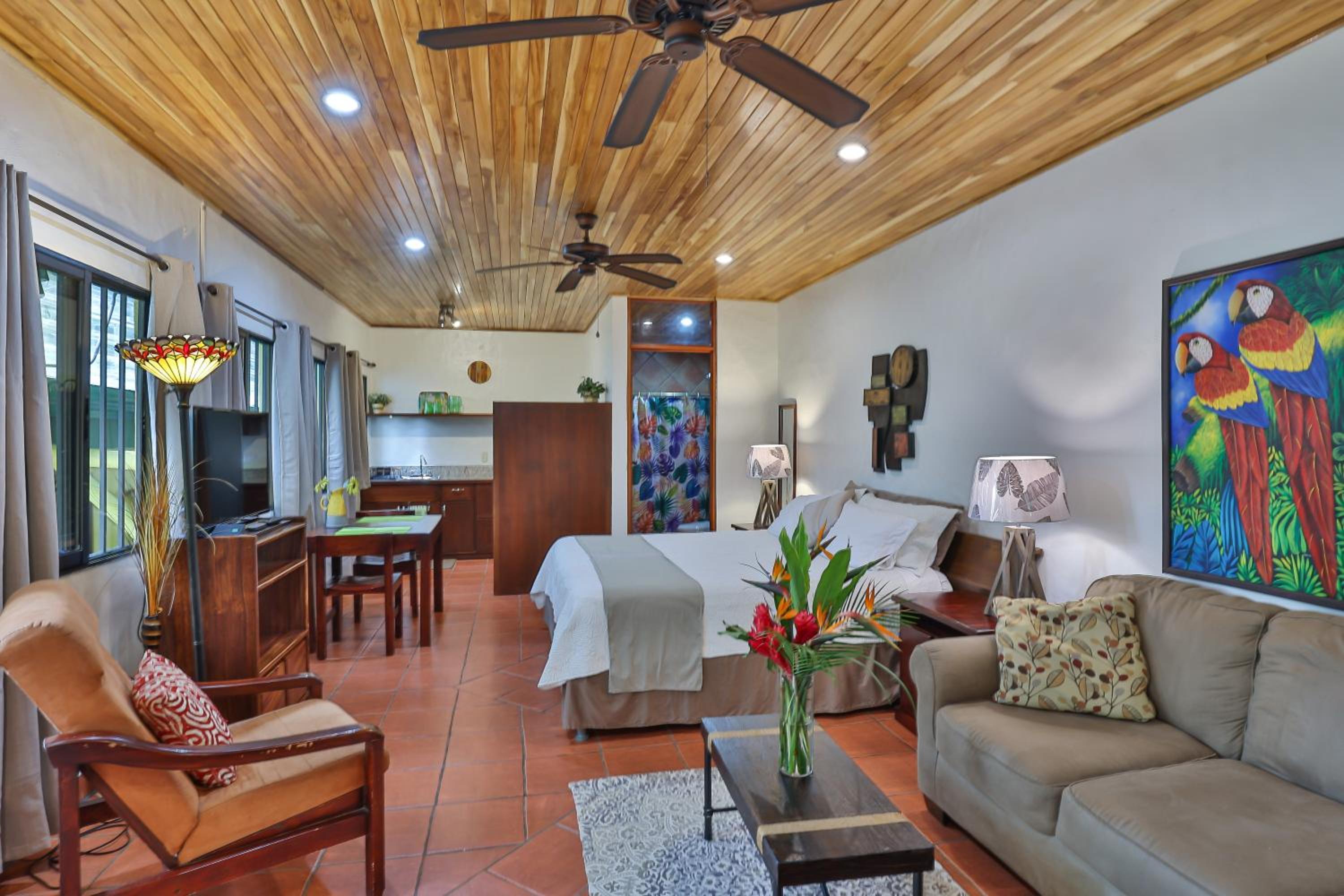 Loved the property's eclectic layout and setting (neighborhood of homes set in the jungle. Great location close to everthing. ) Nice small community pool / sitting area. Heidi the manager was helpful and attentive,