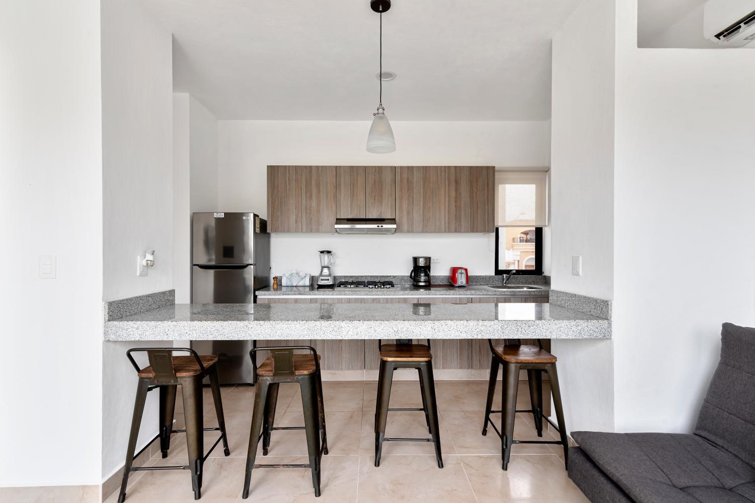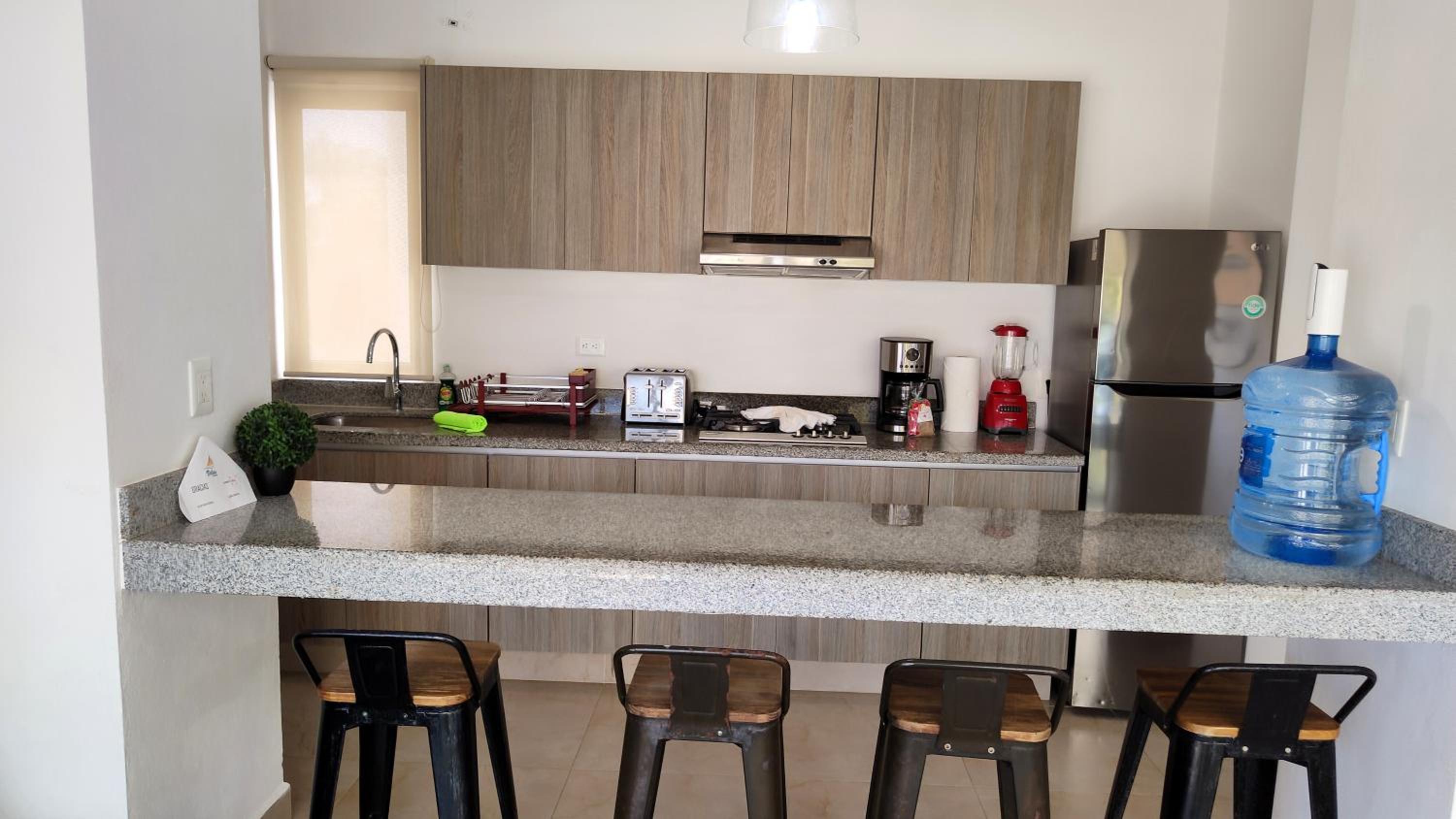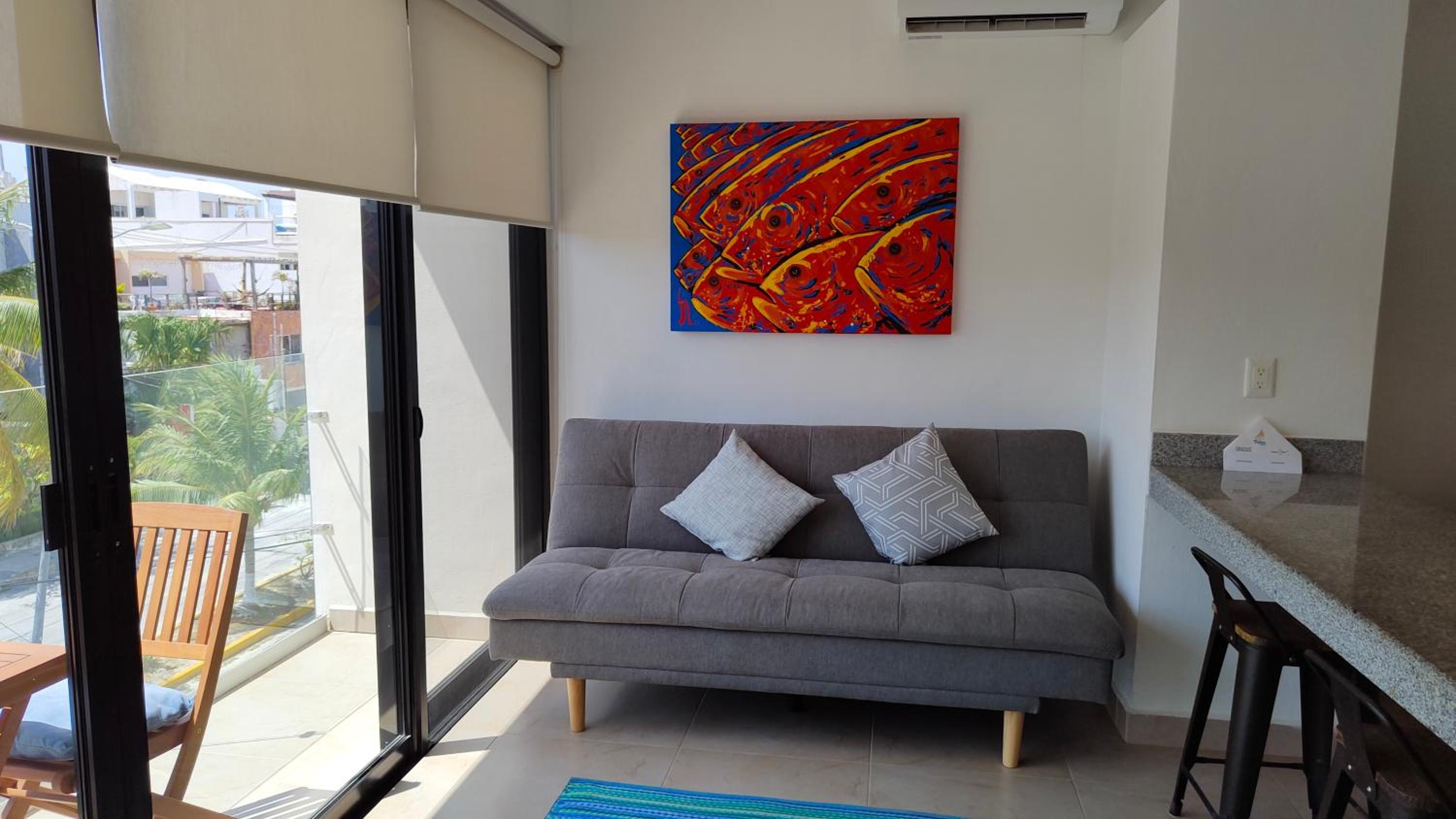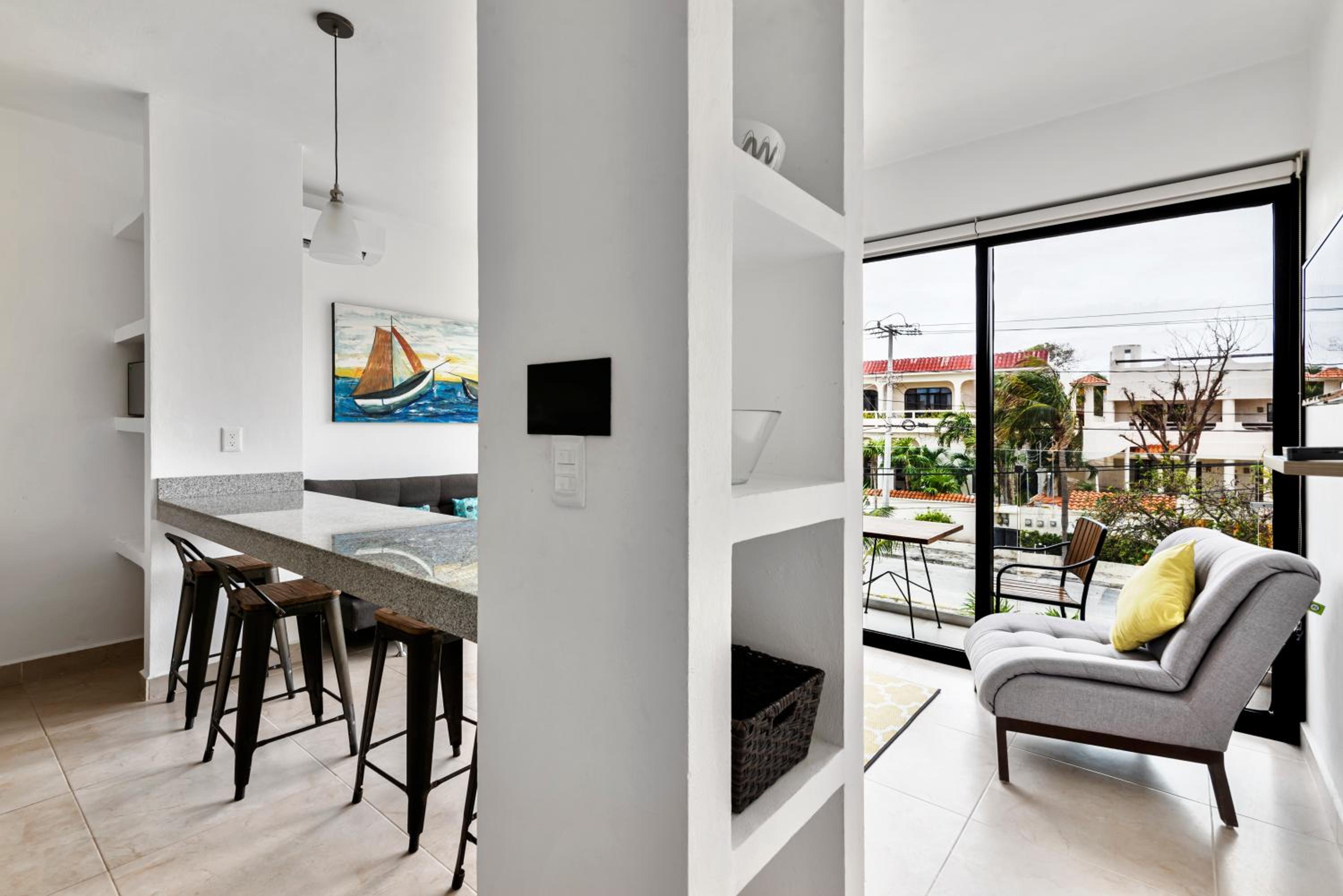 short walk to the beach, super quiet location and neighborhood, walking distance to downtown Puerto.