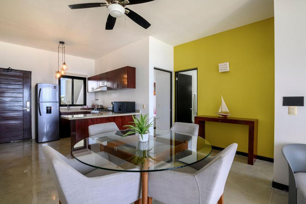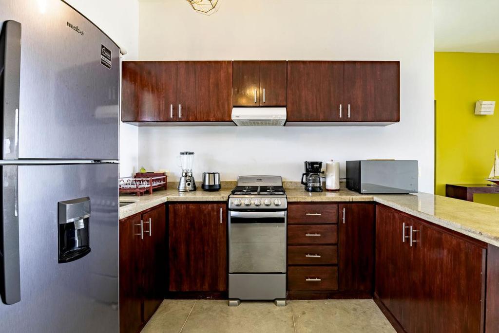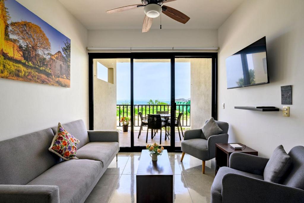 Wake up to stunning sea views at Vela's Condos Ocean Front in Puerto Morelos. Enjoy the convenience of a private entrance, fully equipped kitchen, and outdoor pool.