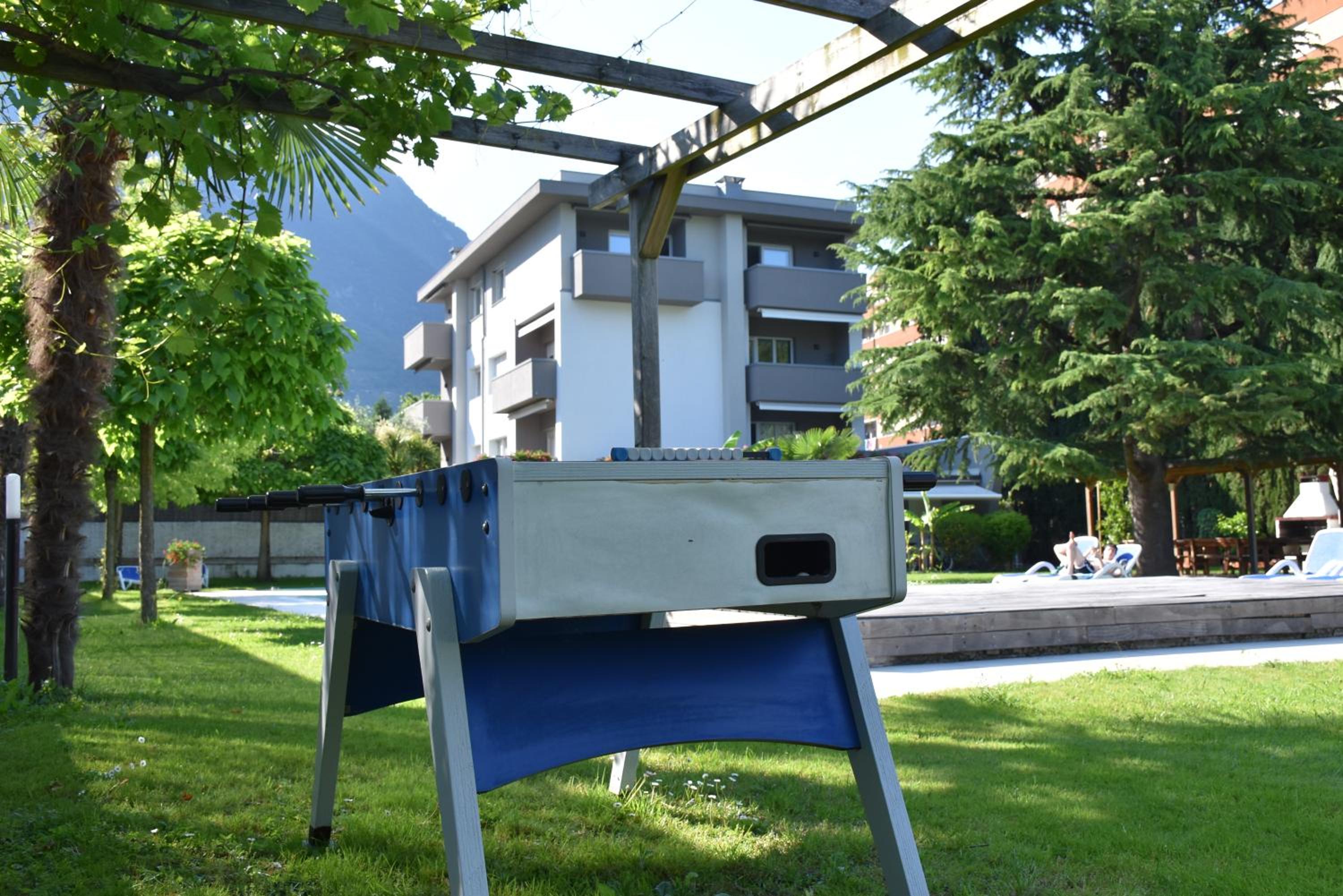Big apartment, big swimmingpool which is open 8-22. Kids could play basketball and tabletennis. A big supermarket nearby.