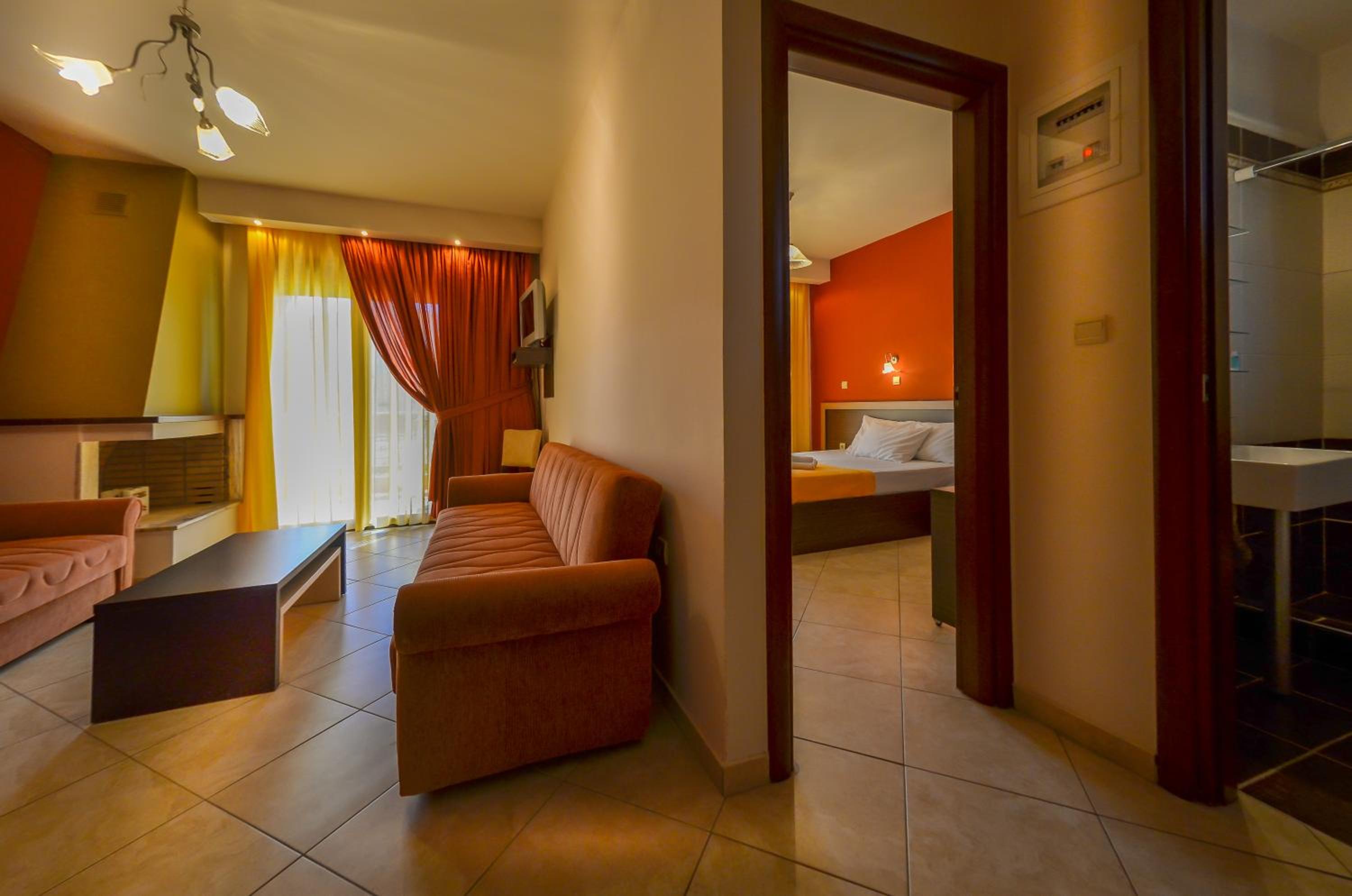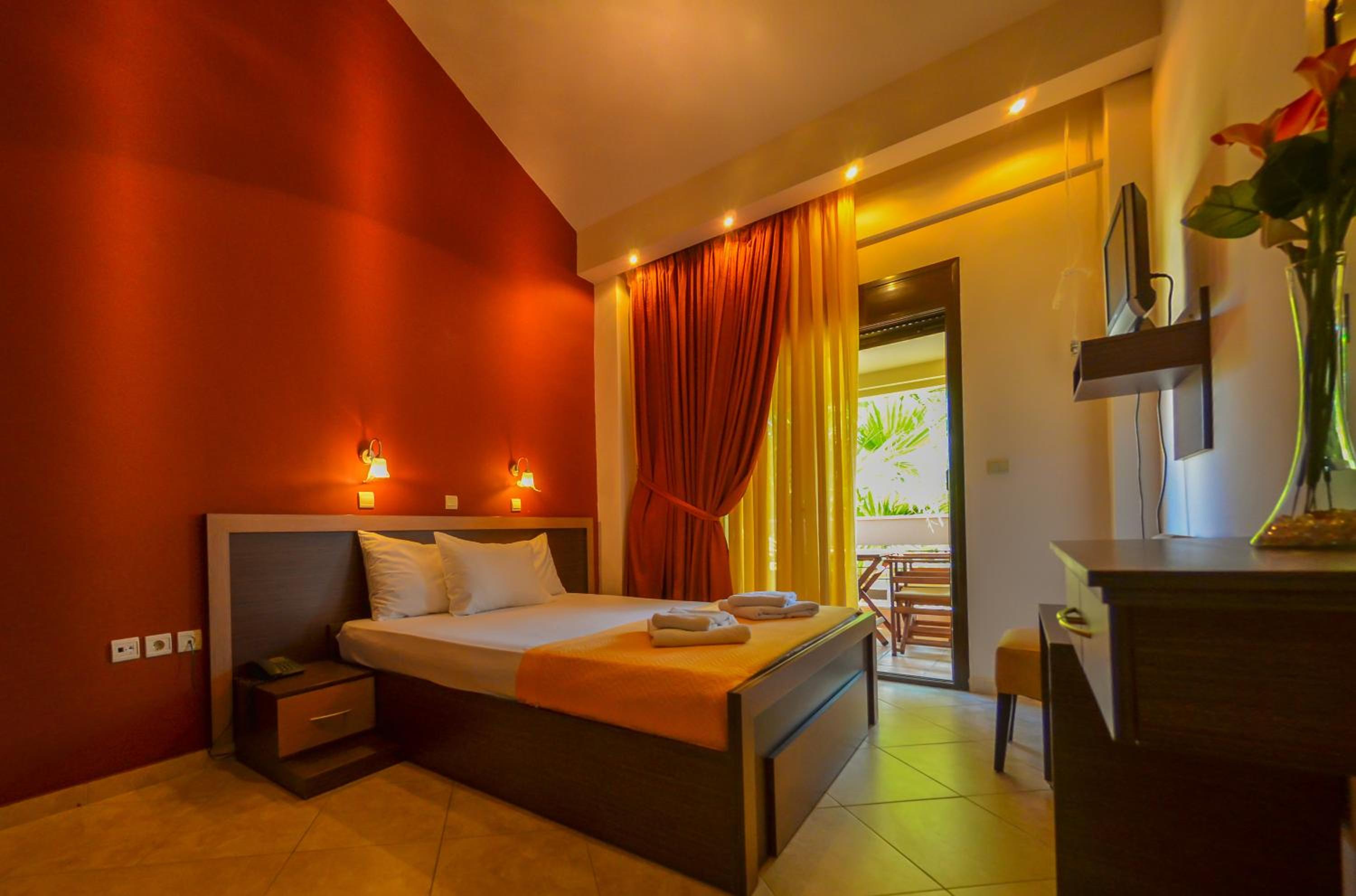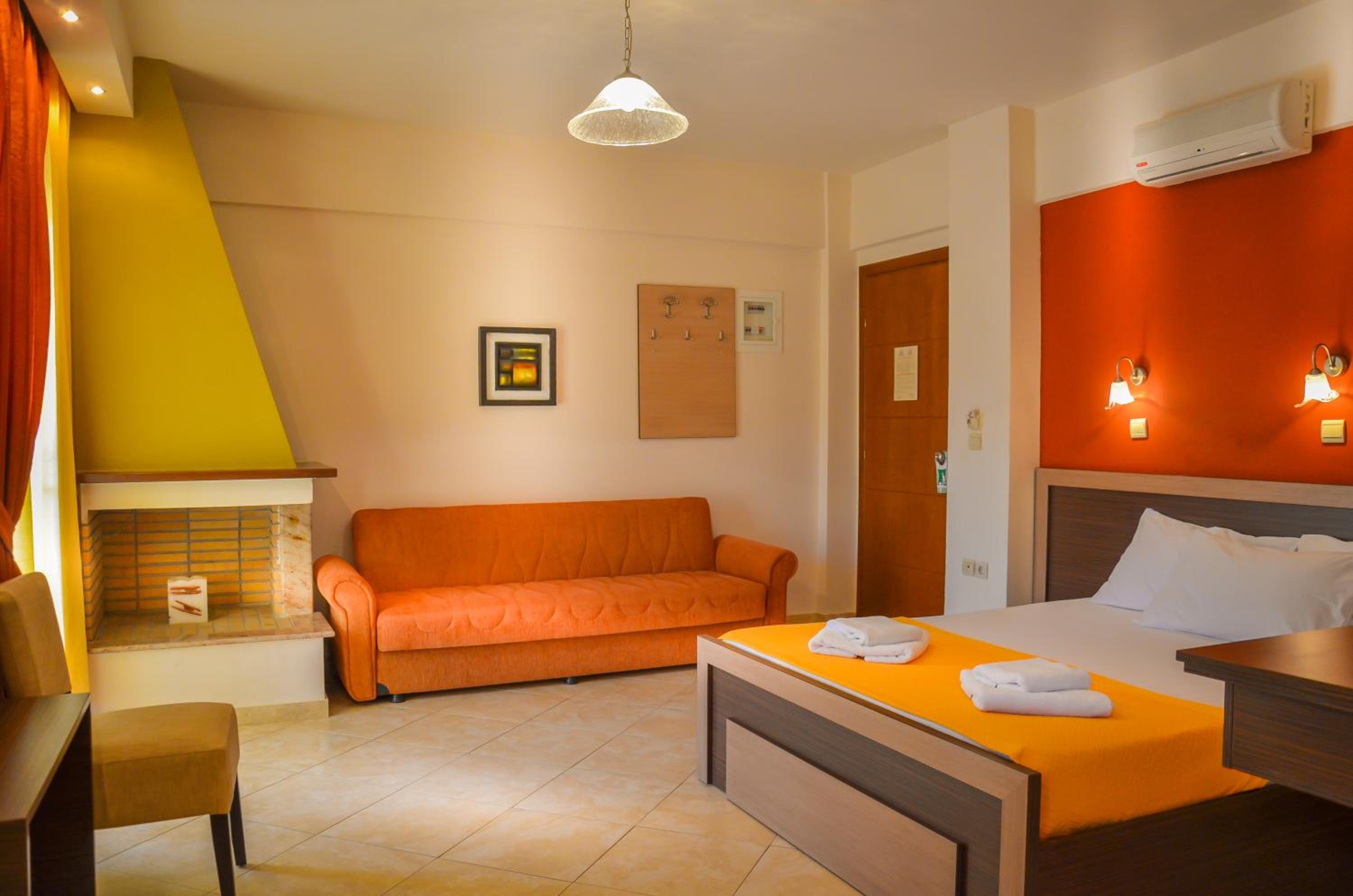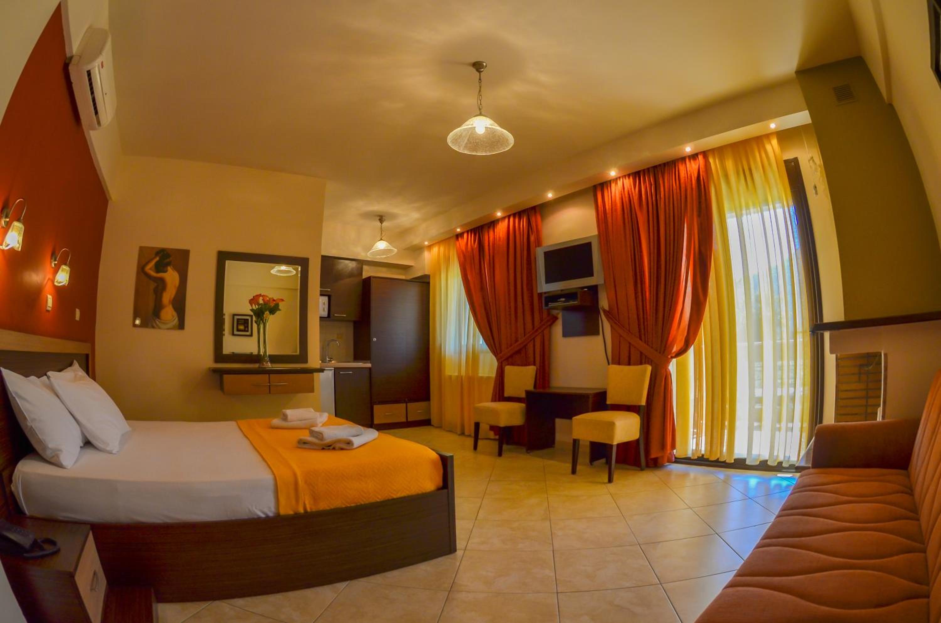 Located just 150 meters from Chryssi Akti Beach, our hotel offers split-level rooms with a furnished balcony, each featuring 1 or 2 LCD TVs. Decorated in warm earthy tones, the rooms are equipped with modern amenities including a fridge, 2 air conditioning units, and a hairdryer. Some rooms even offer stunning views over Ipsario Mountain.