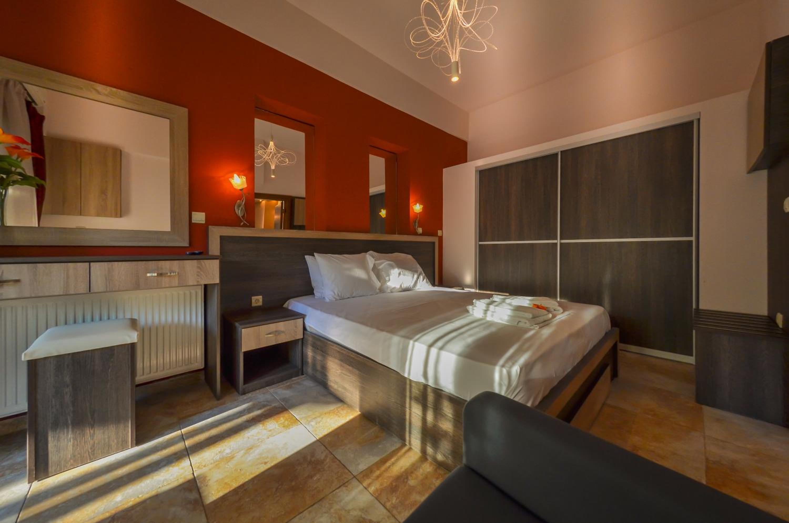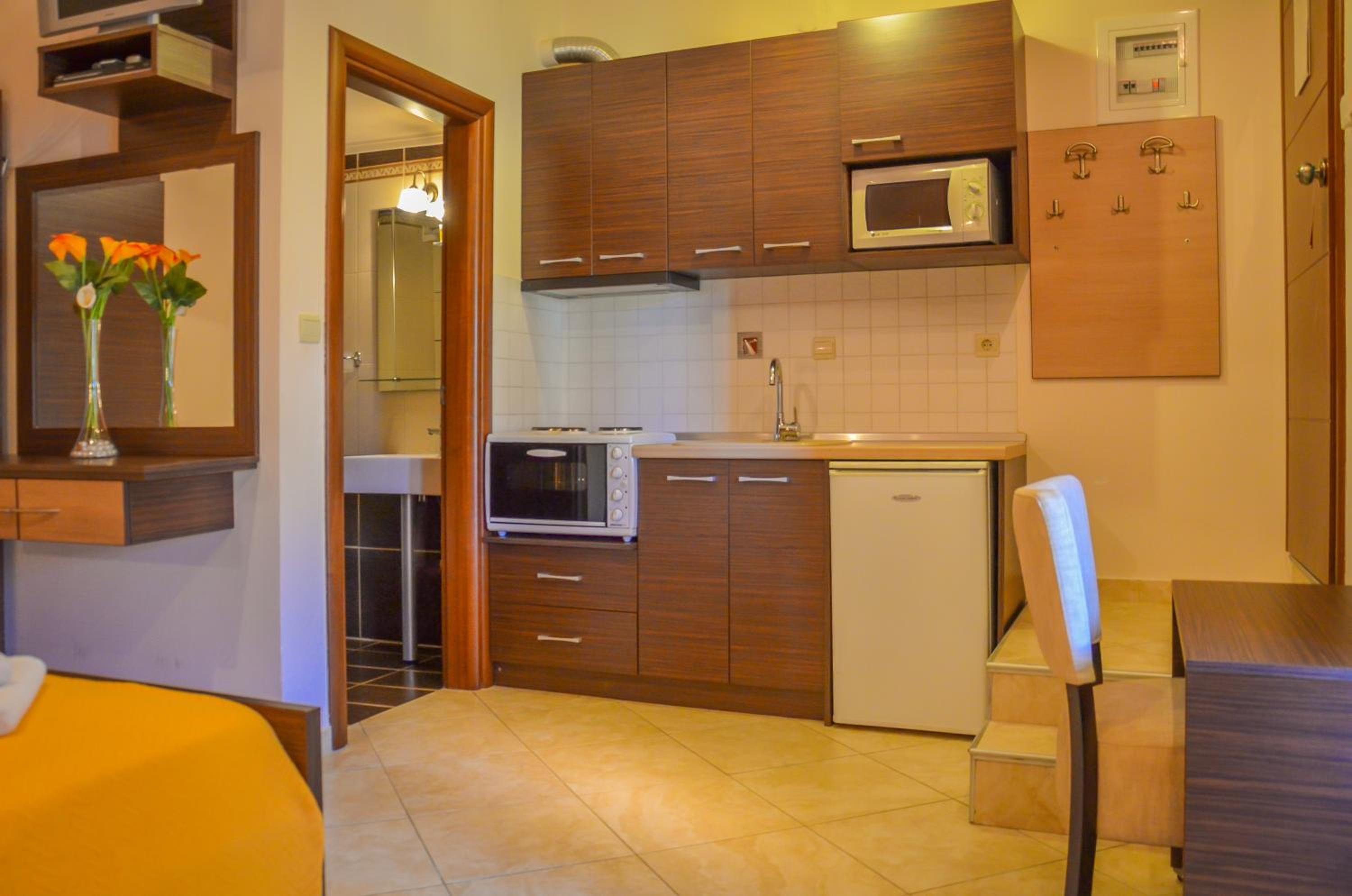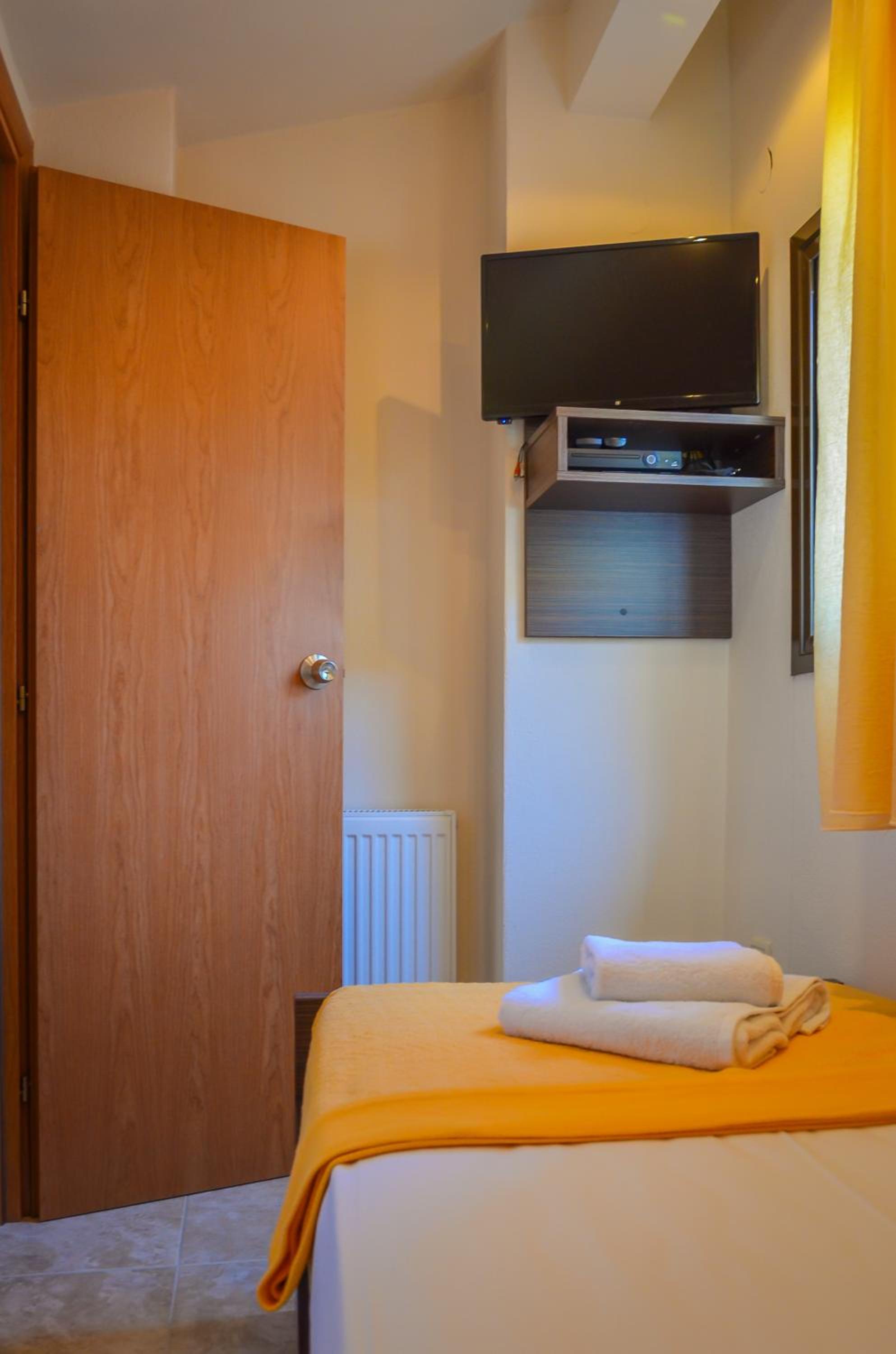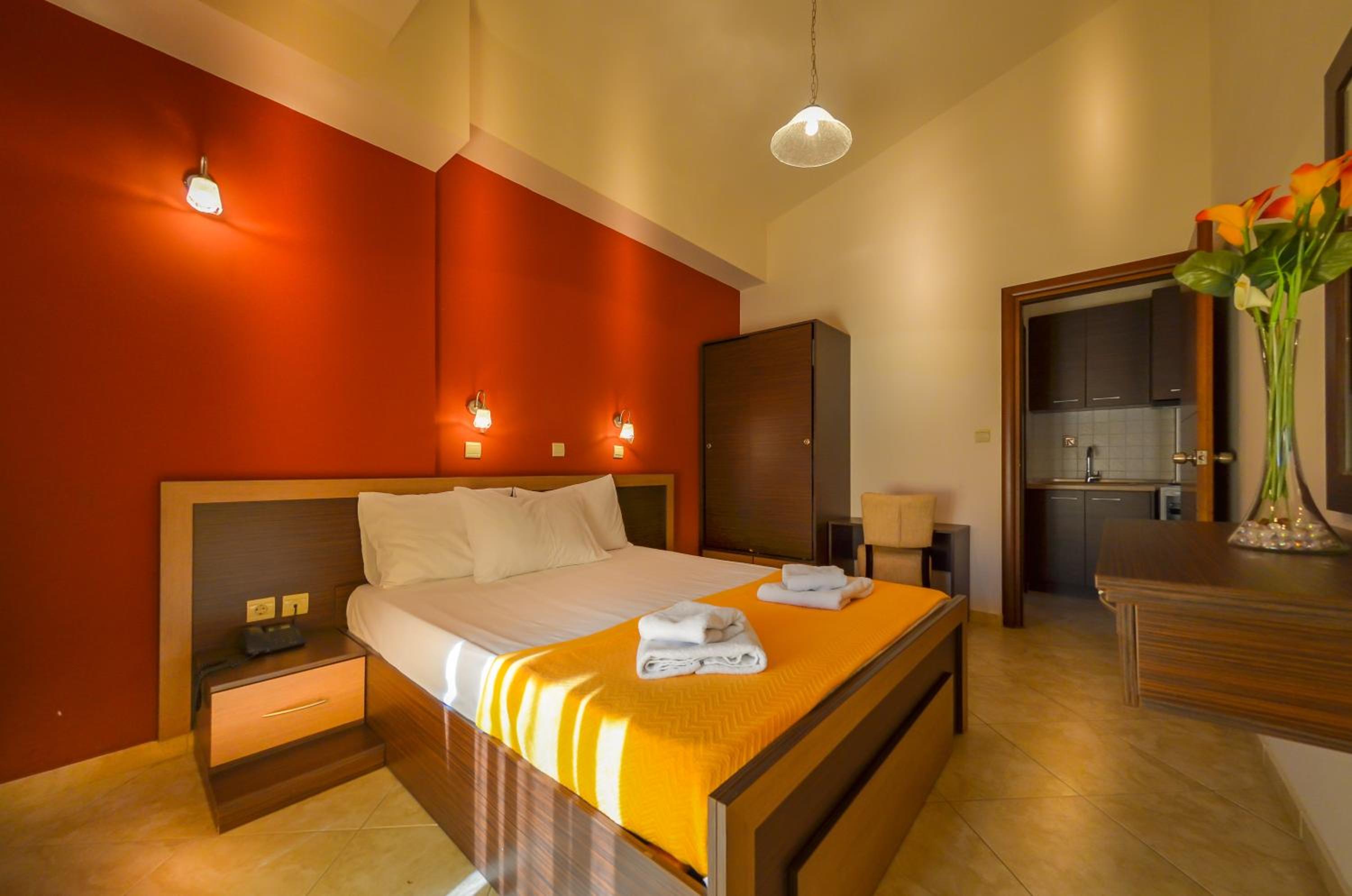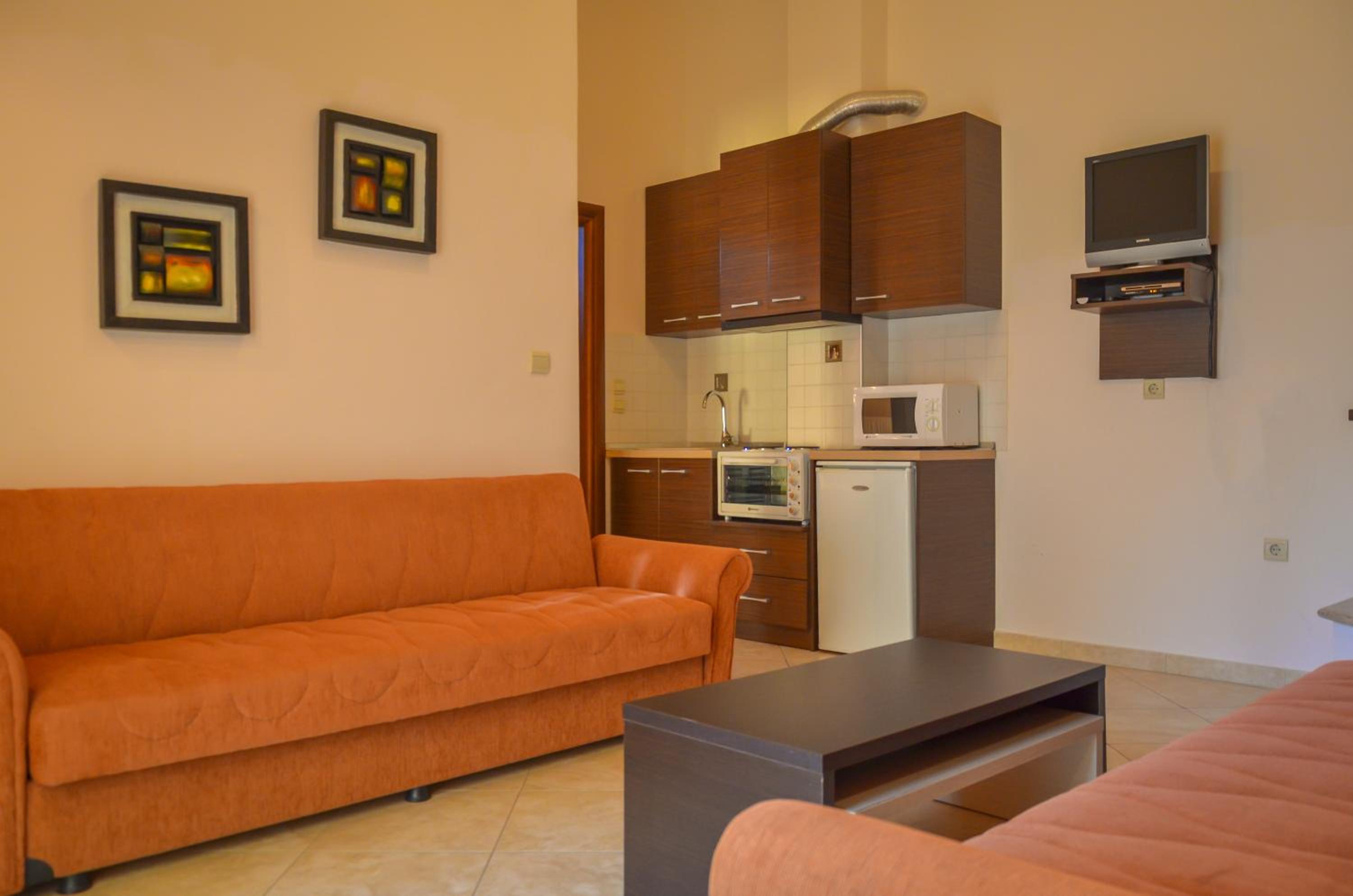 Located just 150 meters from Chryssi Akti Beach, our hotel offers split-level rooms with a furnished balcony, each featuring 1 or 2 LCD TVs. Decorated in warm earthy tones, the rooms are equipped with modern amenities including a fridge, 2 air conditioning units, and a hairdryer. Some rooms even offer stunning views over Ipsario Mountain.