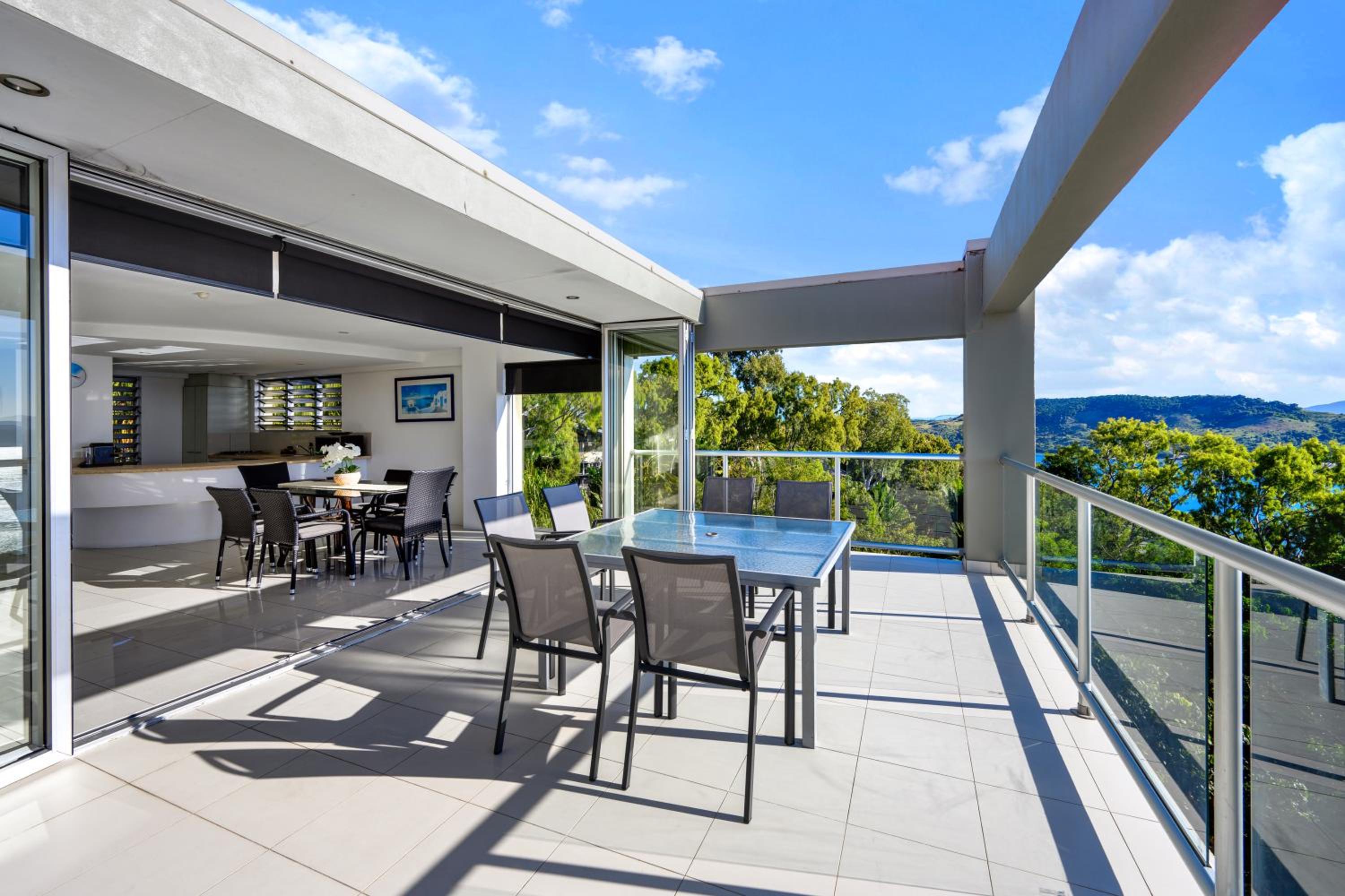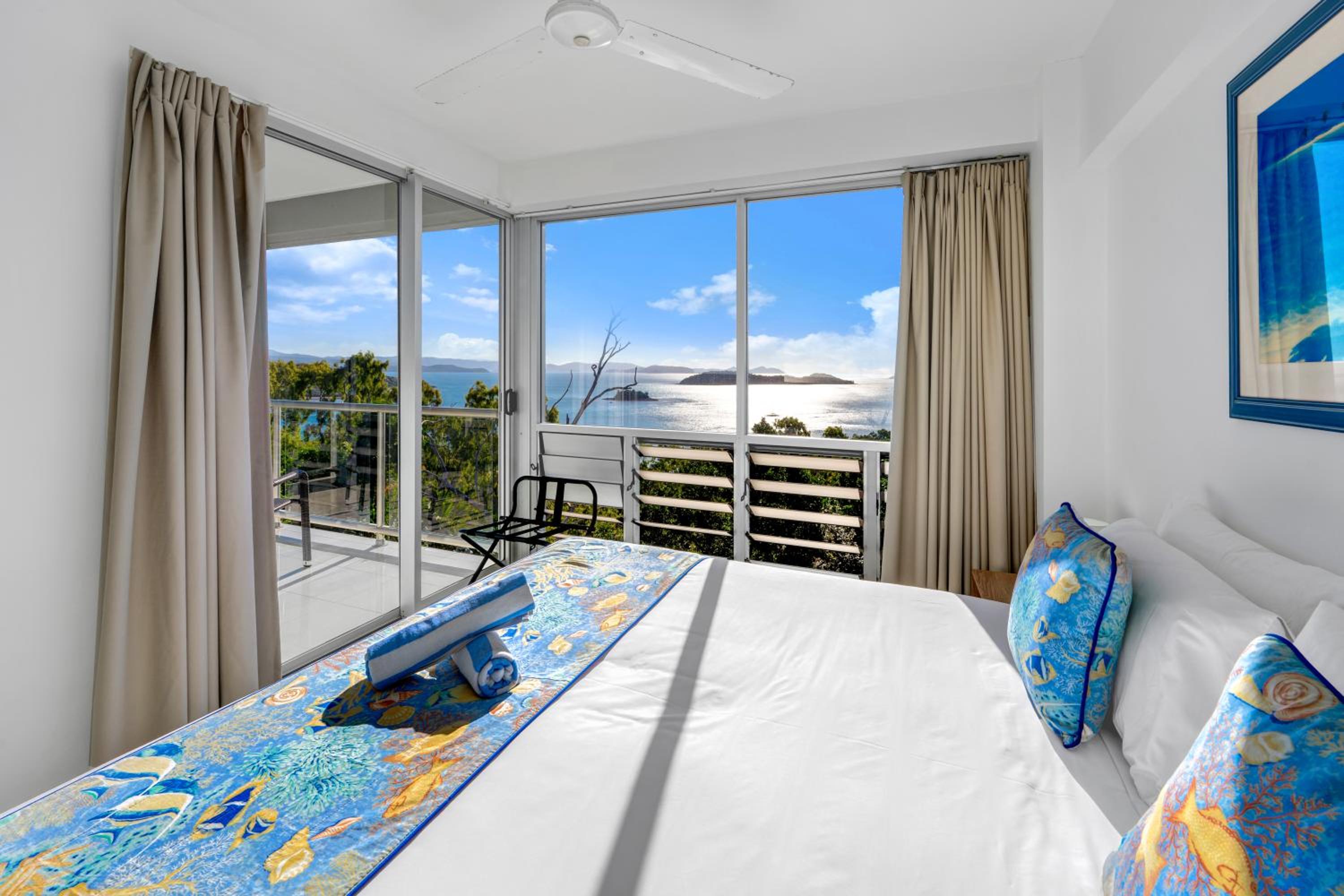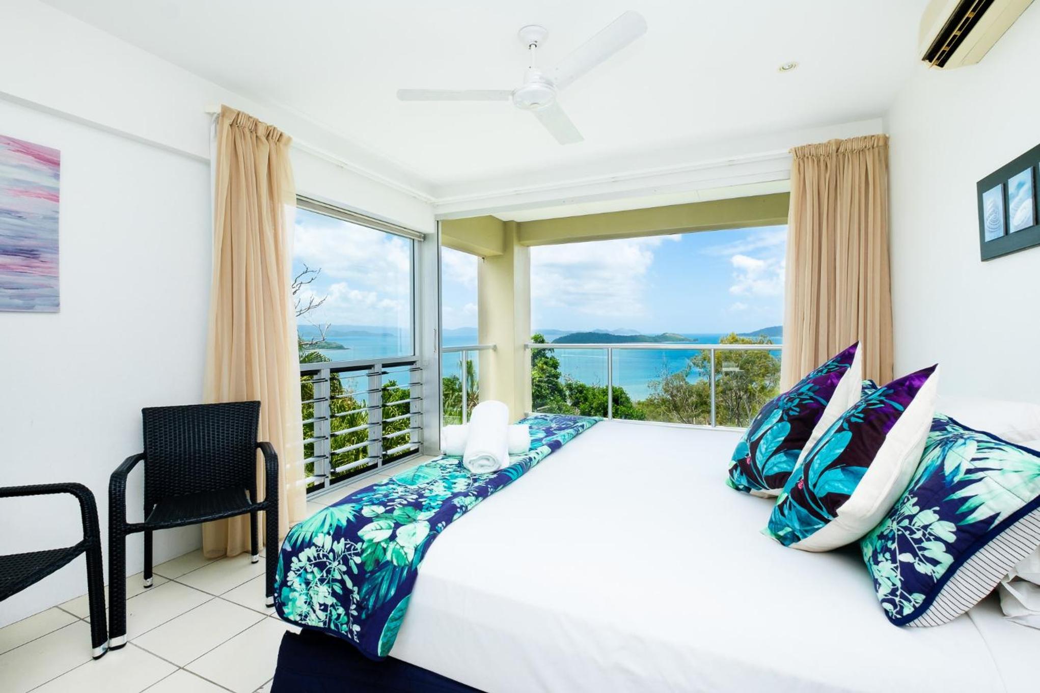 Breathtaking Views: Enjoy stunning views of the Witsundays Island waters from your private balcony at Ocean Sunsets – Skiathos.