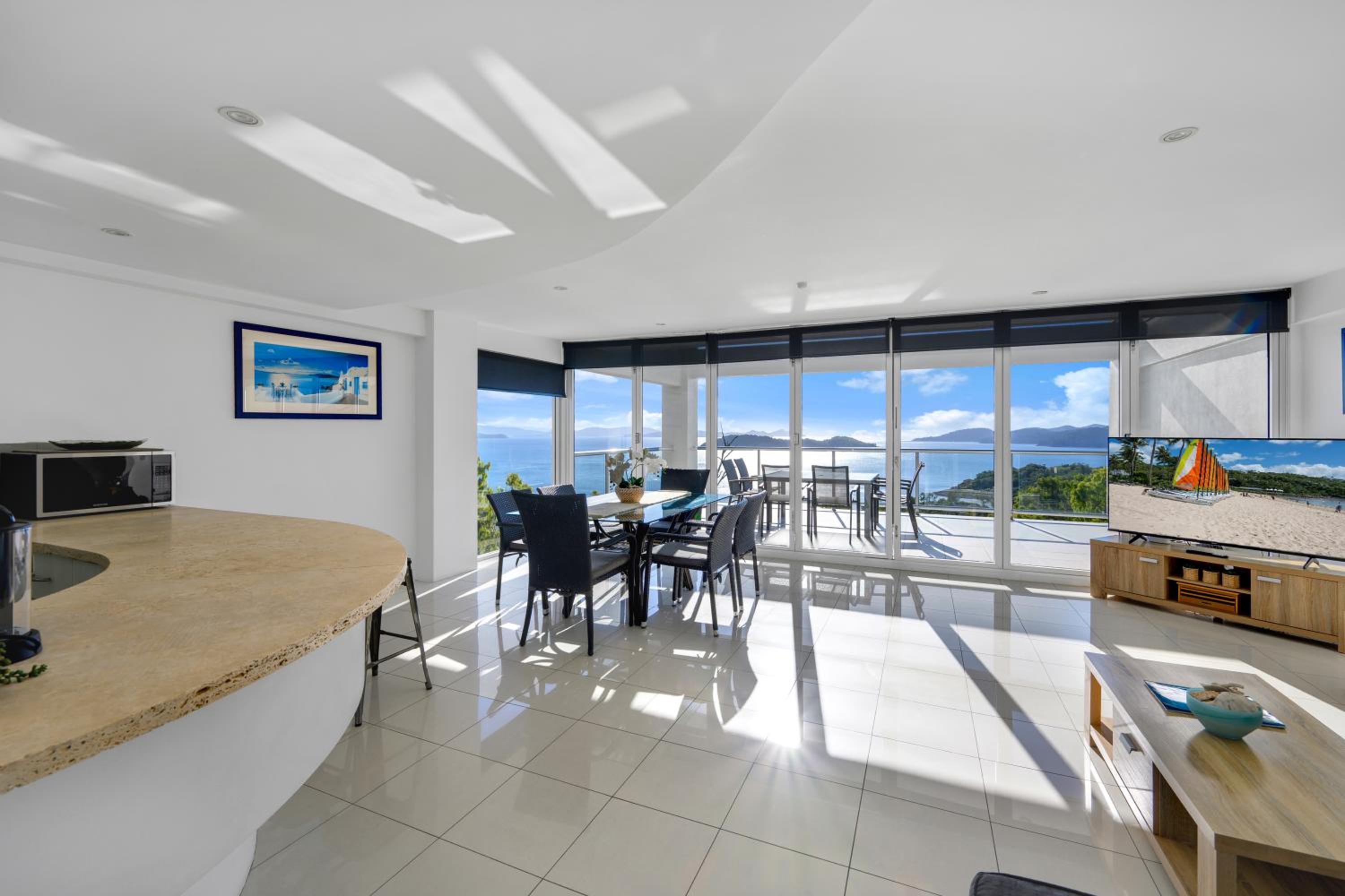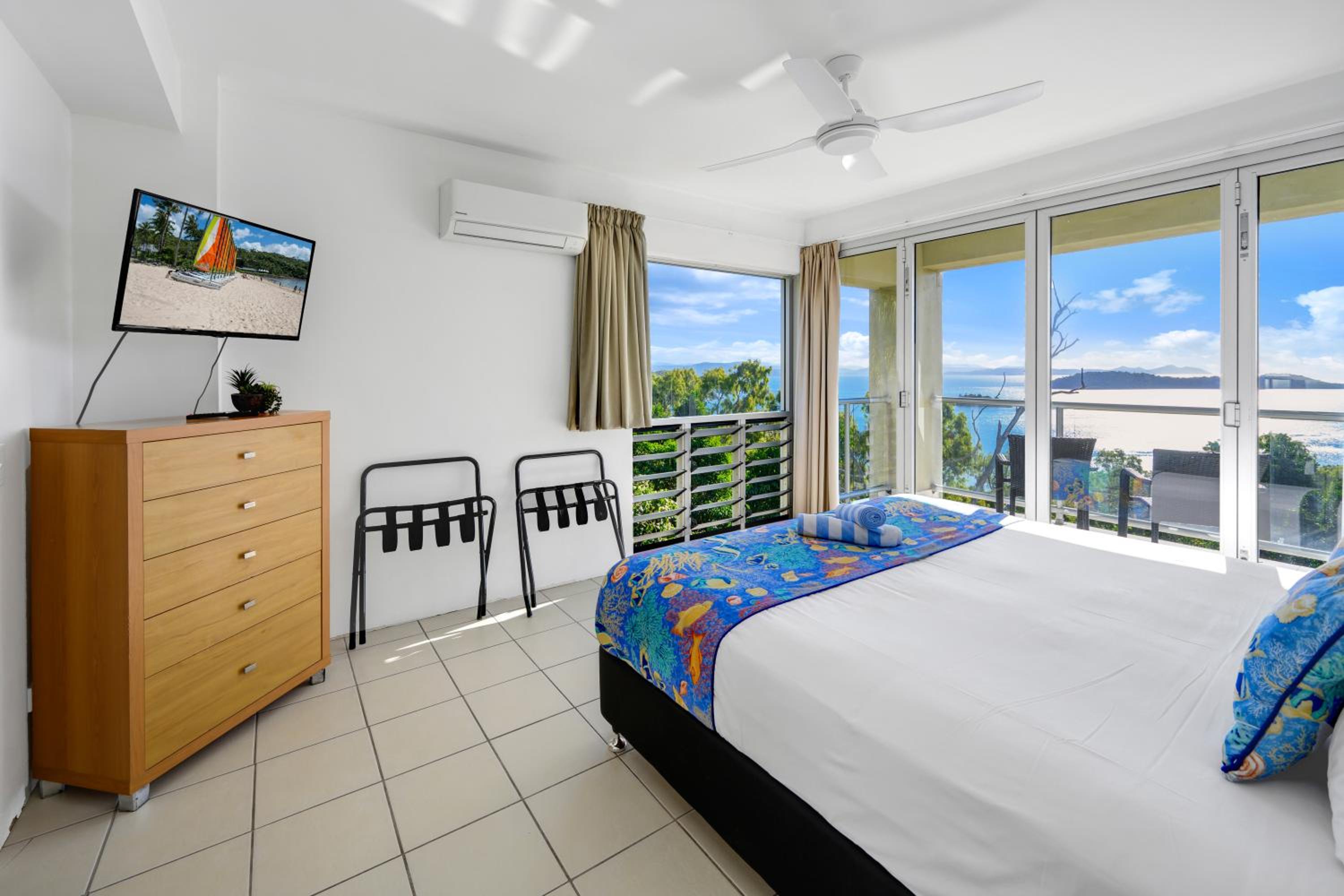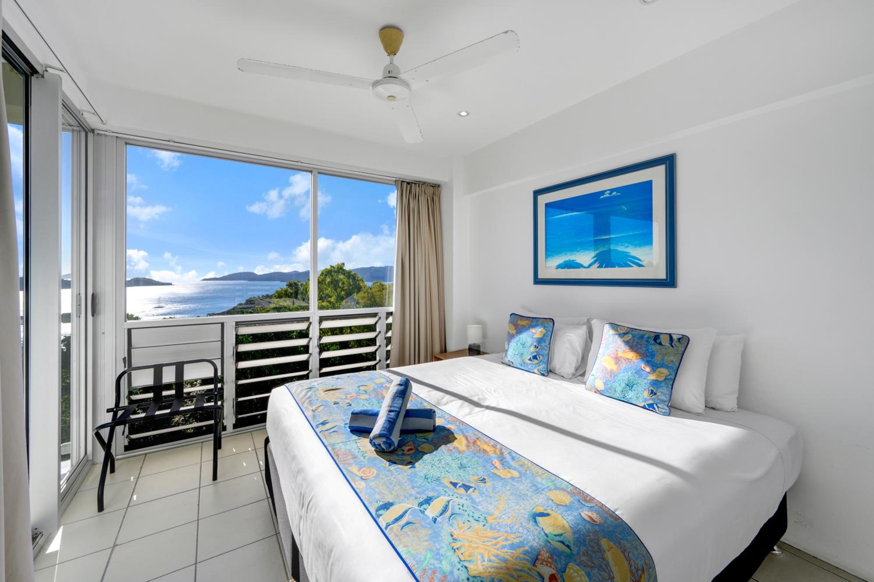 Breathtaking Views: Enjoy stunning views of the Witsundays Island waters from your private balcony at Ocean Sunsets – Skiathos.