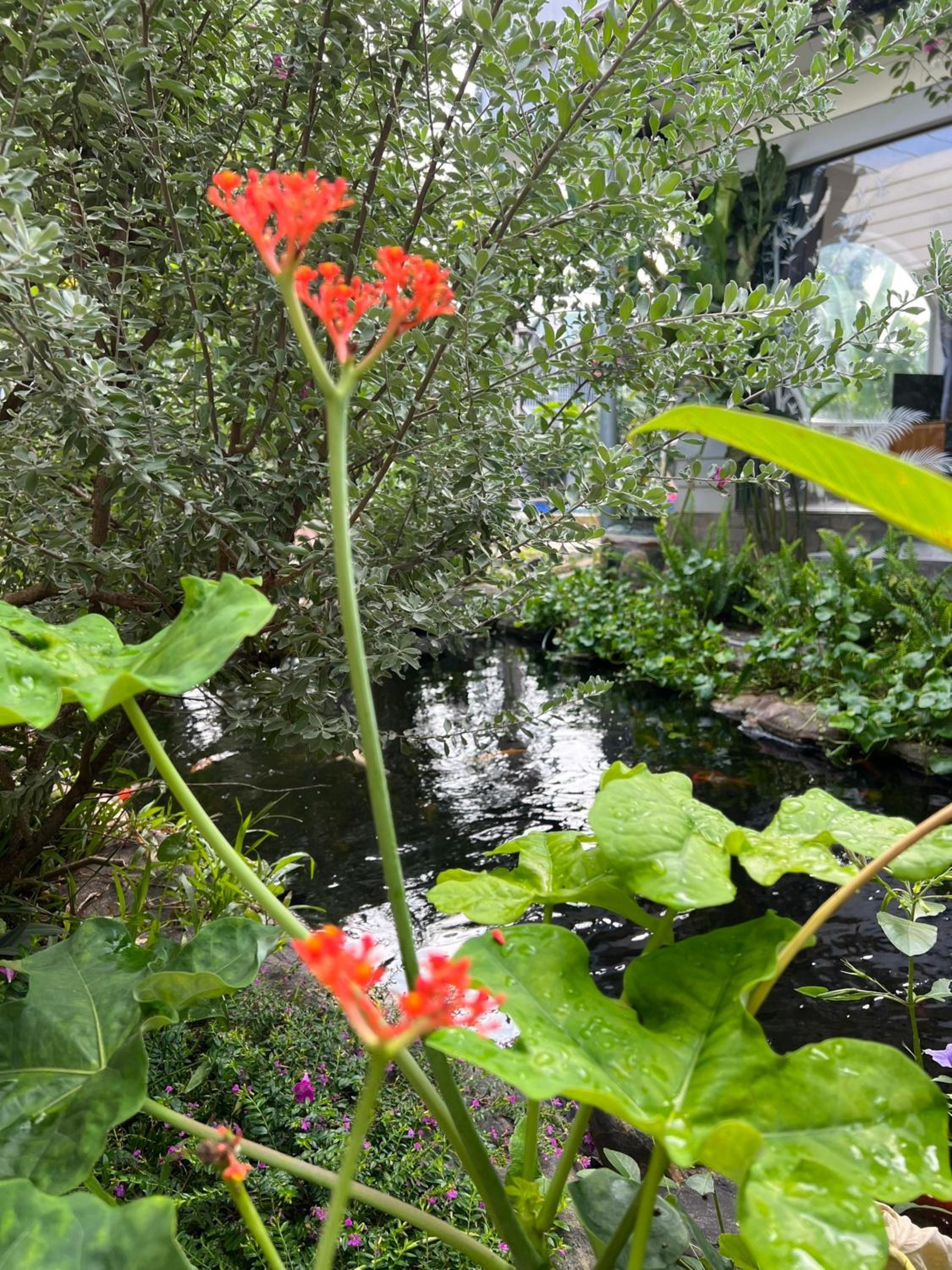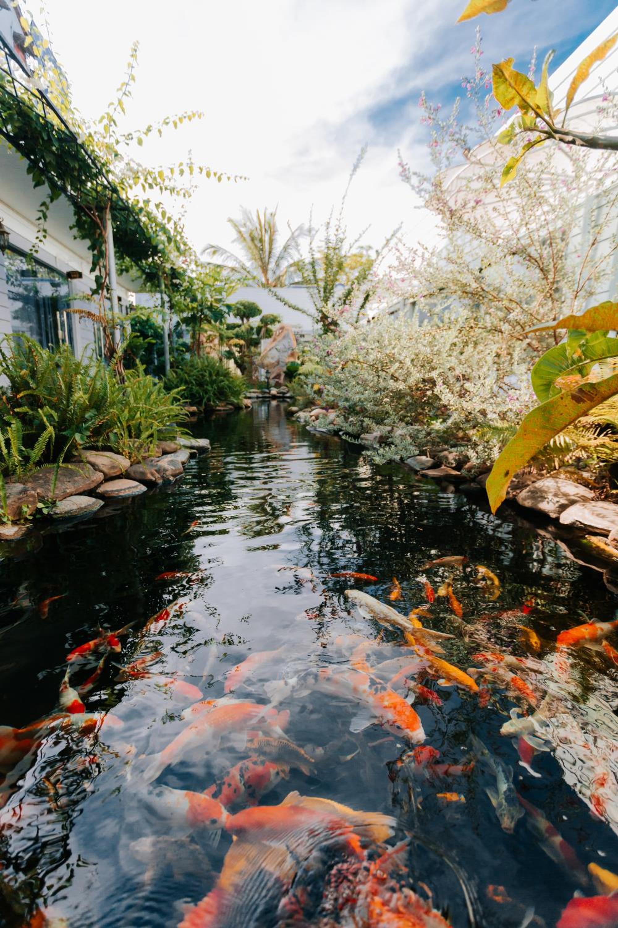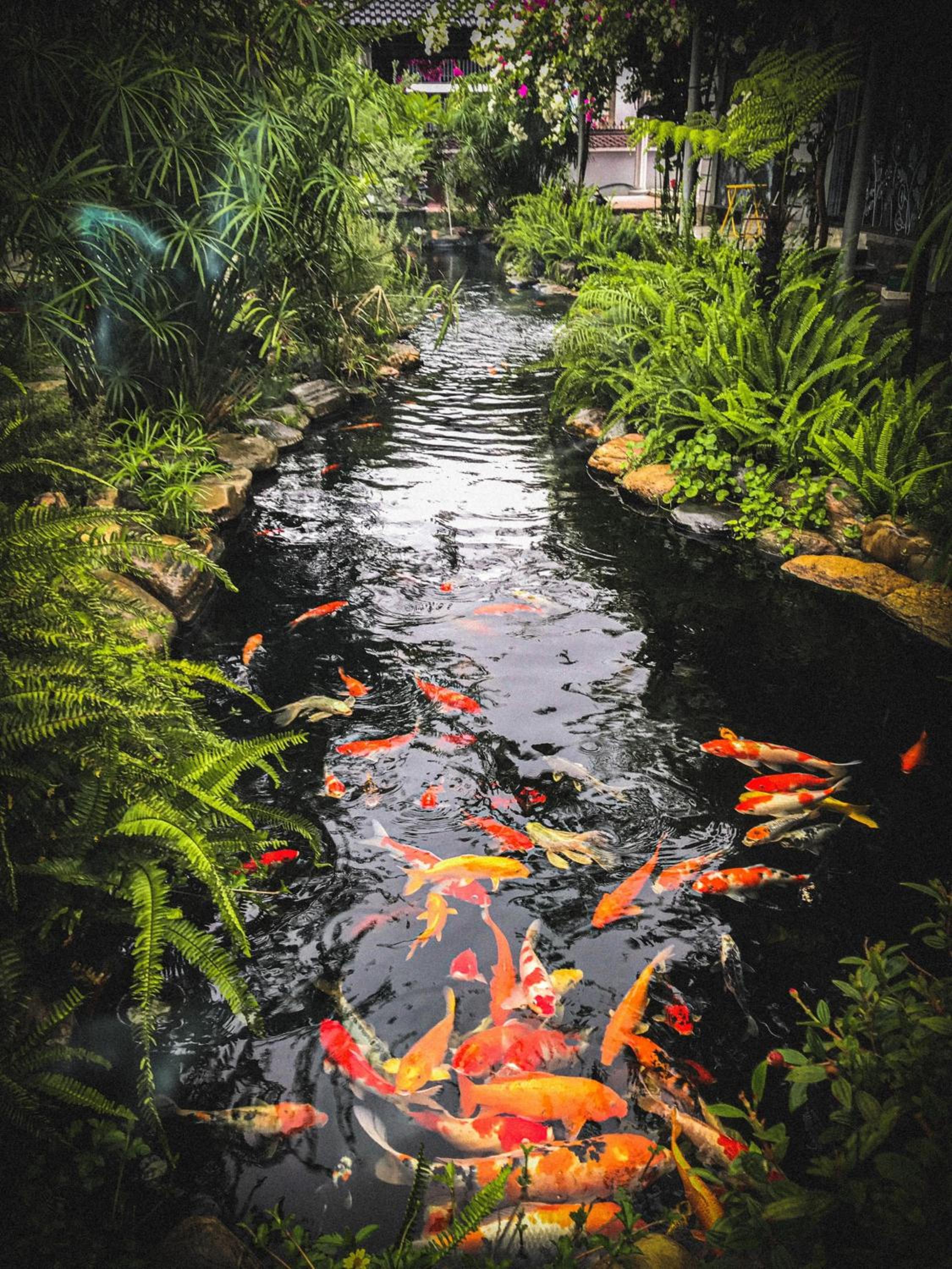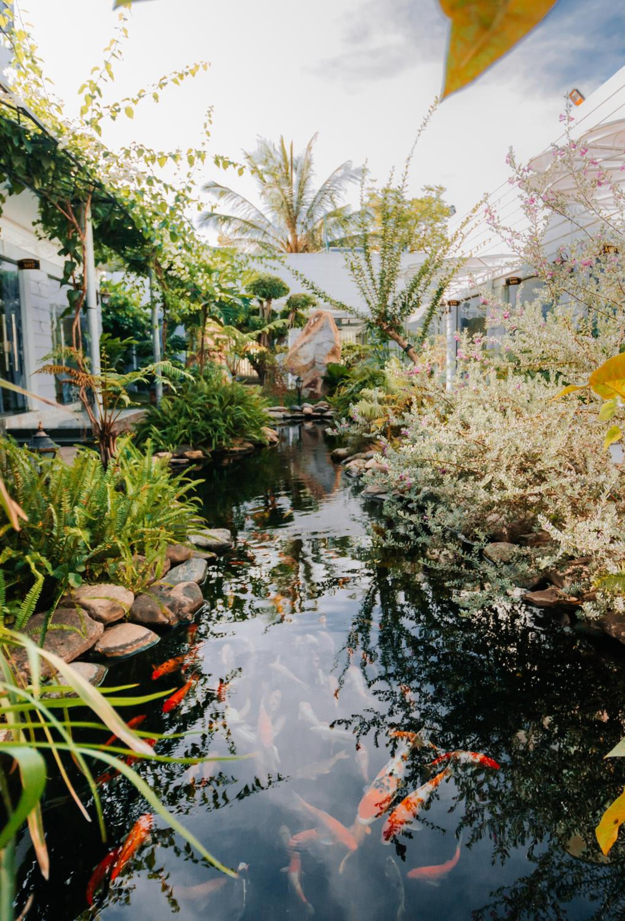 Die Zimmer haben jeweils ein großes Fenster (daher der Name des Homestays) mit Blick auf eine kleine schöne Gartenanlage mit Koi-Teich.