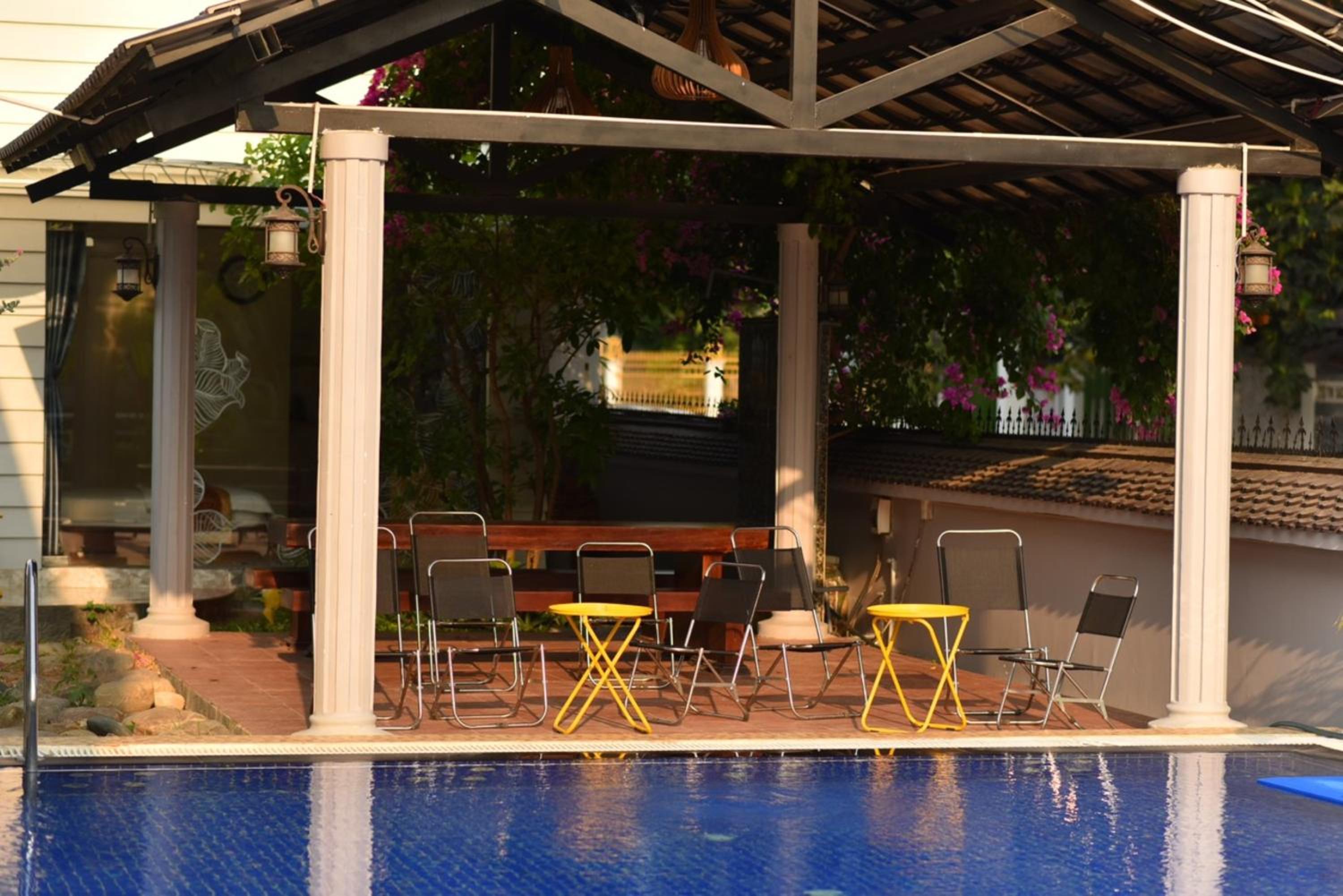 Nice garden and swimming pool in the yard, pretty clean, big room, parking on site.