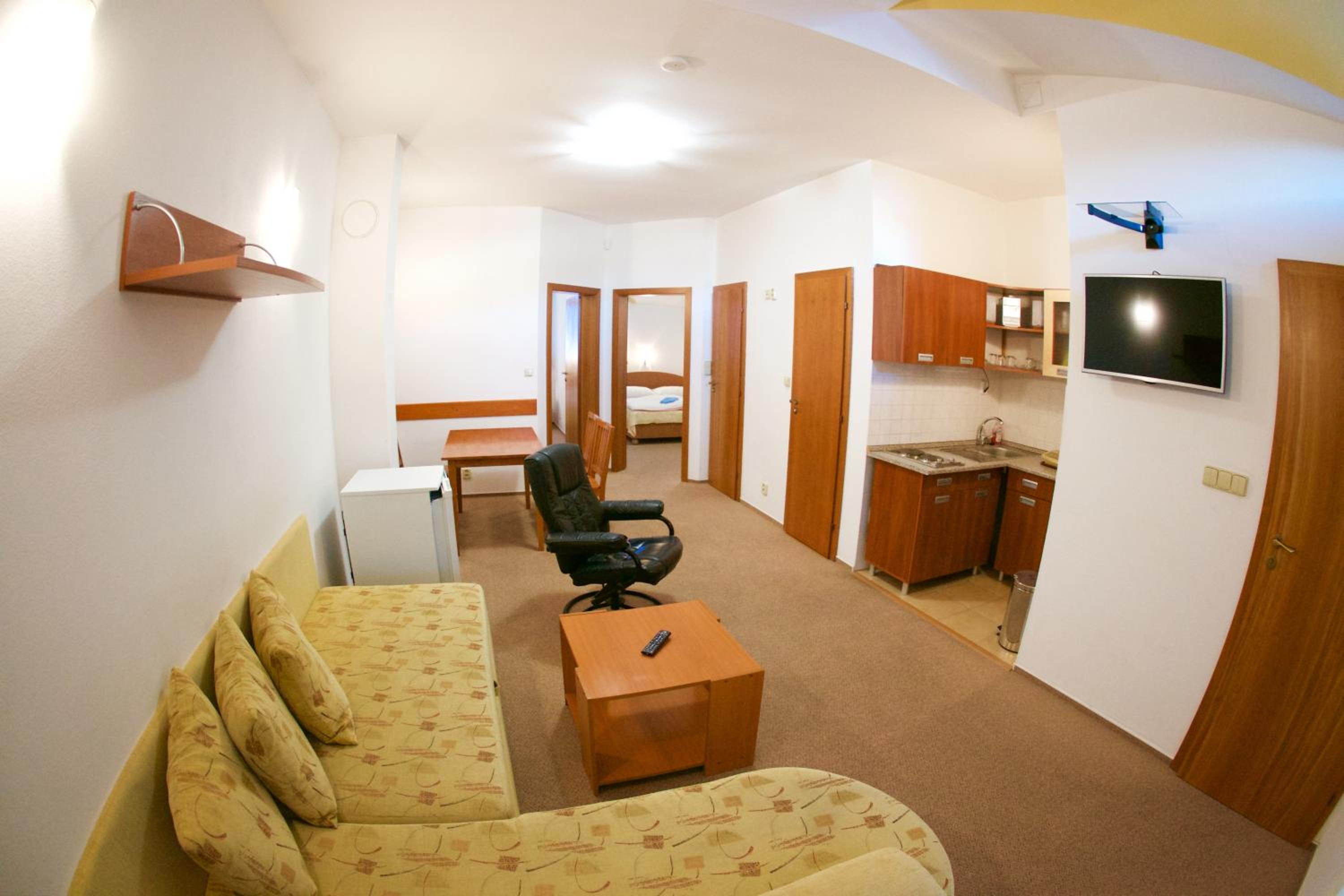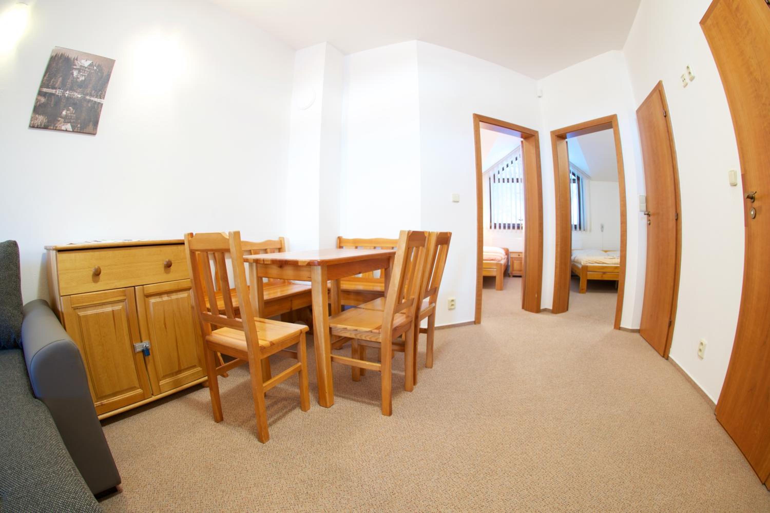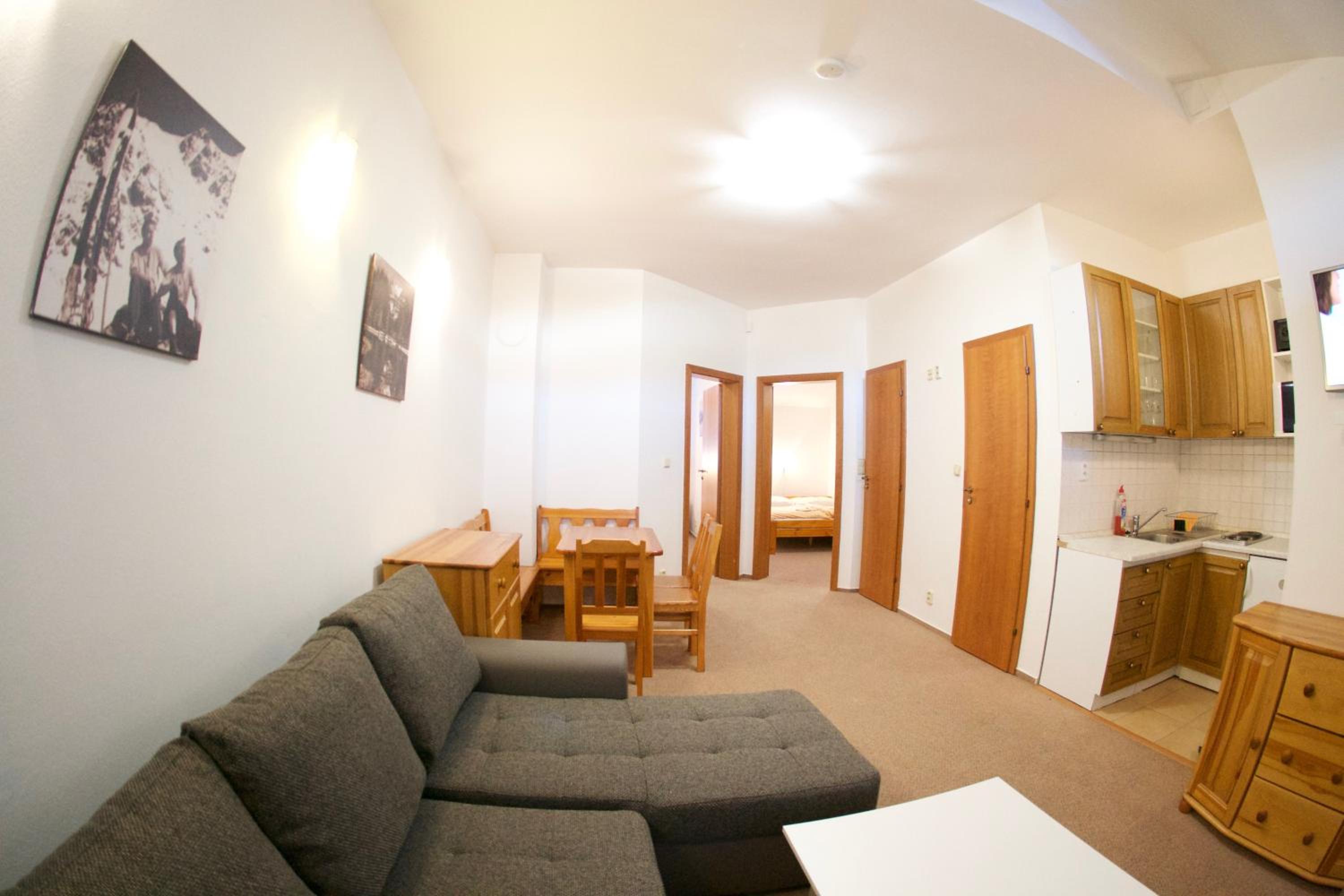 Experience the ultimate comfort at Apartmány Biela Púť 17 - 18, nestled in the heart of Jasna Chopok ski and tourist resort. Indulge in the convenience of a kitchenette corner, flat-screen TV, and modern bathrooms in every unit.
