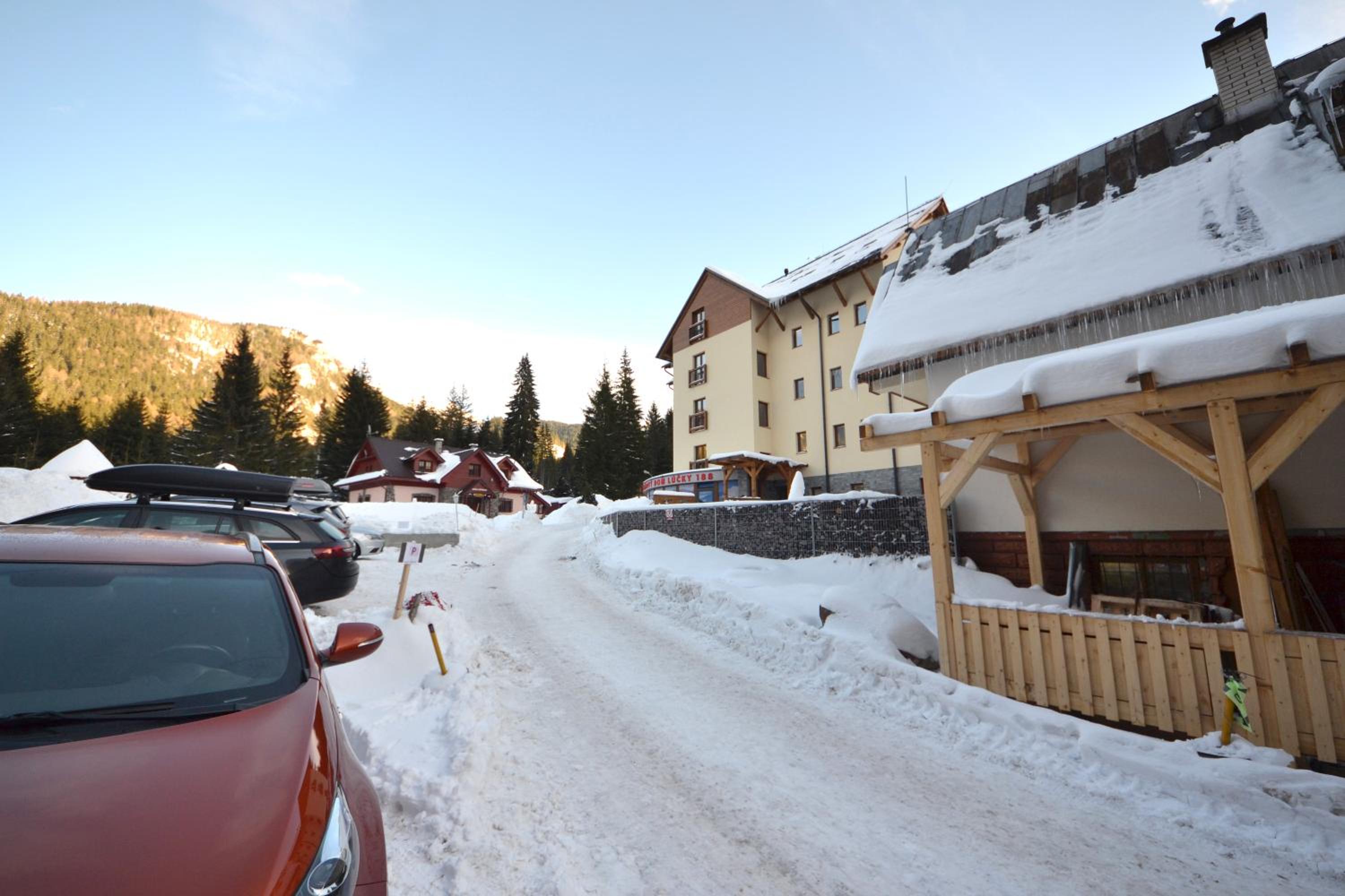 Doskonała lokalizacja z oknami na stok. Budynek przy samej stacji niebieskiej kanapy Lucky. W budynku wygodna narciarnia ze stojakami na sprzęt i suszarkami na buty (do apartamentu przypisane są 2 stojaki, które pomieszczą 4 narty lub 2 deski). W pobliżu wypożyczalnia bartekski - bardzo dobry sprzęt, dobrze przygotowany. Niedaleko urocza restauracja 3 domky (raczej konieczna rezerwacja!) oraz Lucky 943.