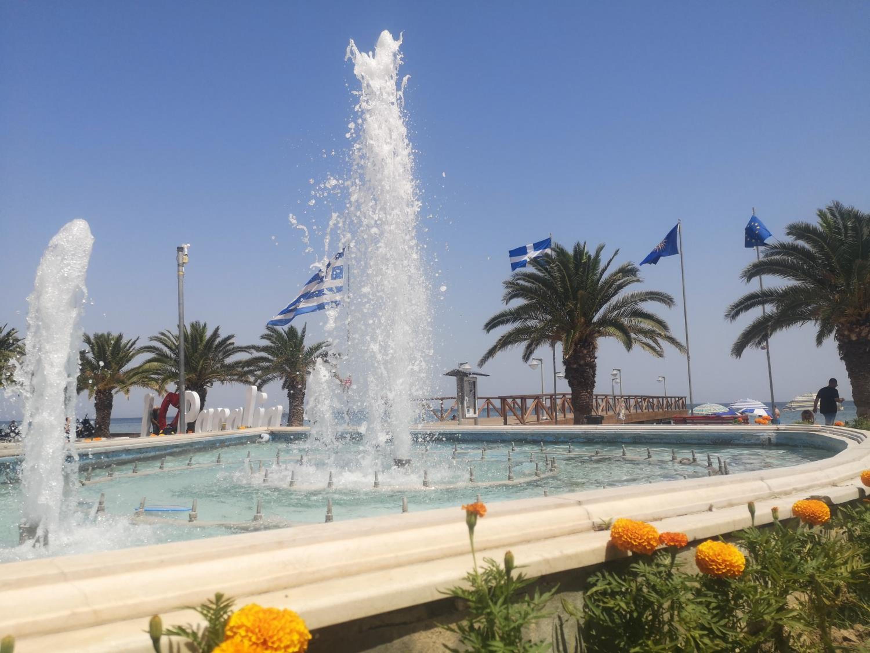 Paralia as a place: nice place with a good amount of things to do, arcade with games, small amusement park, a few clubs and many many choices for food. Beach bars as well as free beaches near the hotel.