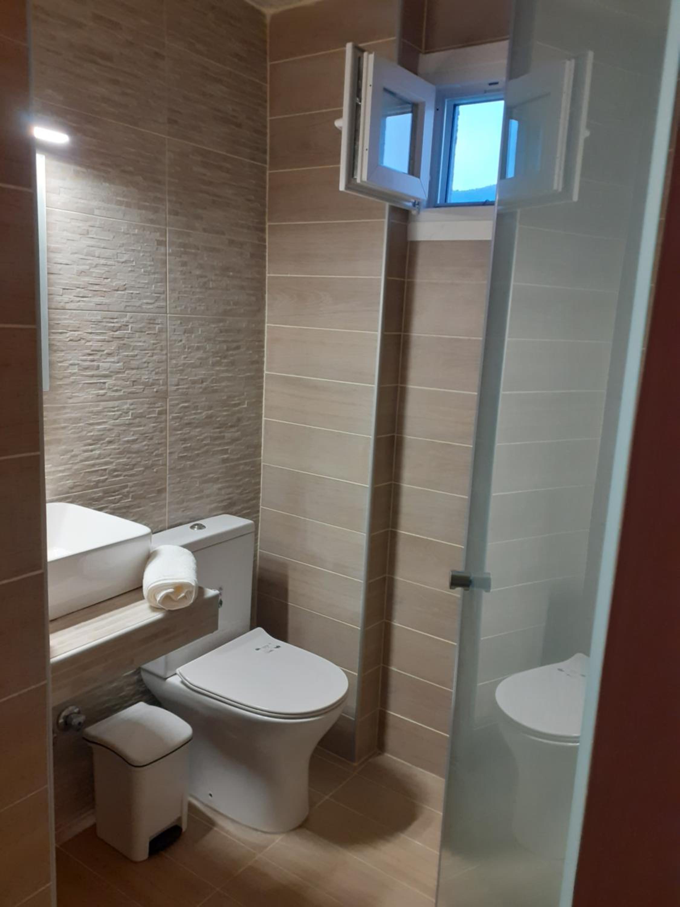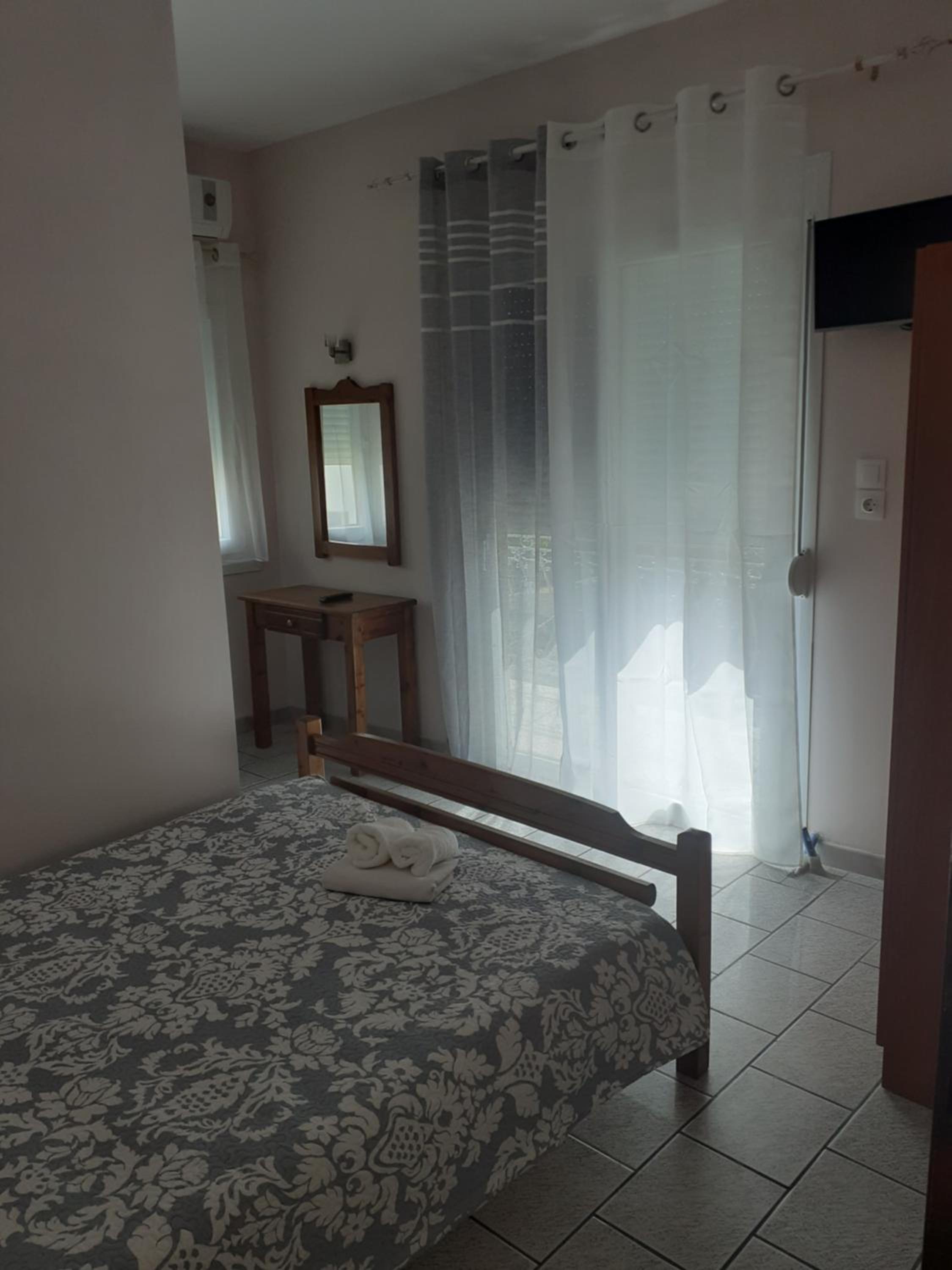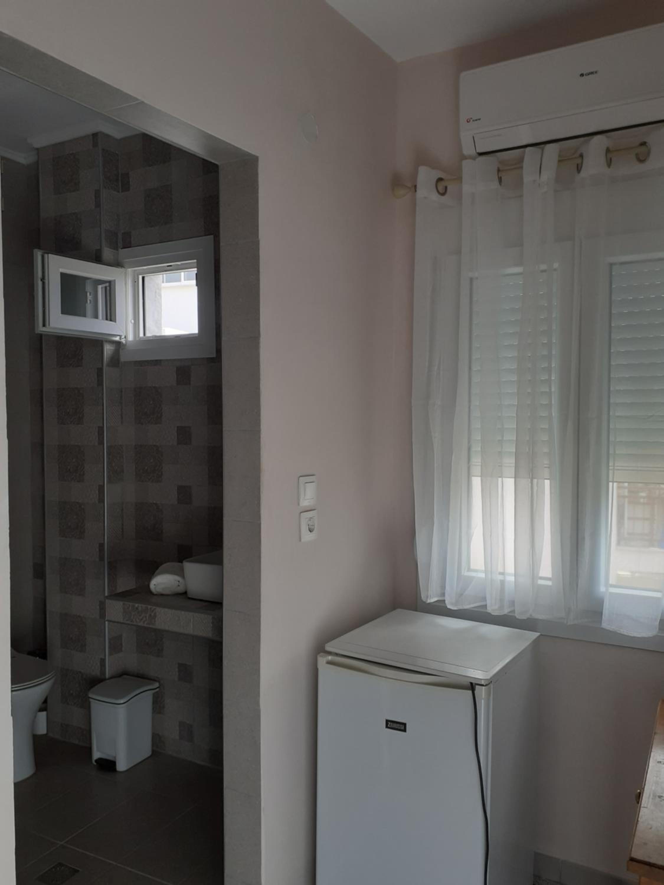 Ima klimu, mali frižider, lepo novo kupatilo, ima roletne (jako bitno za dobro spavanje), mrežu za komarce, ima malu terasu sa stolom i dve stolice, i zajedničku veliku terasu za kuvanje i jelo.