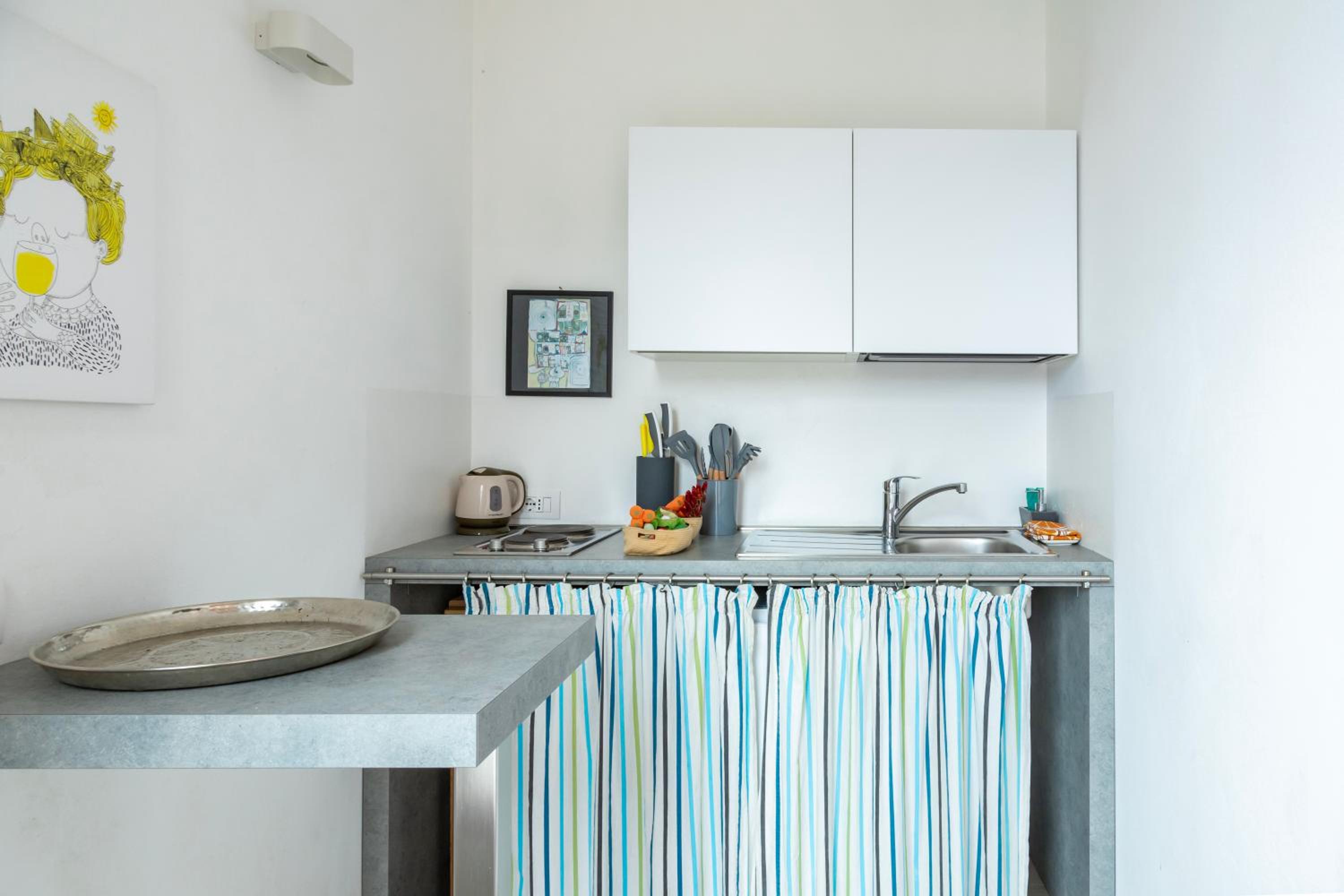 The apartment is located in the climatic part of Brenzone, surrounded by silent paths, olive trees, oleanders and buildings made from stones. In our apartment (Sisam) we have had a private, fabulous terrace, a separate bedroom, a small kitchen equipped in everything what is needed for a short stay, and a living room. The apartment is 6-10 mins of hiking from the port and the bus stop. A lot of cozy beaches nearby.
