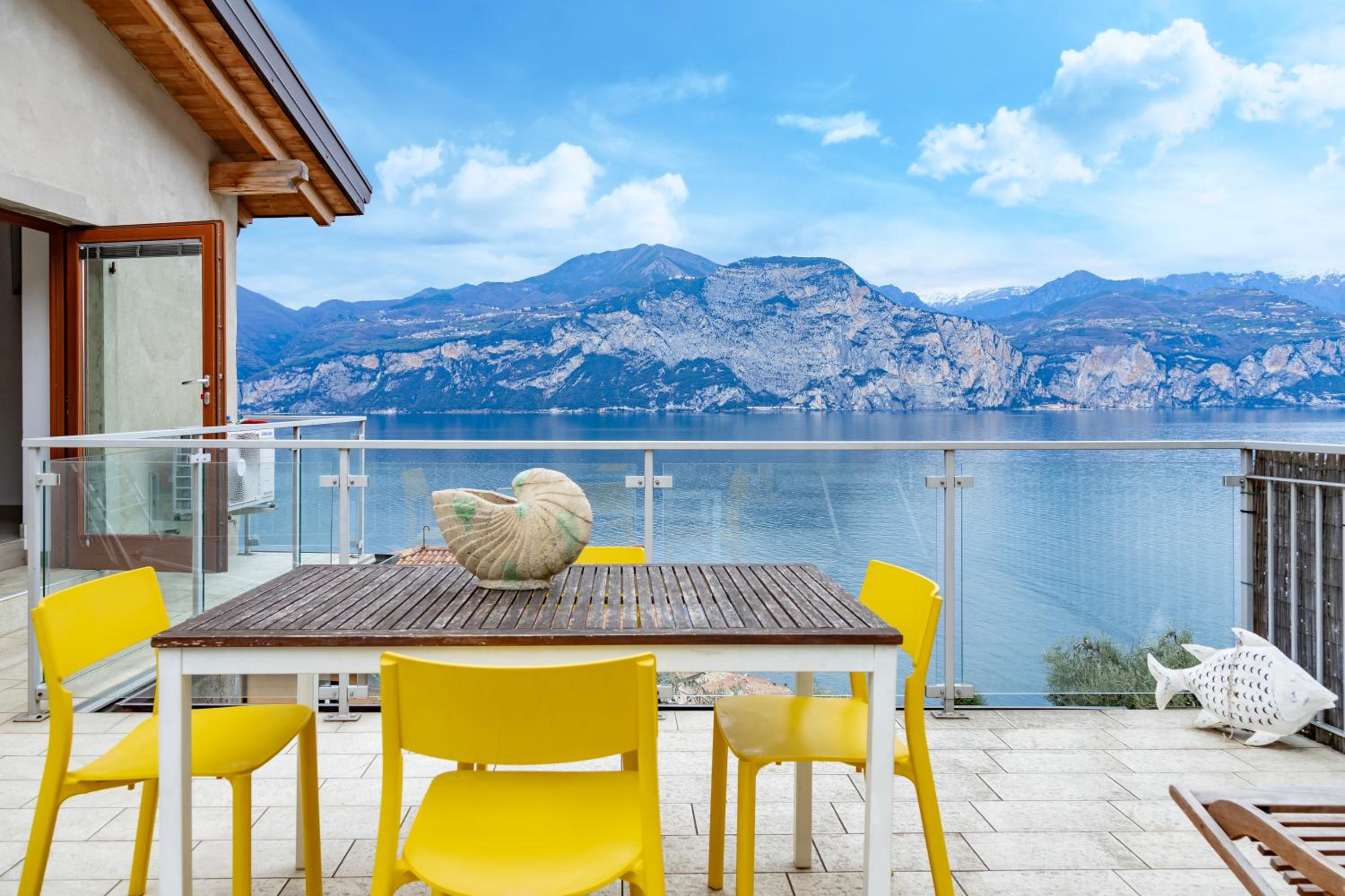 Cudowny widok z tarasu na piękne jezioro Garda. Apartament godny polecenia