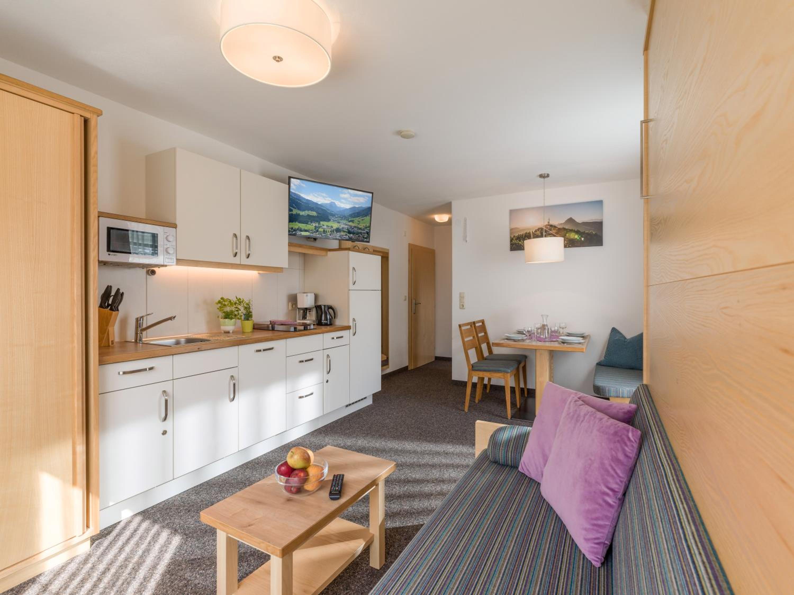 Gästehaus Roland in Kirchberg in Tirol offers stunning mountain views and modern amenities for a comfortable stay. Guests can enjoy a balcony, flat-screen TV, and a fully equipped kitchenette in each unit, along with free WiFi and private parking.