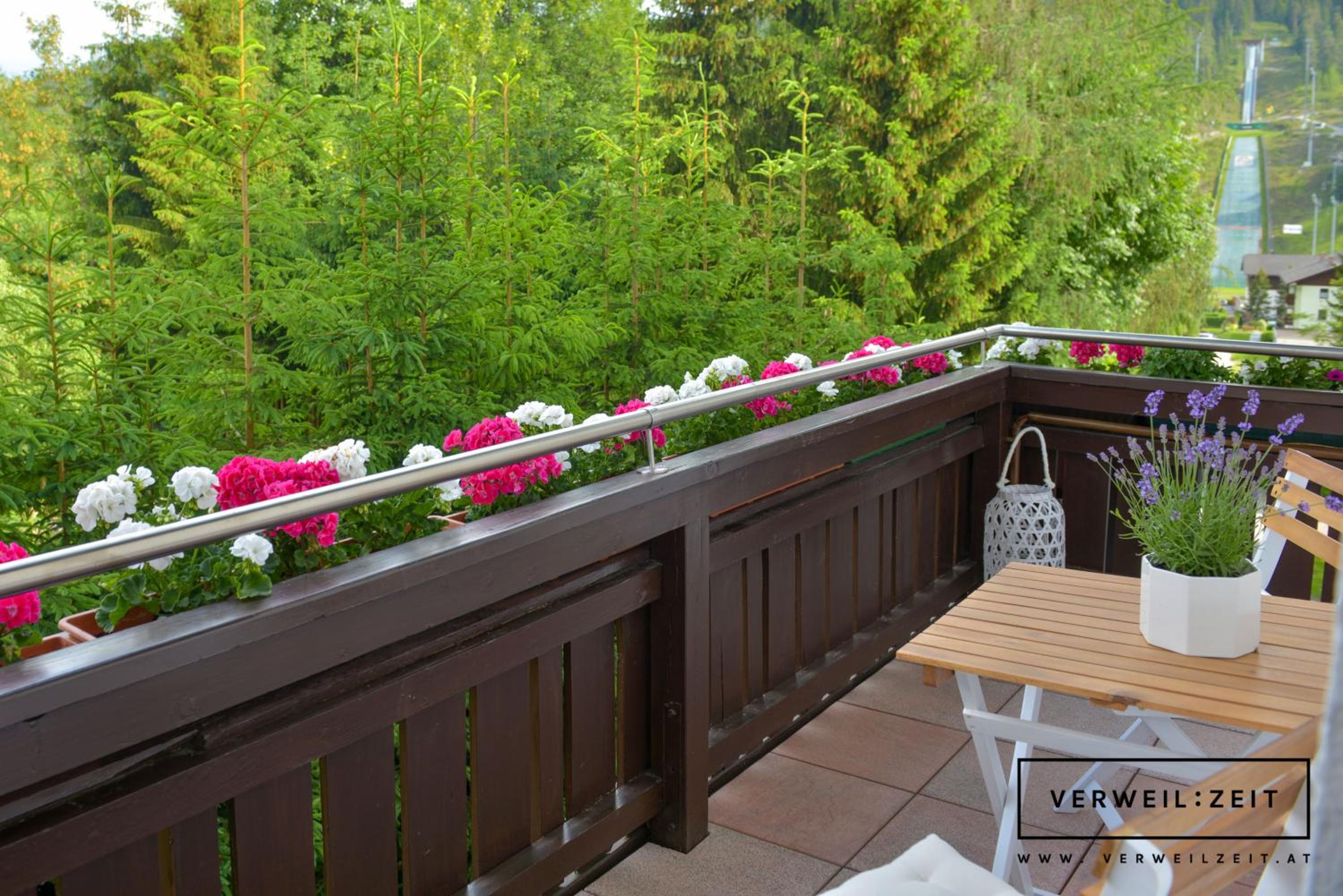 Experience breathtaking panoramic views from your balcony at Verweilzeit Appartementhaus. Our spacious apartments feature modern amenities including free WiFi, a well-equipped kitchen, and a comfortable living area with a flat-screen TV.