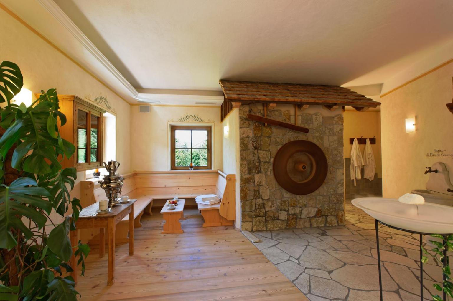 Guests can unwind and rejuvenate in the property's wellness area, which includes a sauna, Turkish bath, and relaxation area with complimentary fruit and infusions. A perfect way to relax after a day on the slopes.