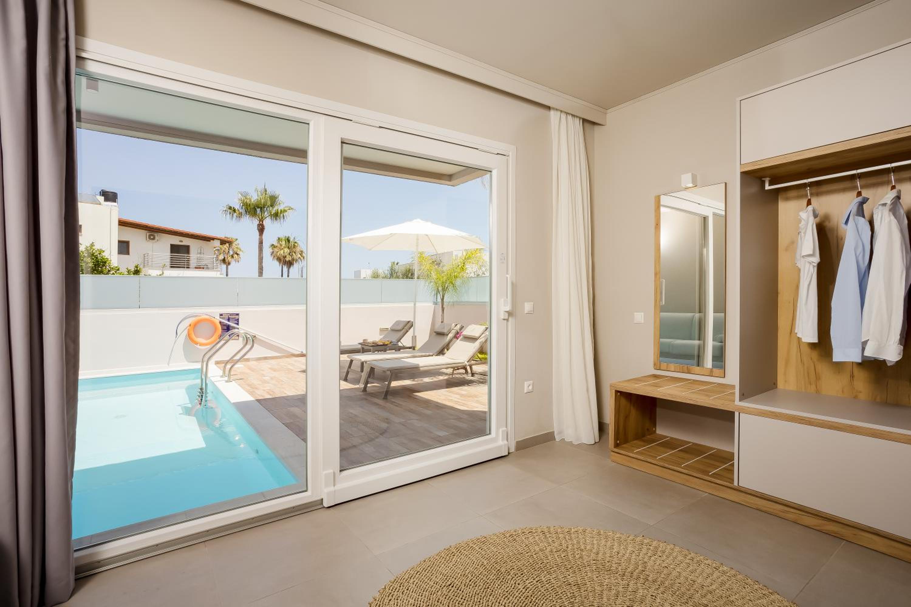 The suites are beautiful, light, very clean and very modern. Antonis the host and Ute the housekeeping lady will meet you everyday with a big smile and warmth, and you feel like home.
