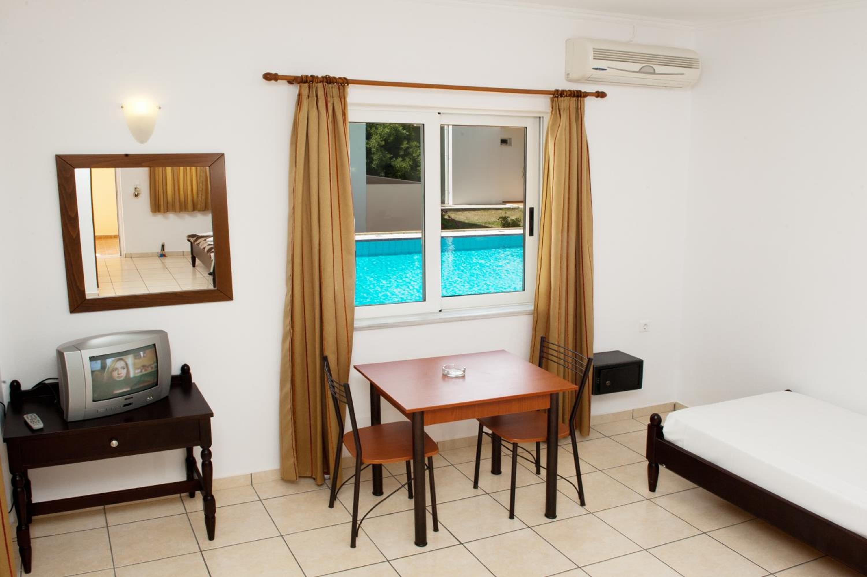 Struttura molto carina con piscina e spiaggia a 50 MT. L'appartamento un monolocale molto grande con bagno.