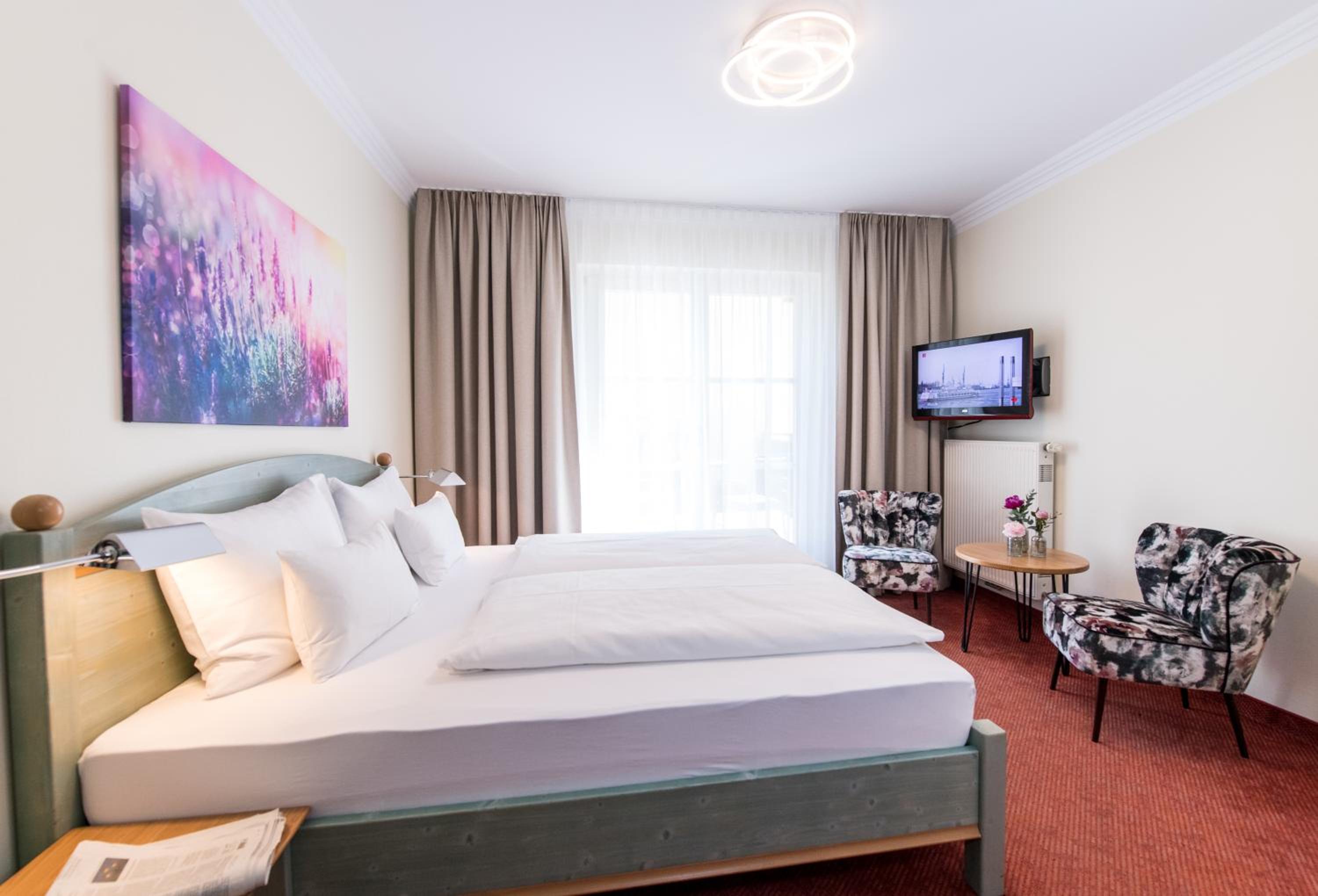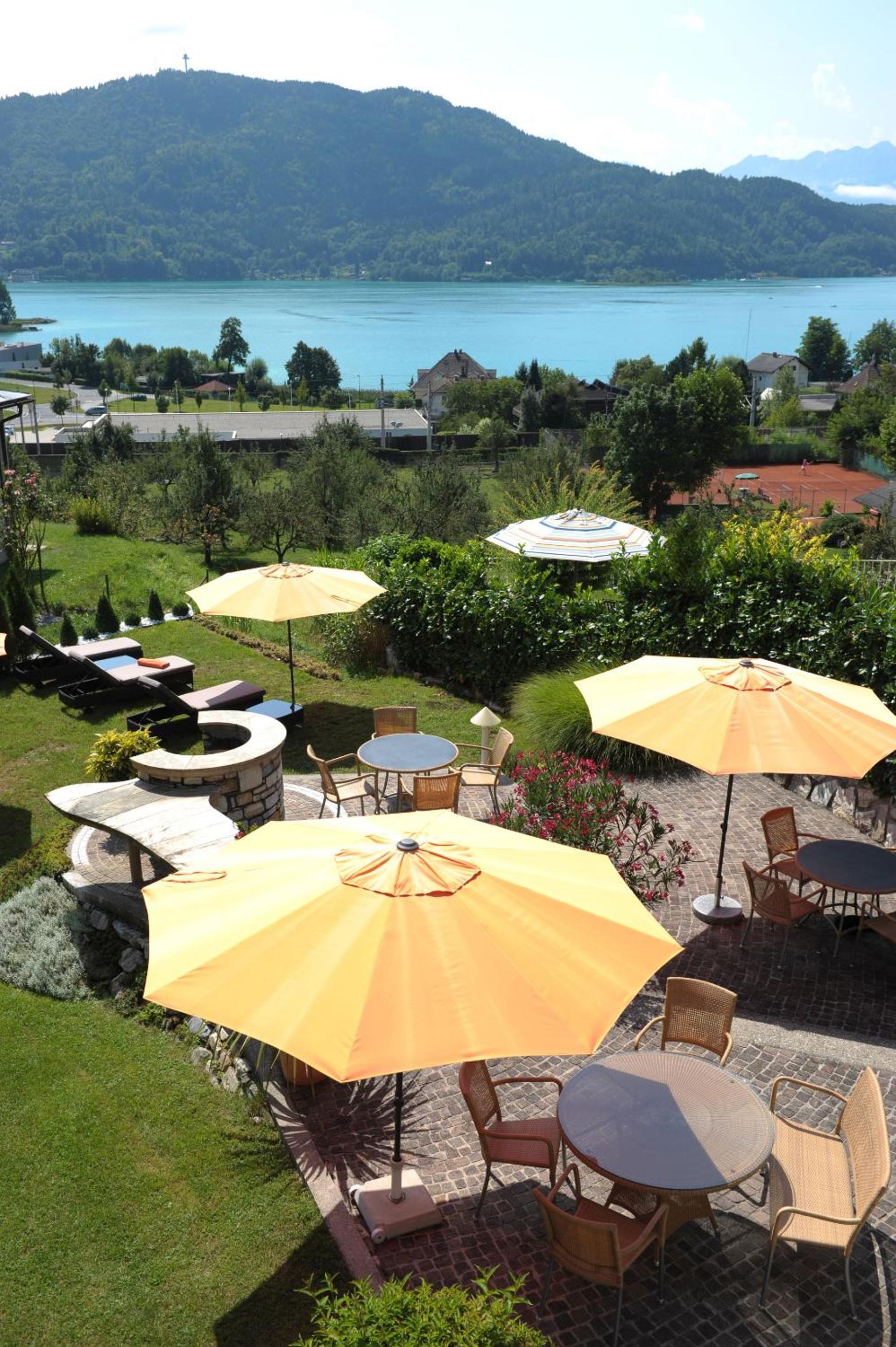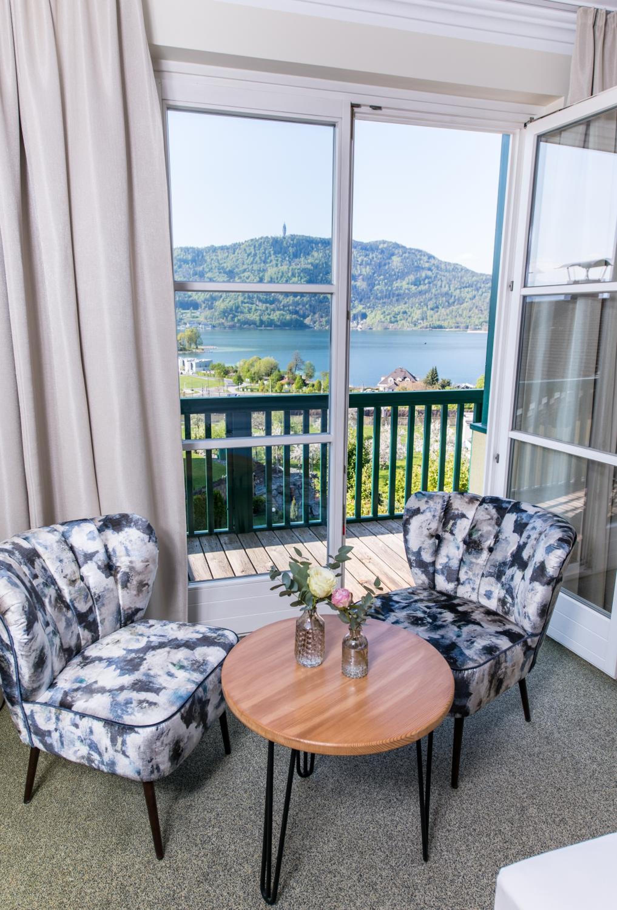 Indulge in modern accommodation featuring a balcony with stunning views of Lake Wörth and the nearby mountains. Each room is equipped with an LCD flat-screen TV and a private bathroom.