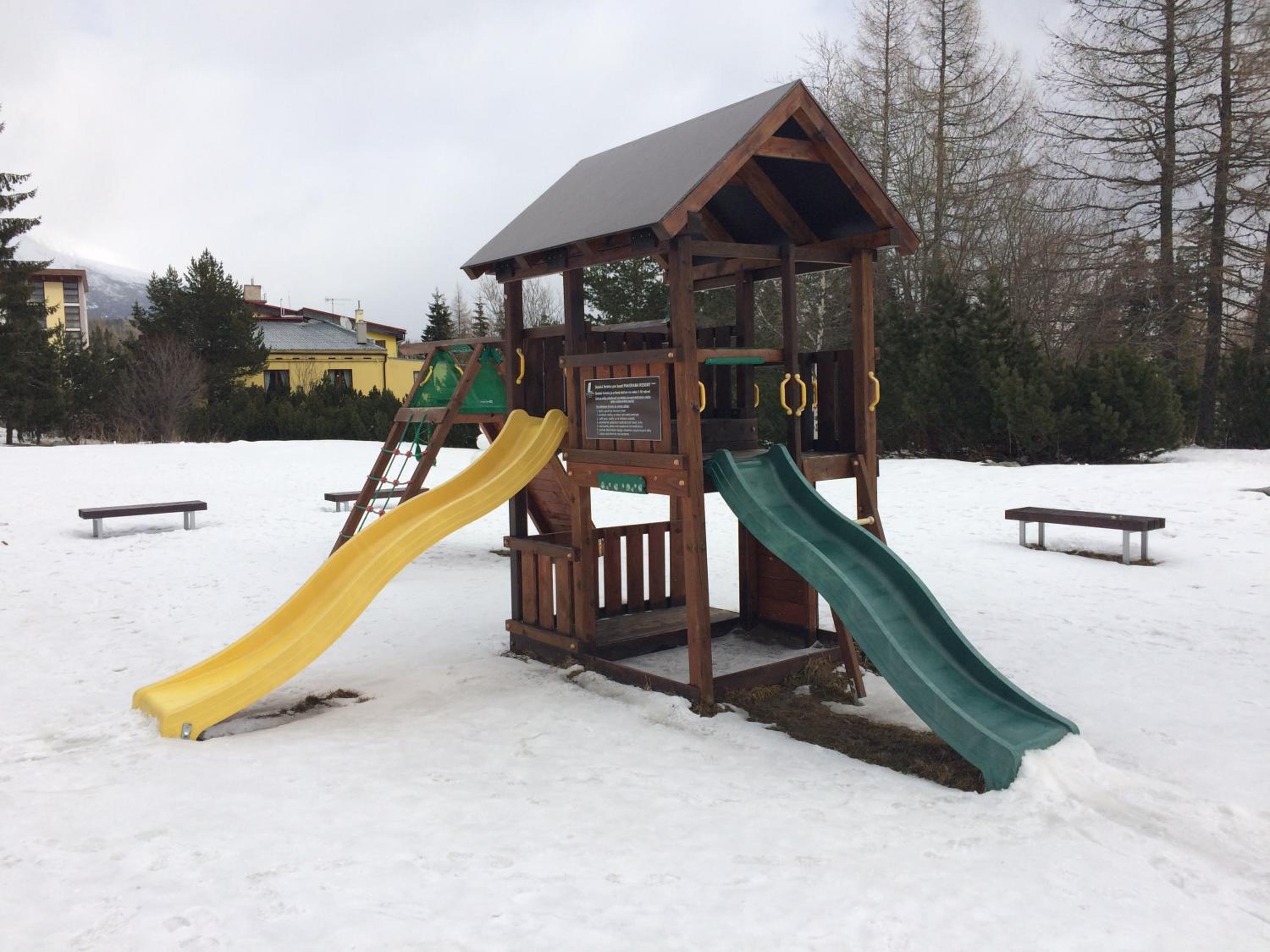 Indulge in traditional Slovak meals and international cuisine at the on-site restaurant, or unwind at the terrace, café, or garden. With a children's playground, kid's corner, and sports shop offering rental and purchase of equipment, there's something for everyone.