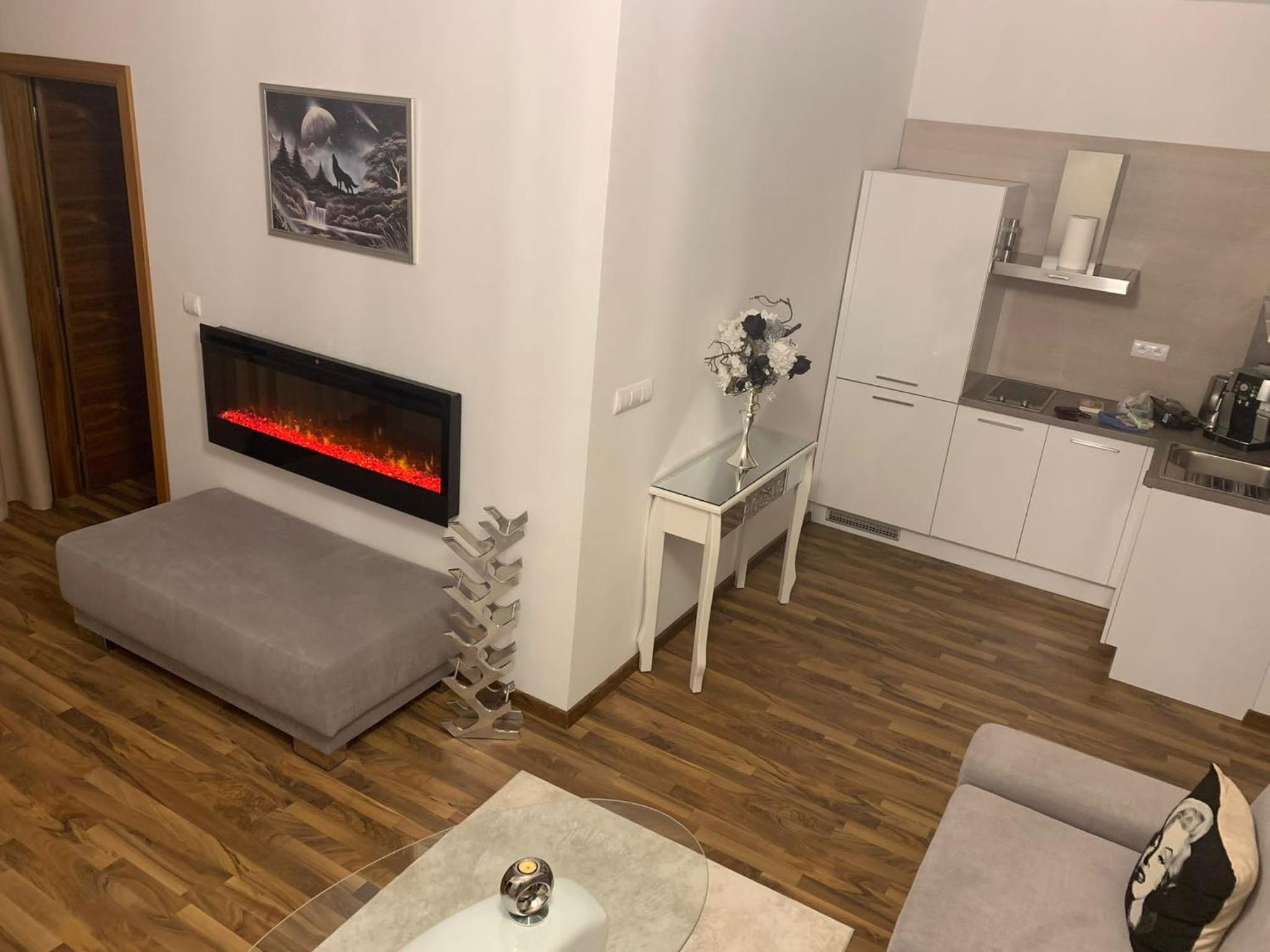 Nagyszerű apartman, tágas, kényelmes. Esetleg egy konyhaasztal két székkel jó lett volna.