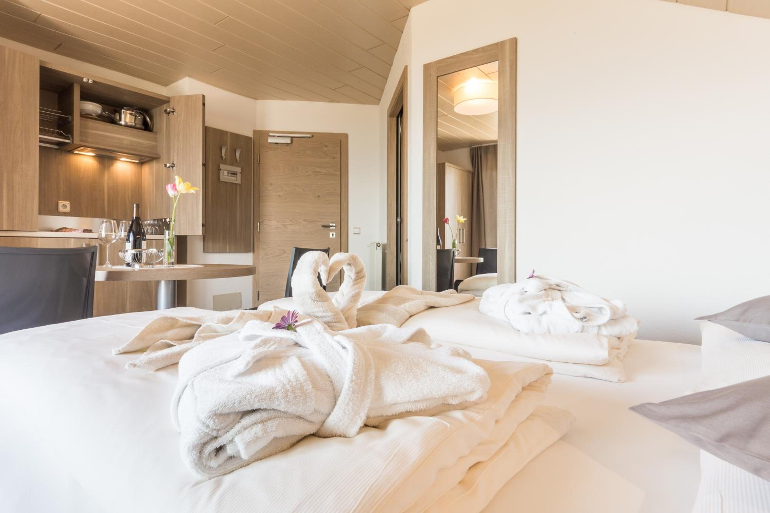 Indulge in the indoor pool, free WiFi, and Alpine-style apartments with balconies, kitchenettes, and satellite TV. The spa area beckons with a sauna, hot tub, Turkish bath, and massages on request.