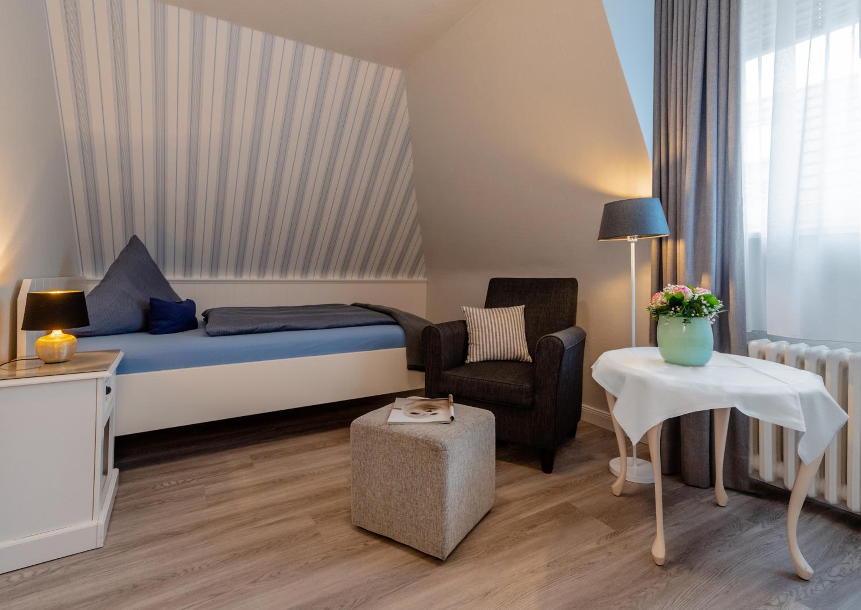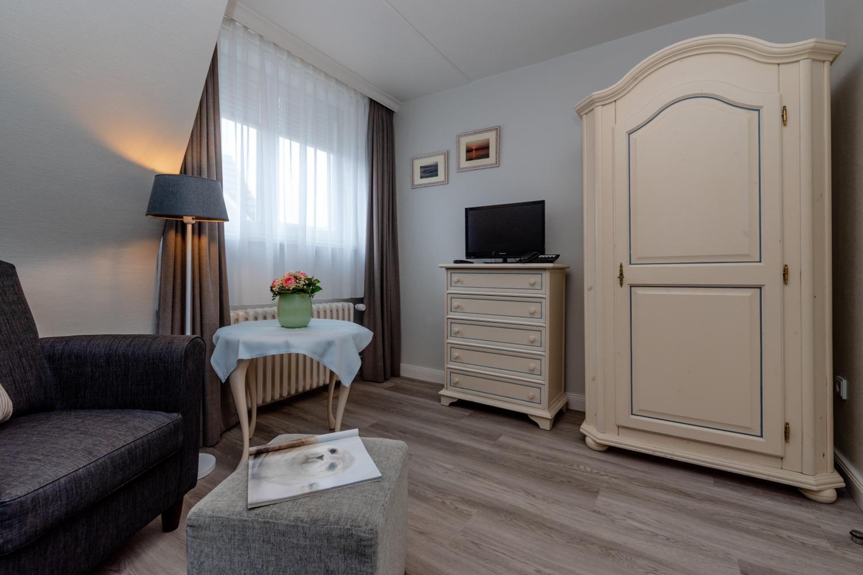 Sehr freundlicher Chef, freundliches Personal, sehr liebevoll und stilsicher eingerichtet. Sehr gute Lage, strandnah. Ruhig, entspannend. Möglichkeit im Strandkorb vor dem Haus zu sitzen.