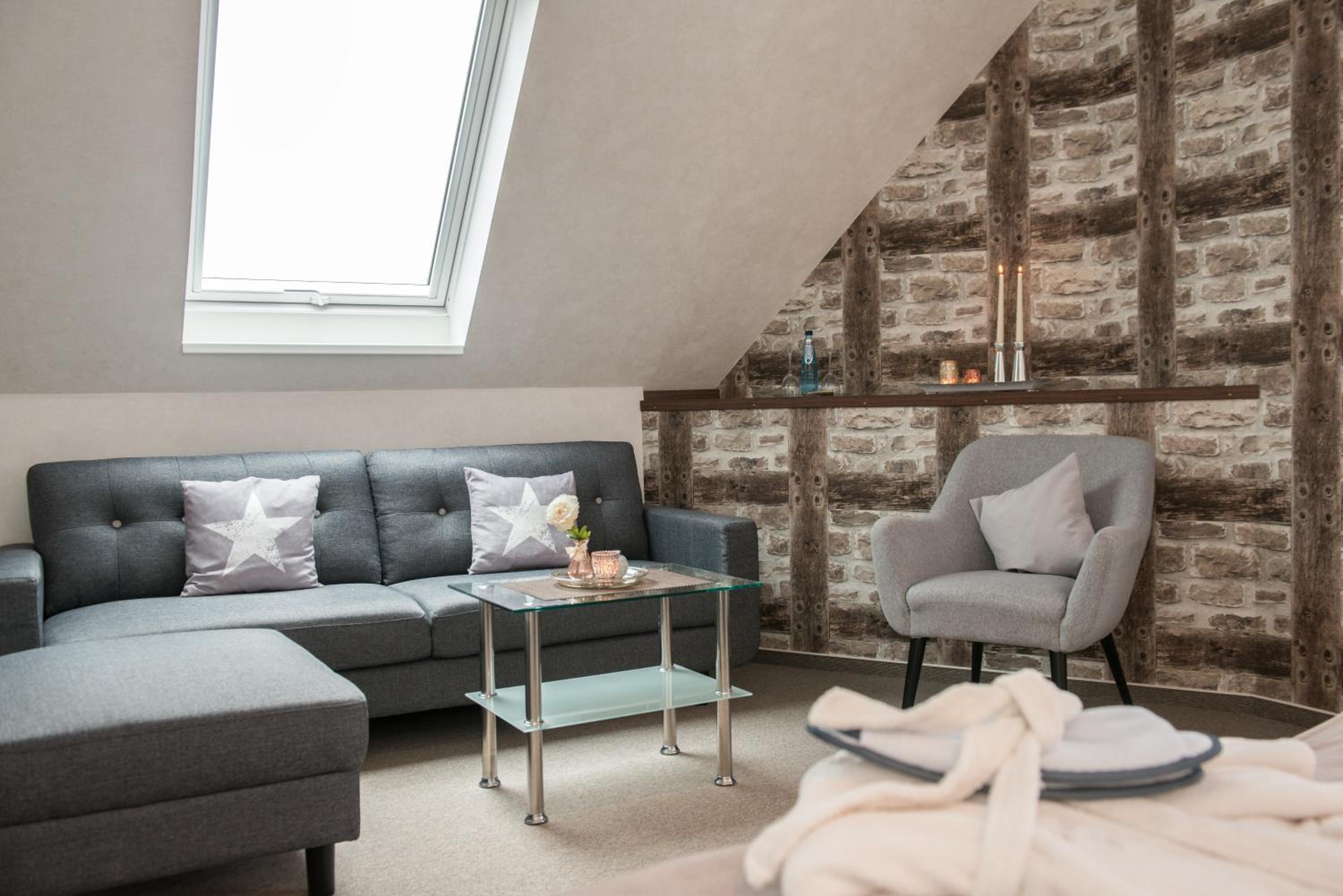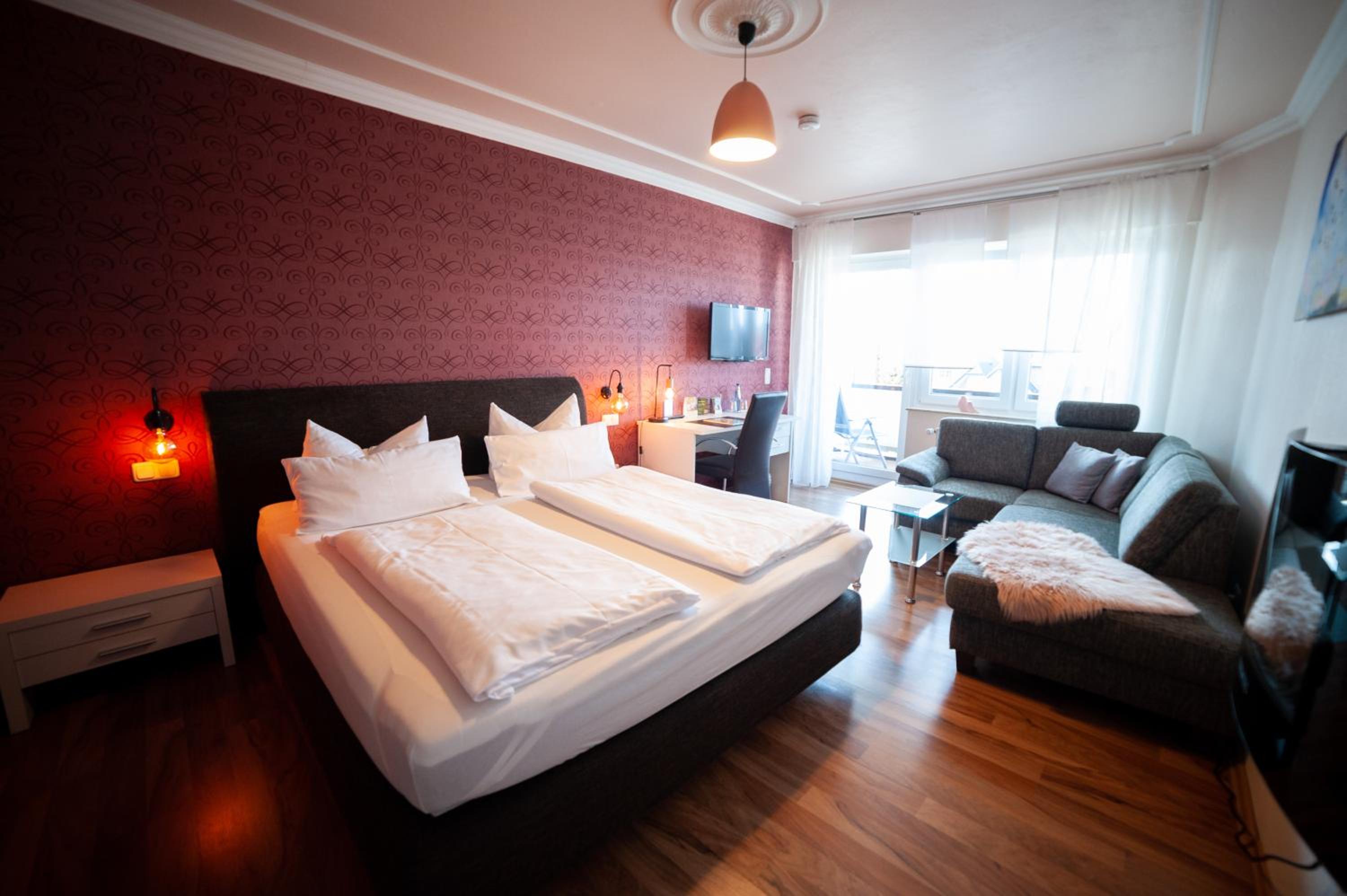 Experience comfort and coziness in the country-style rooms at PIEPers Landidyll Hotel, adorned with bright colours and wooden furniture. Most rooms feature a balcony, a TV-equipped seating area, and a private bathroom, providing a perfect blend of comfort and style.