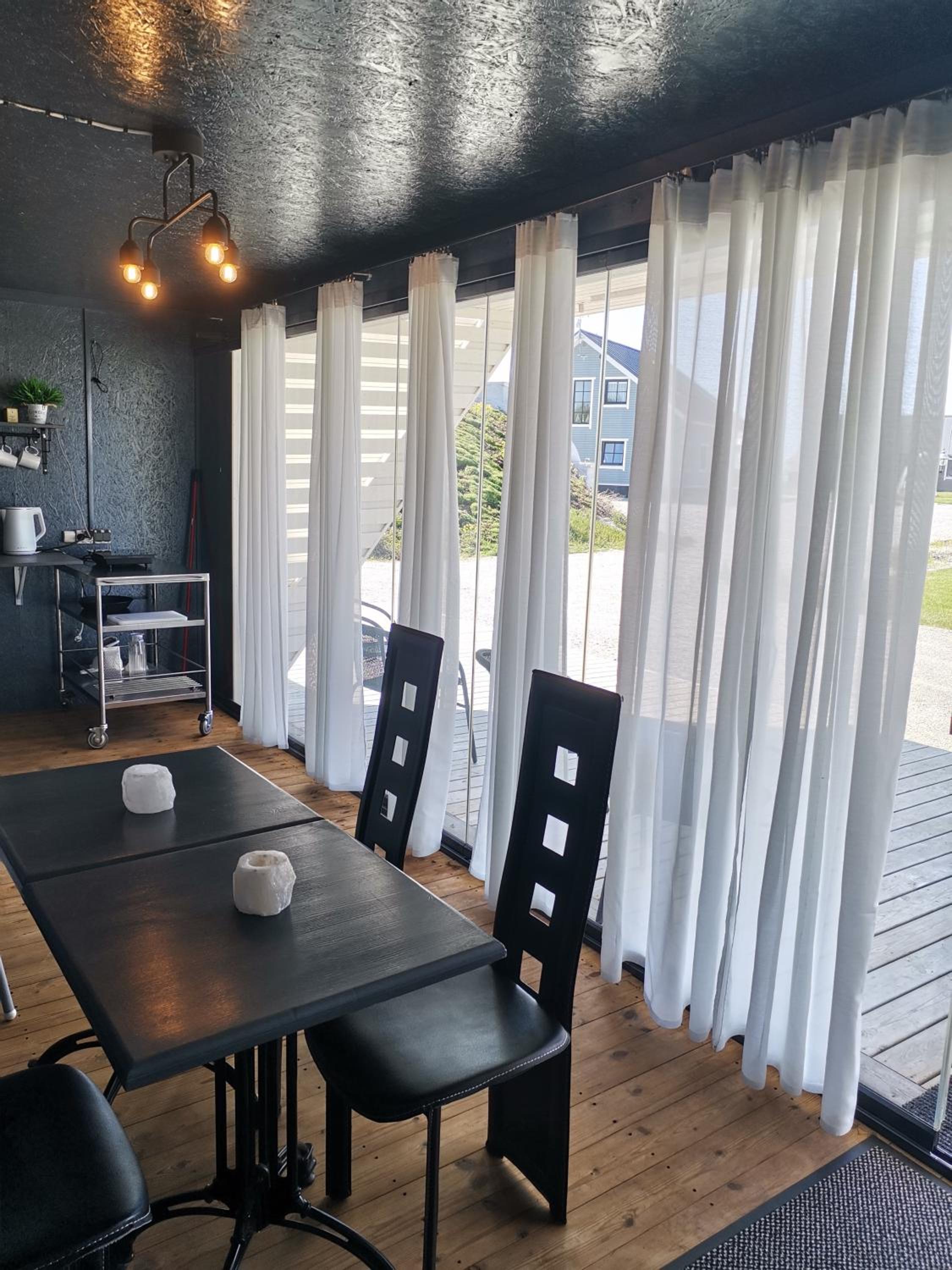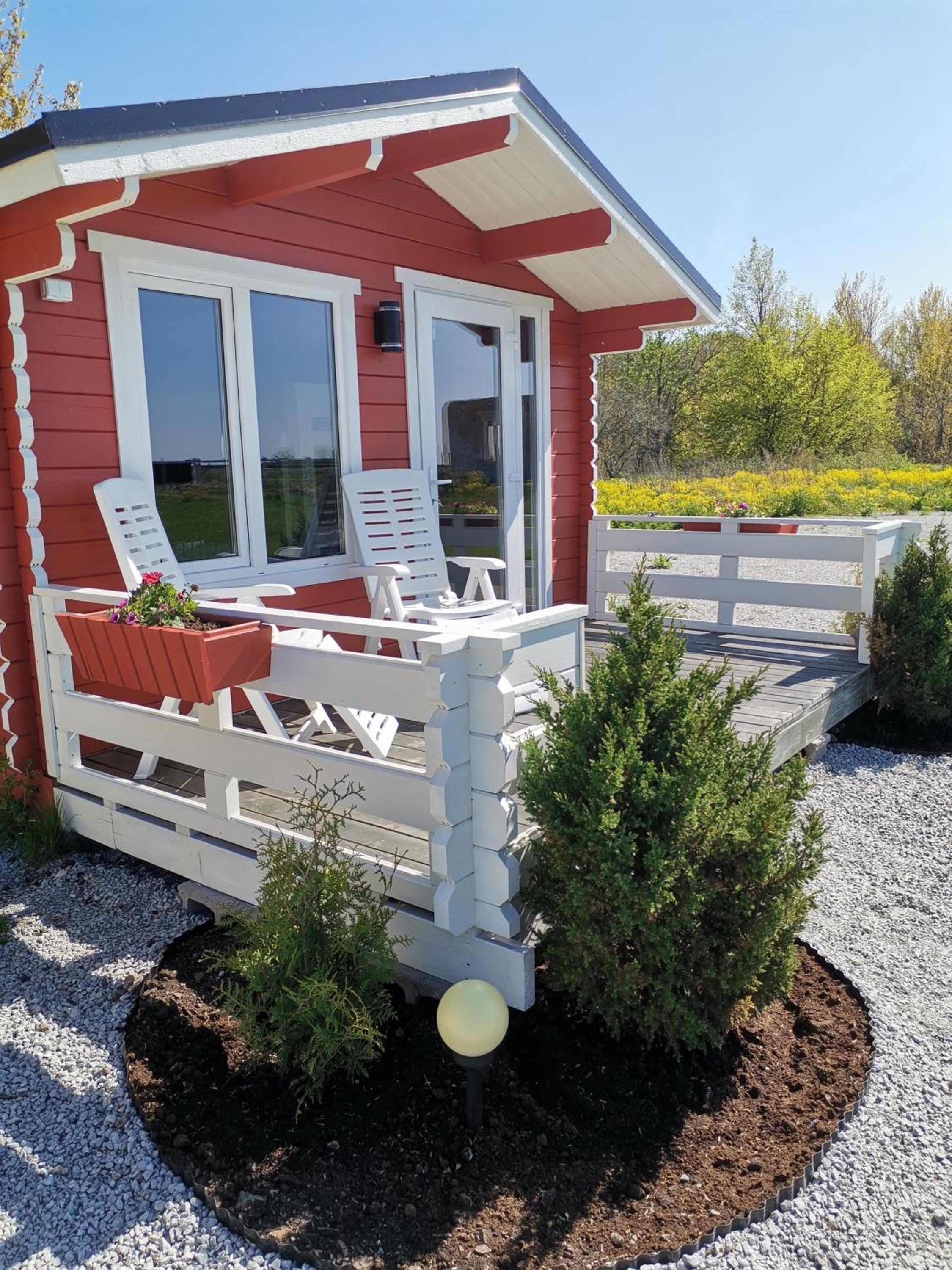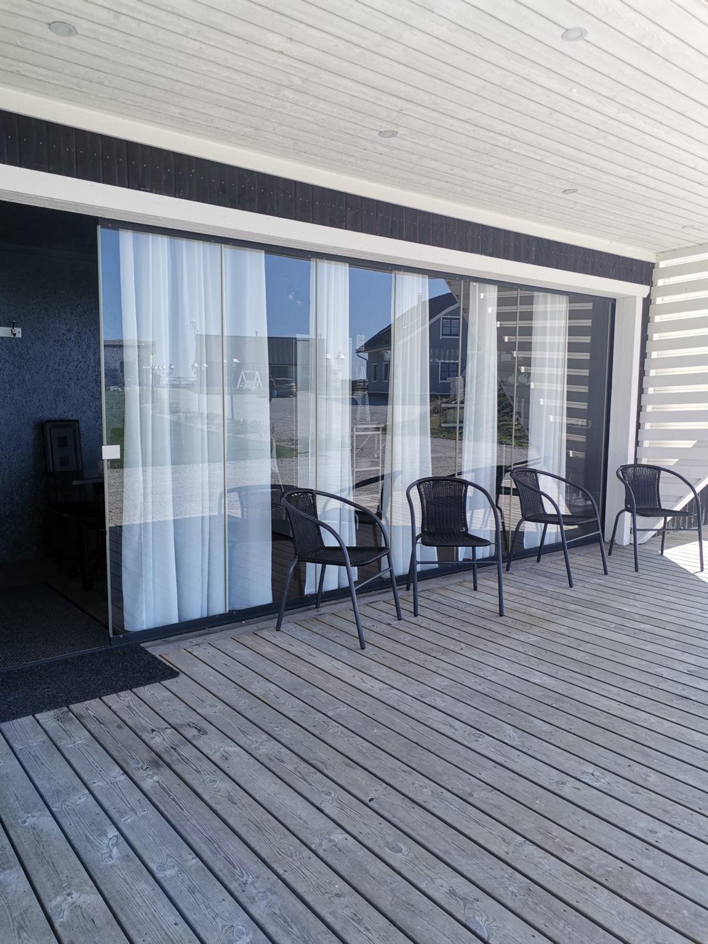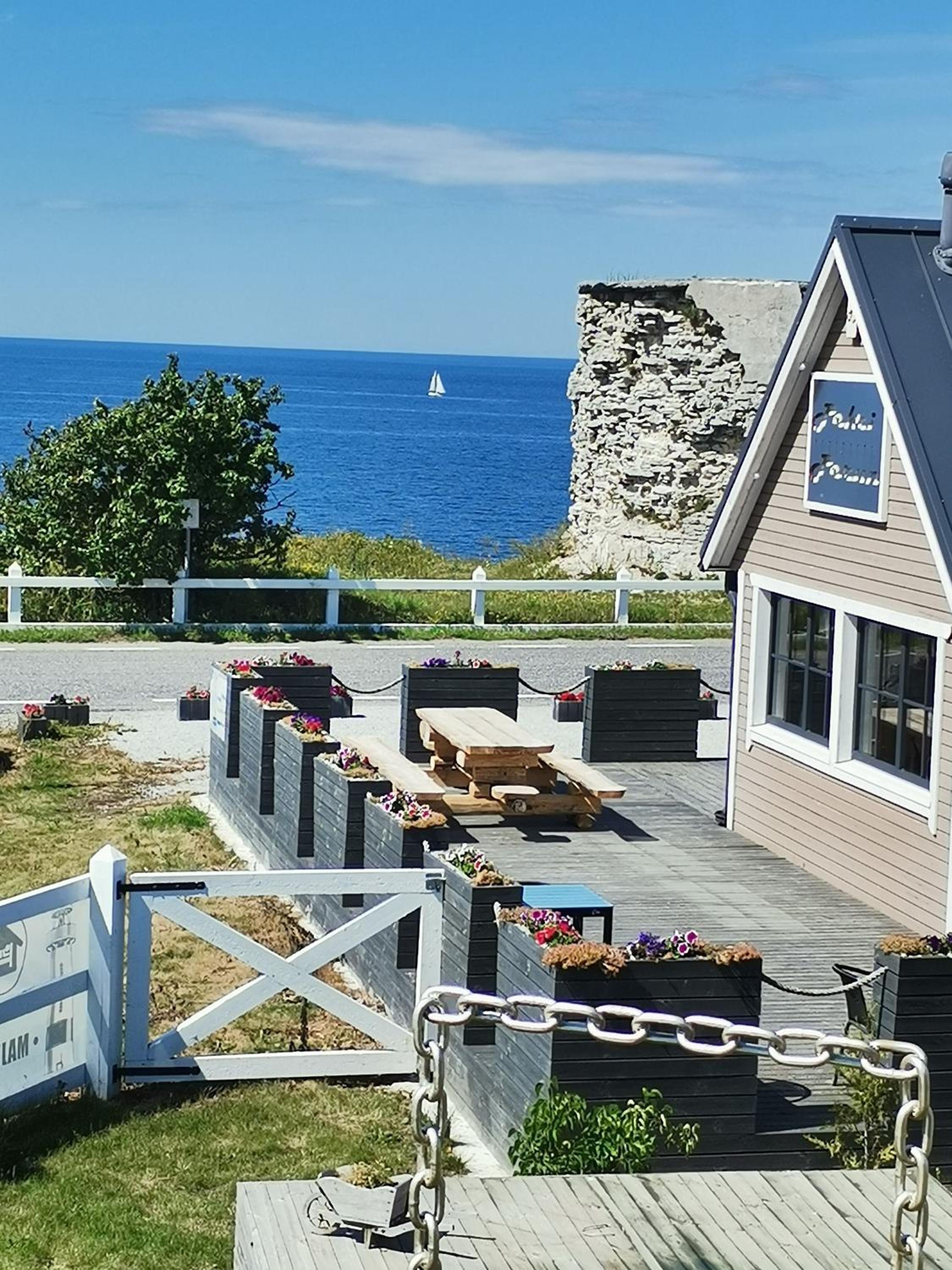Terassen på boendet var restaurang/café-aktigt. Inte så privat. Många som körde förbi stannade för att titta in på terassen och undrade vad som serverades. T.ex en pergola eller ett litet tak kunde göra terassen mysigare med lite mer privat känsla.