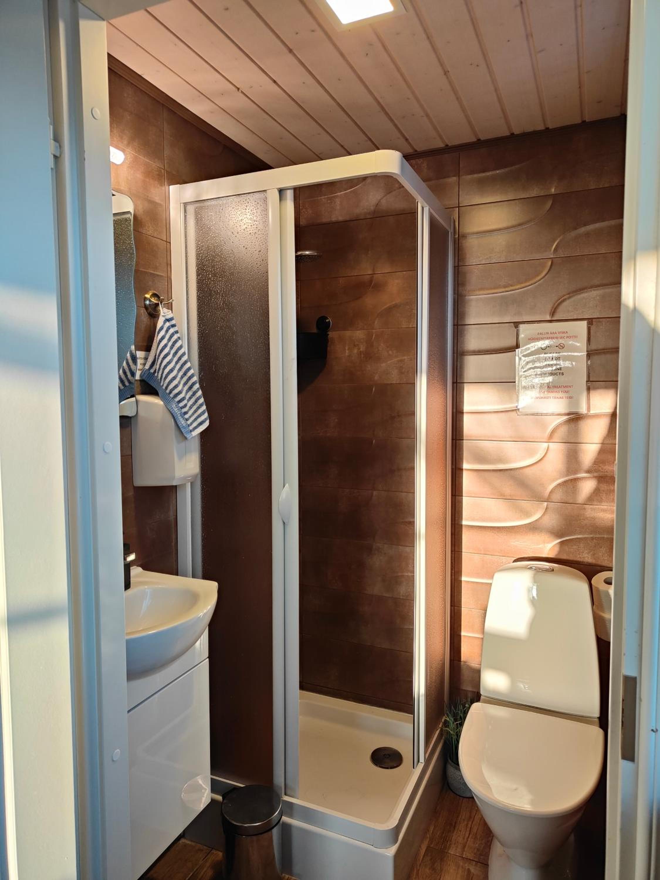 Sijainti oli todella kaunis ja samoin itse majapaikka. Tunnelma oli rauhallinen ja yöllä hiljaista. Paikka sopi hyvin yöpymiseen 9-vuotiaan lapsen kanssa. Keittiö oli hyvin varusteltu.