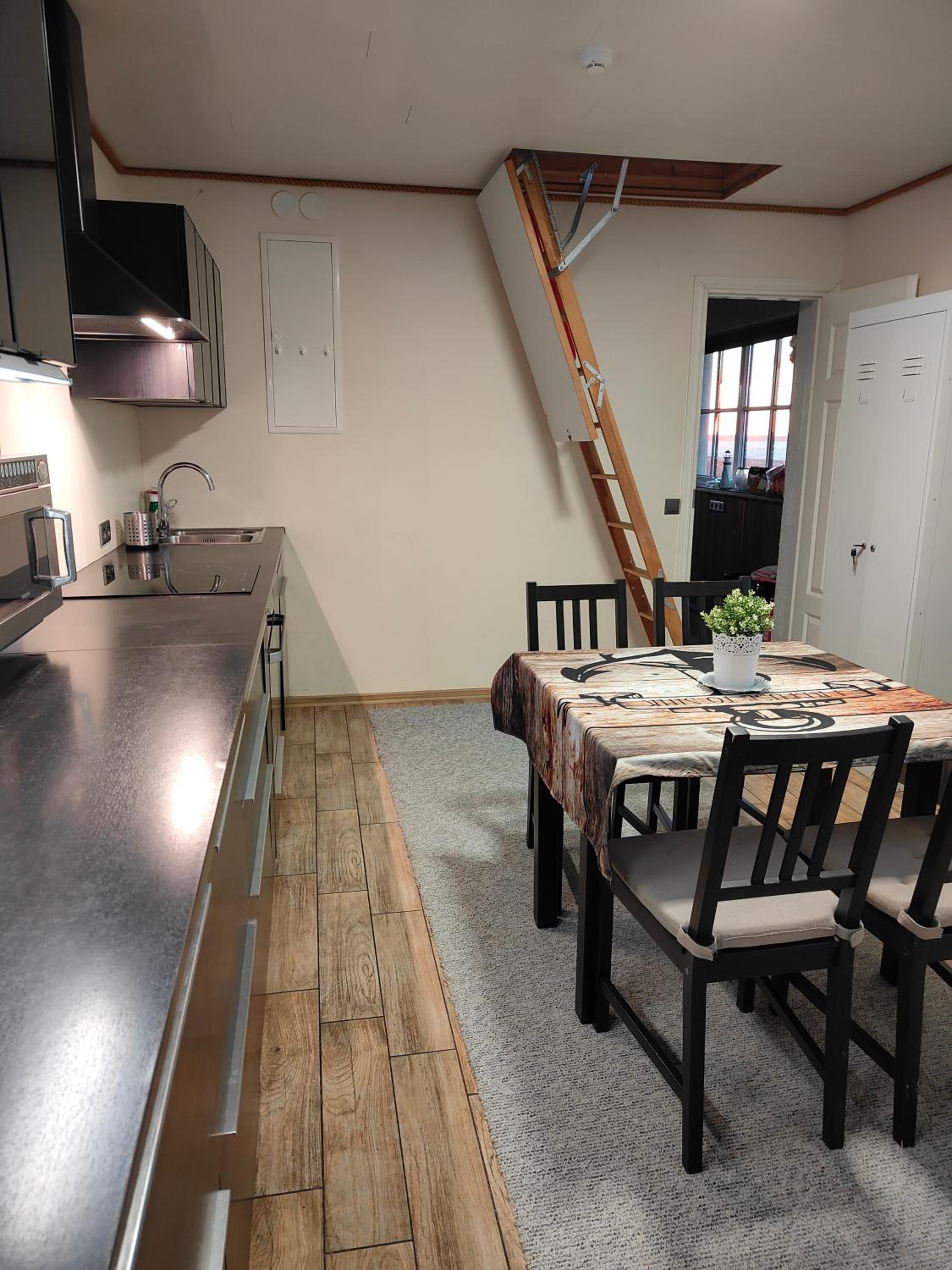 Asunto oli puhdas, hienosti sisustettu ja sisäänkirjautuminen oli helppoa koodin avulla. Yhteisessä keittiössä oli kaikki tarvittavat välineet.