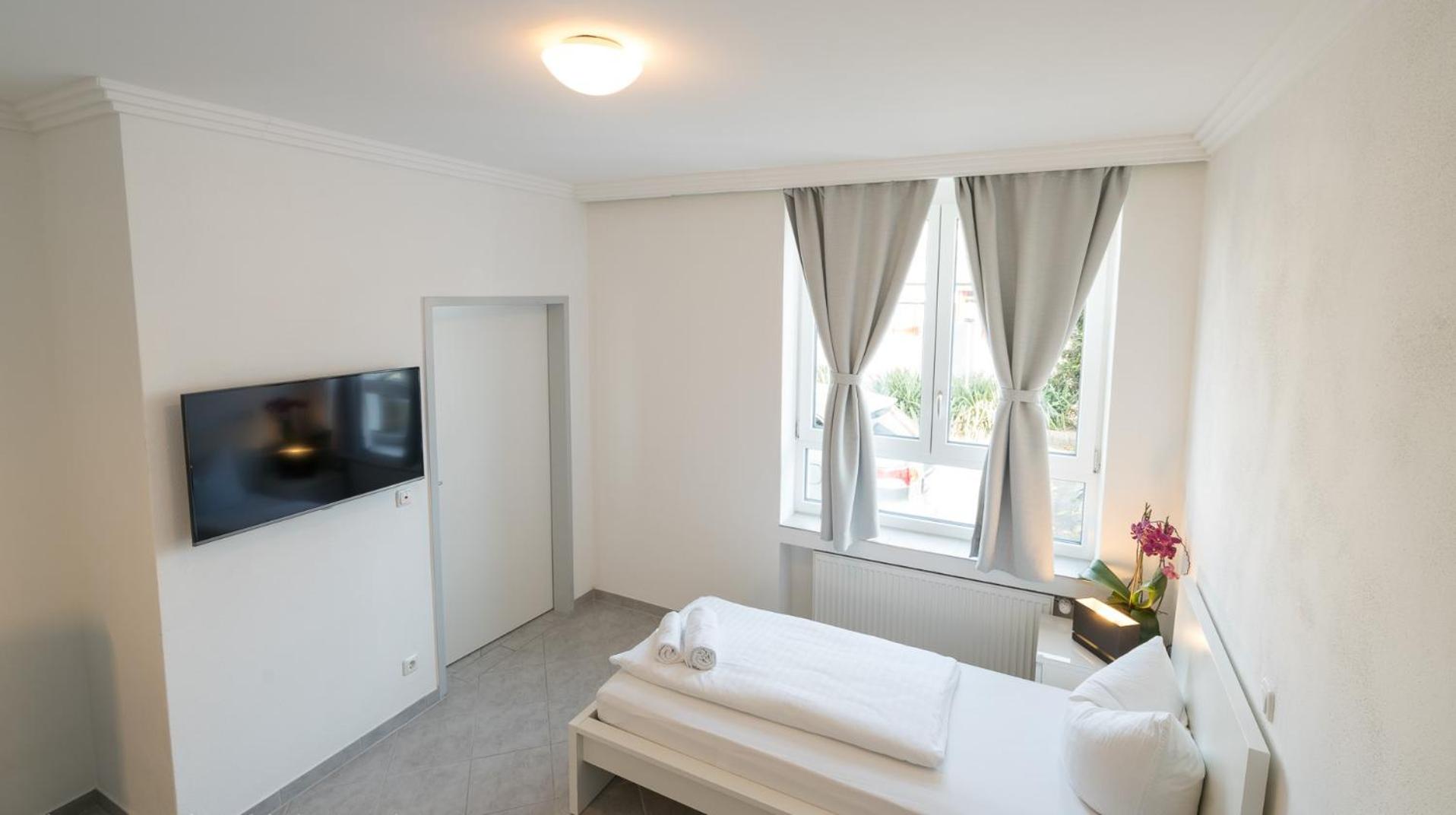 Please contact the guest house in advance to arrange the pick-up of keys. Please provide a contact telephone number when booking so guenstigschlafen24 can provide the code for the keybox, in the case of late arrival.