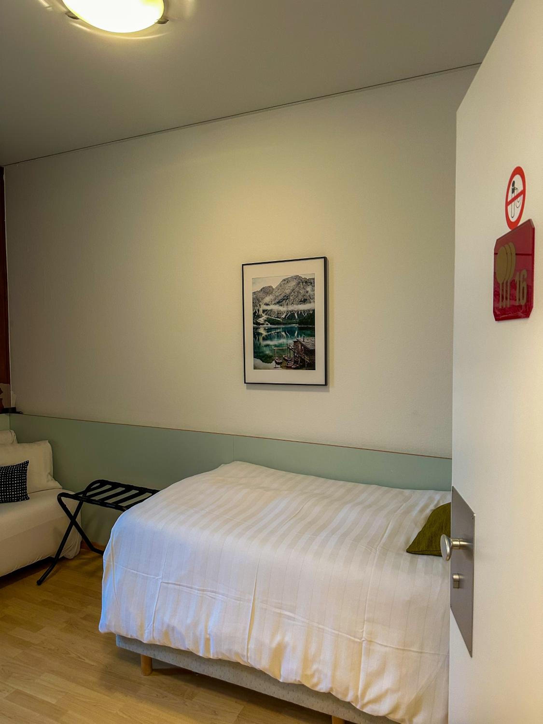 Stanza recuperata di fortuna, al quarto piano senza ascensore, calorifero non funzionante. Erano presenti infatti 2 caloriferi elettrici nella stanza. Per andare a fare colazione bisogna uscire dalla parte hotel girare il portico e accedere al ristorante dall'esterno, con il freddo di dicembre un pò disagevole.