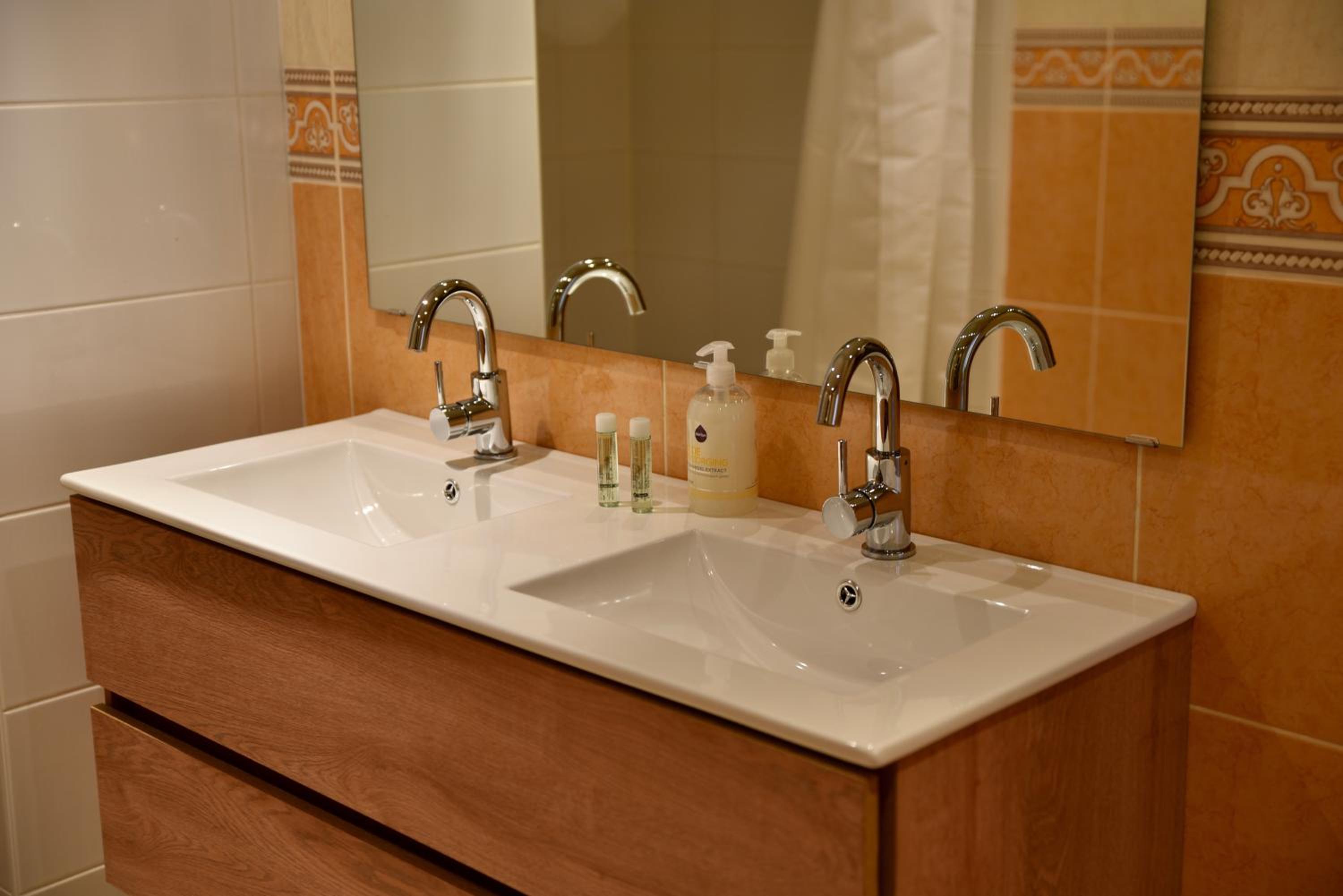 Waschbecken nicht viel breiter wie der Spiegelschrank dadrüber, sich waschen ist mühsam, wenn man nicht alles nass machen möchte. Durch das Wasser nehme ich an, ist der Spiegelschrank und der Waschbeckenunterschrank kaputt gegangen. Da wollte ich dann auch nicht meine Toilettenartikel einräumen, weil man es nunmal in dem Zustand auch nicht mehr vernünftig sauber machen kann mit geplatzter erster Schicht. Sehr auffällig auch wirklich krasse Kalkablagerungen in der Duschkabine. Lüftung im Bad war leider auch defekt. Nach dem duschen und Toilettengang sehr unglücklich.