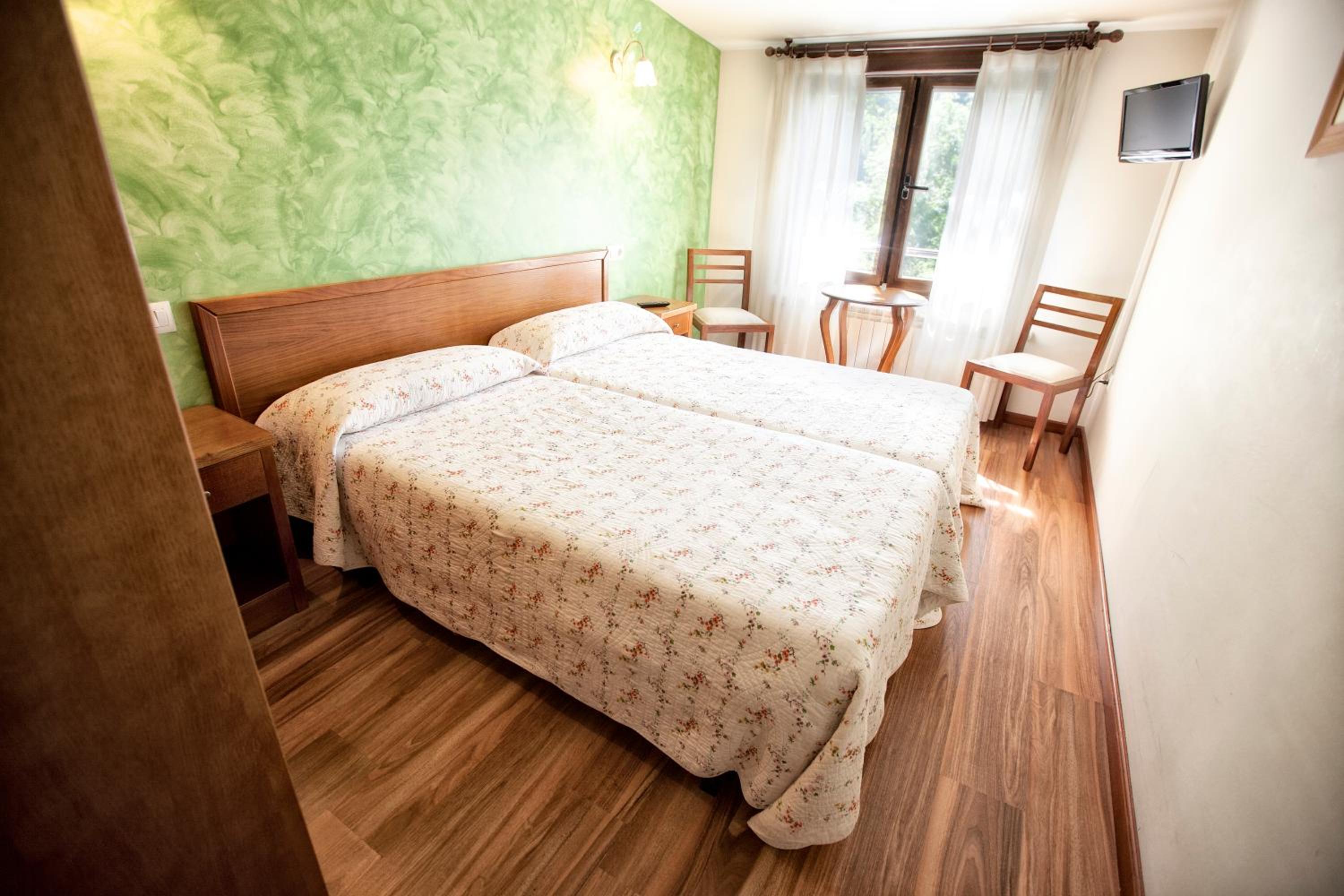 Según lo descrito, sin sorpresas. Tuvo el detalle de dejarnos aparcar delante del hotel ya que llegamos a las 10 y en cangas de Onís no había donde aparcar.