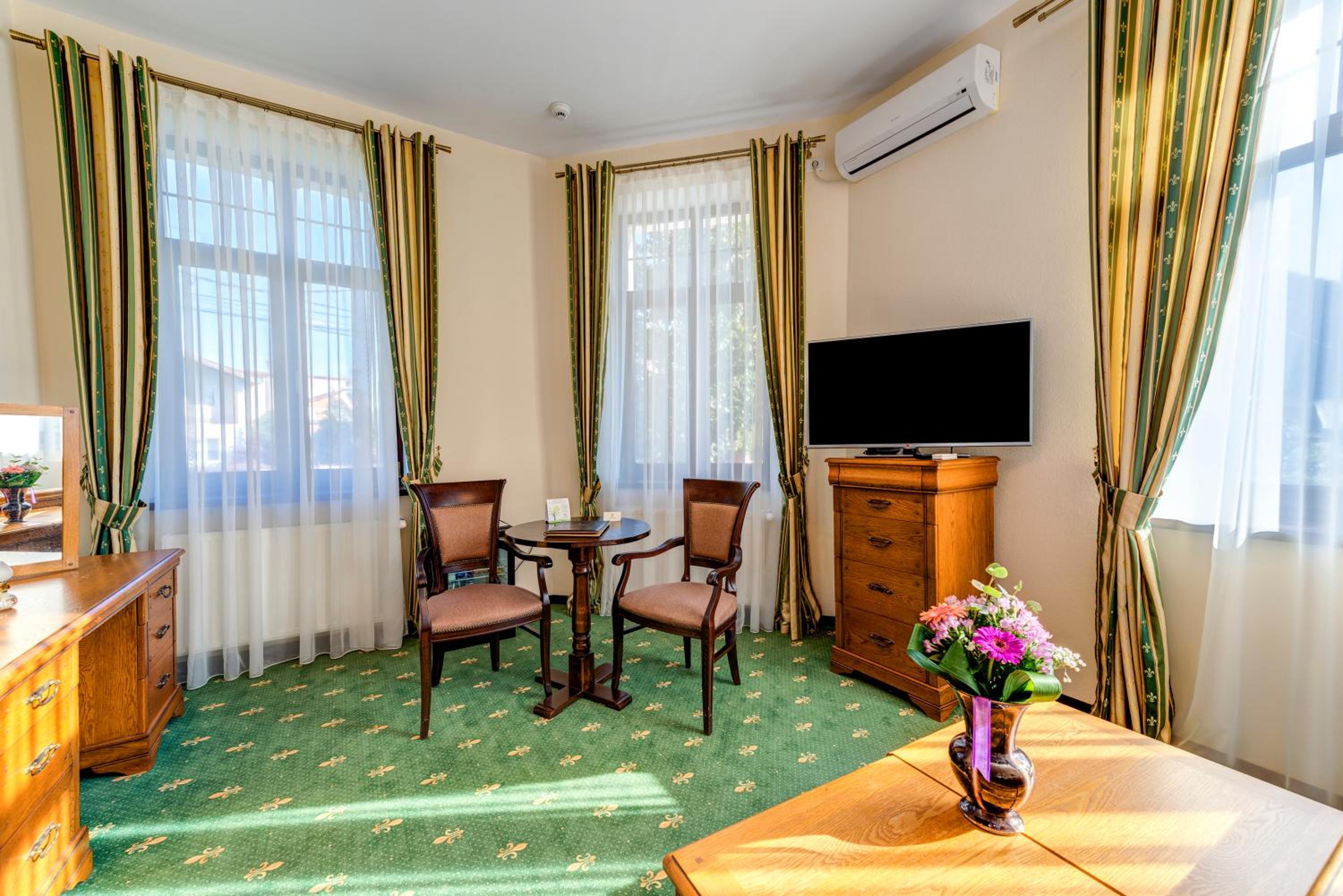 Experience a stay like no other at Karlhof, just a short distance from Câlnic Citadel. Indulge in our air-conditioned rooms with garden views, sauna access, and beauty services. Each room features modern amenities like free WiFi, a TV, and a safety deposit box. Relax in the garden or enjoy a meal at our international cuisine restaurant.