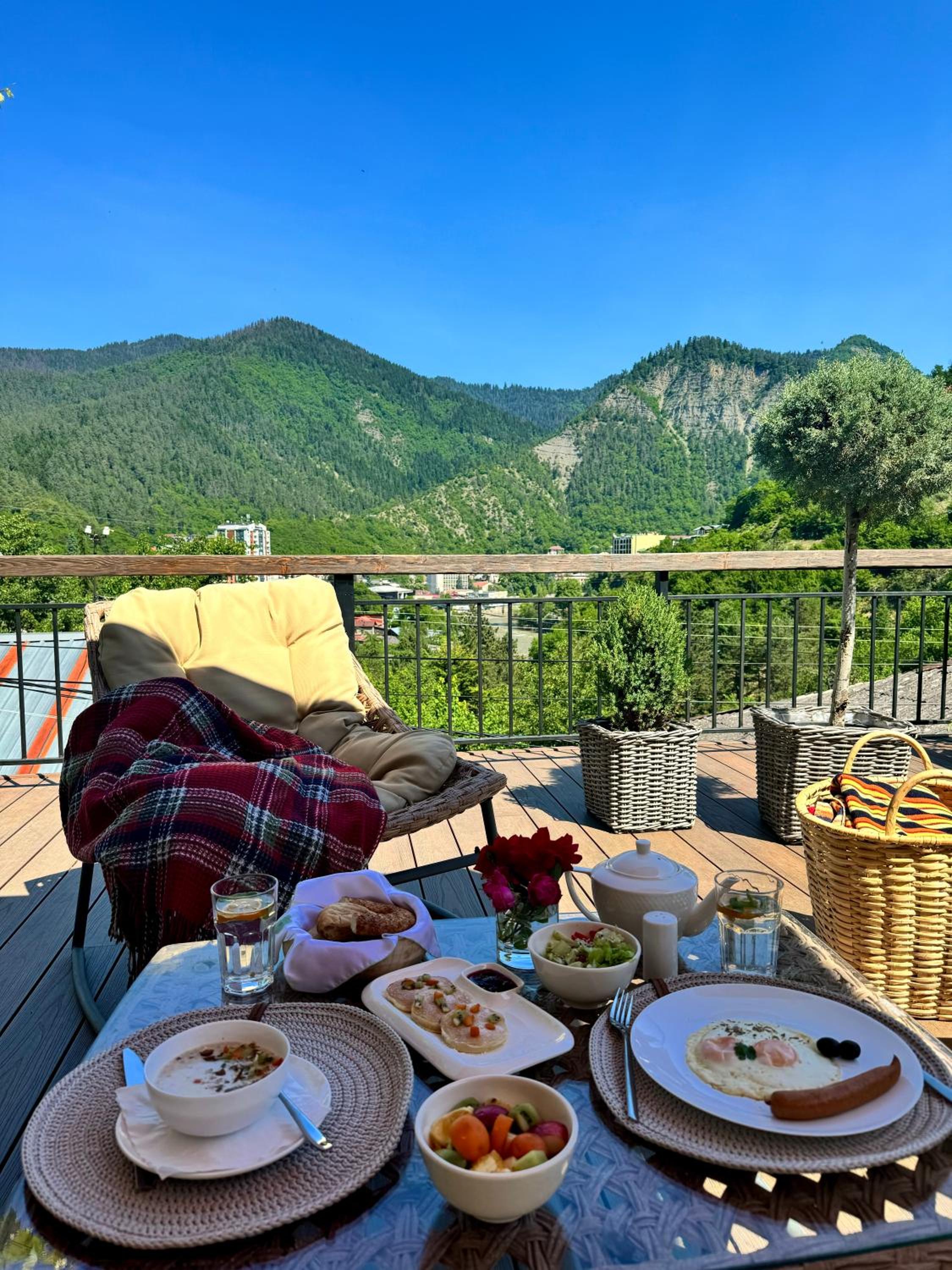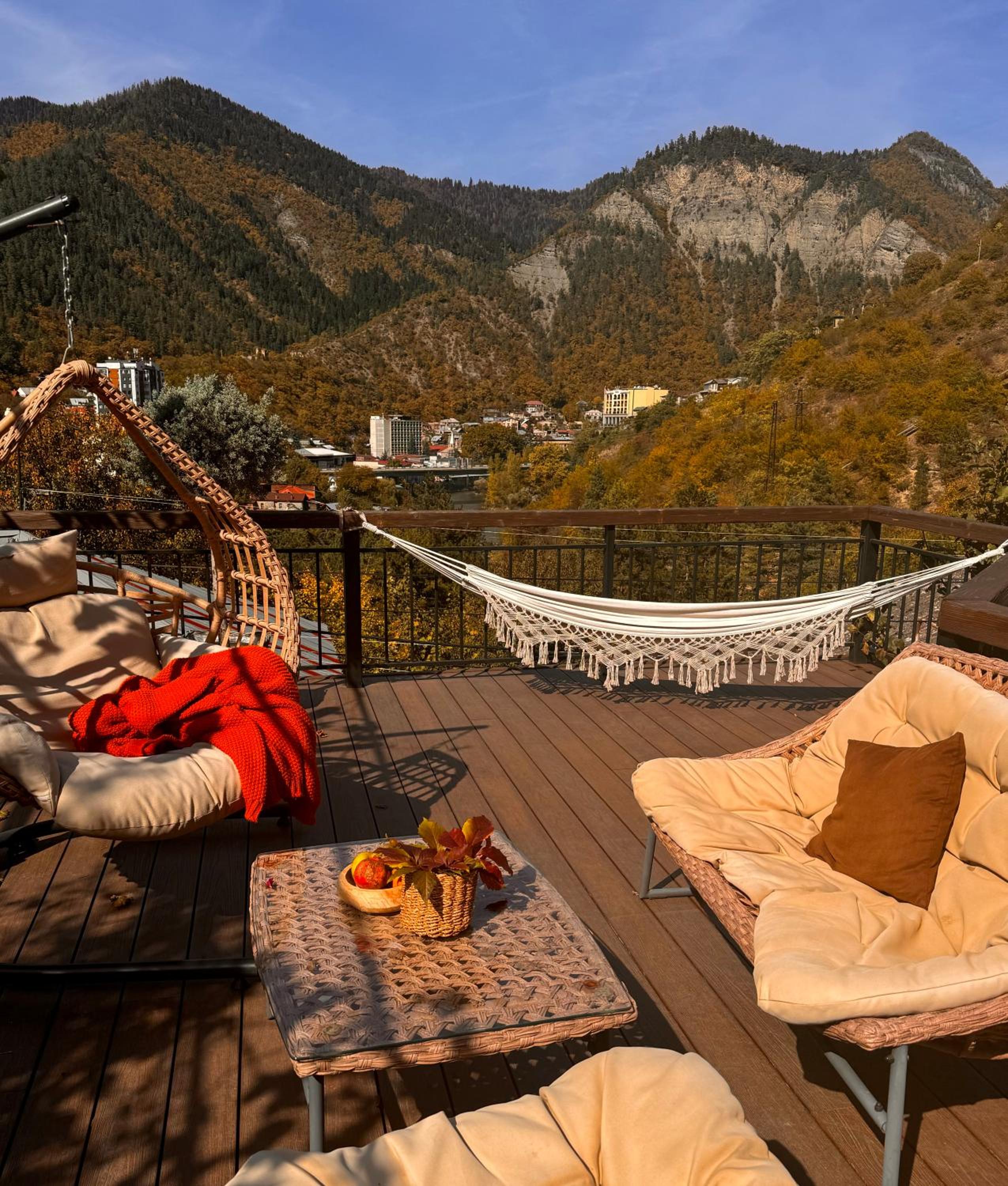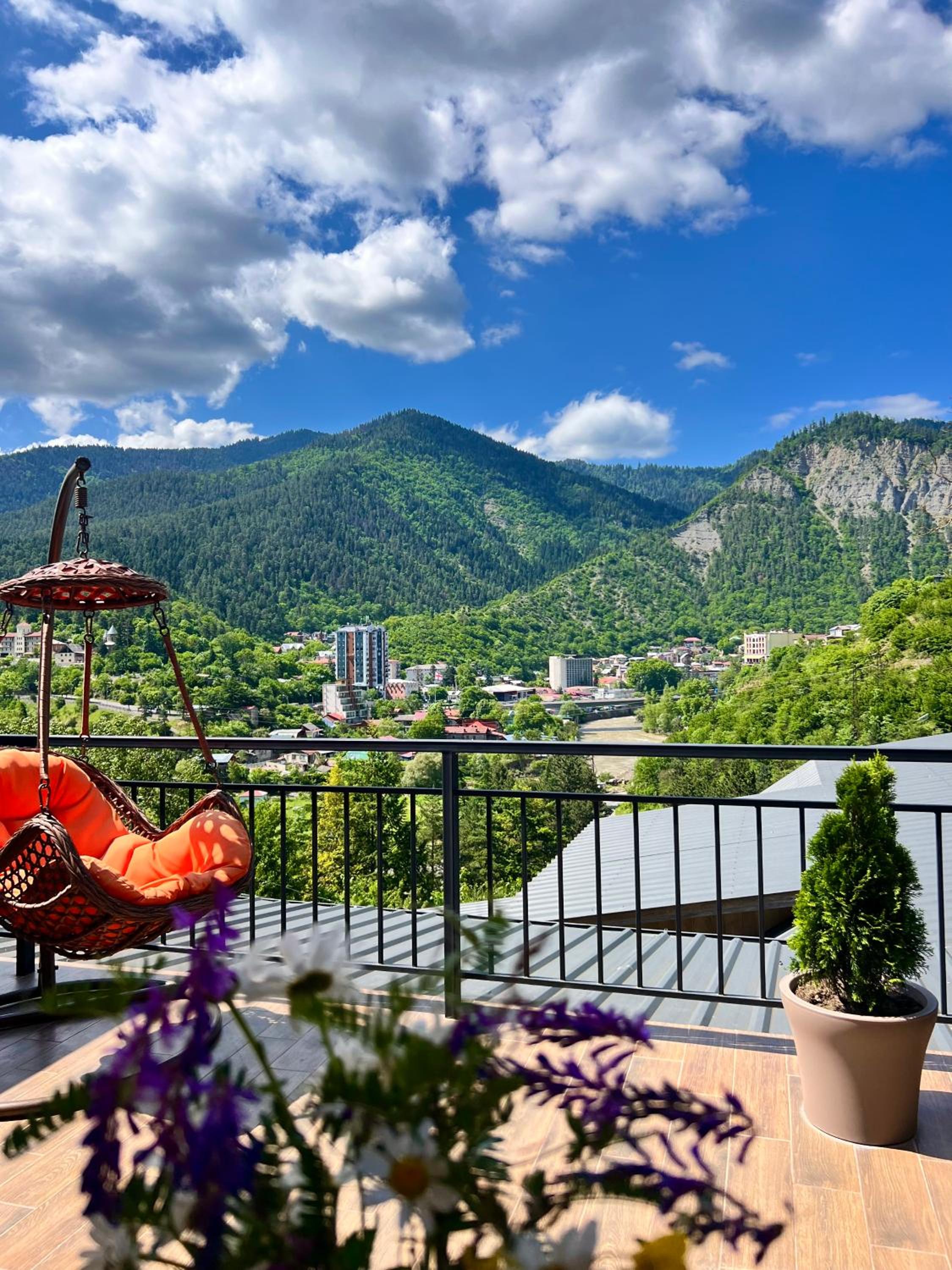 Each room at Hotel Borjomi Verde features a private balcony, offering a tranquil retreat. Guests can revel in the city views from the comfort of their room. The modern amenities include a flat-screen TV, a hairdryer, and a well-equipped private bathroom with complimentary toiletries.