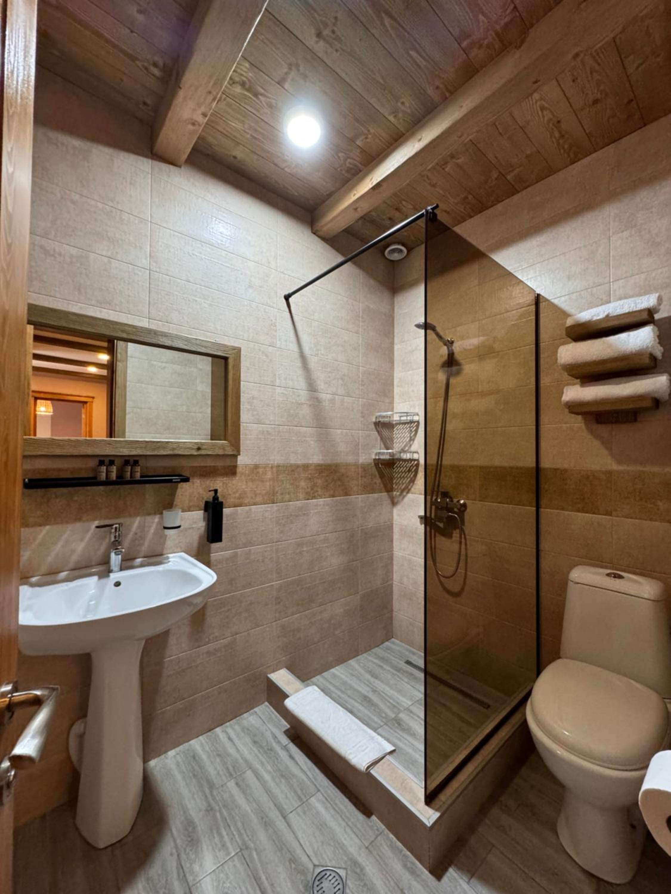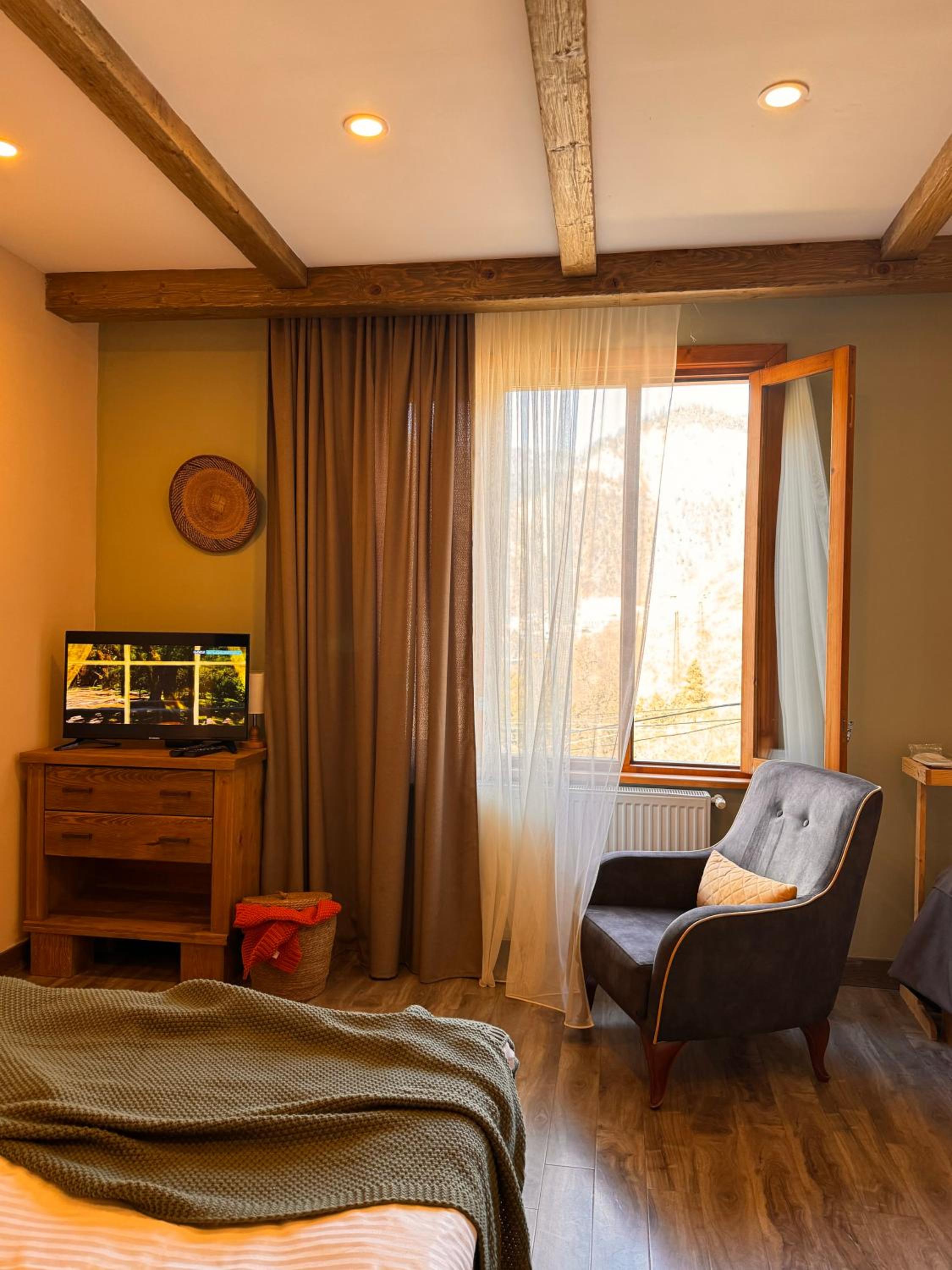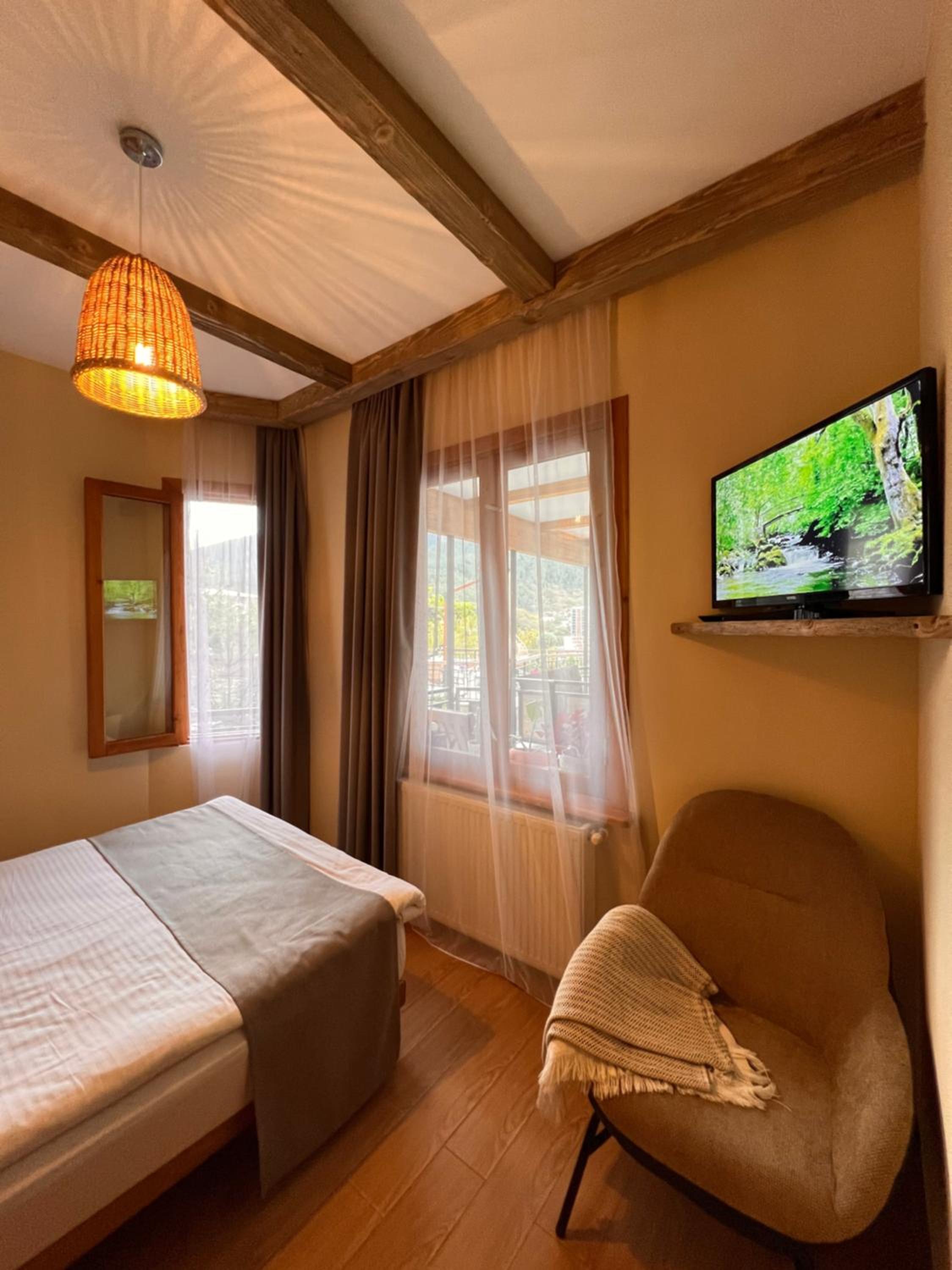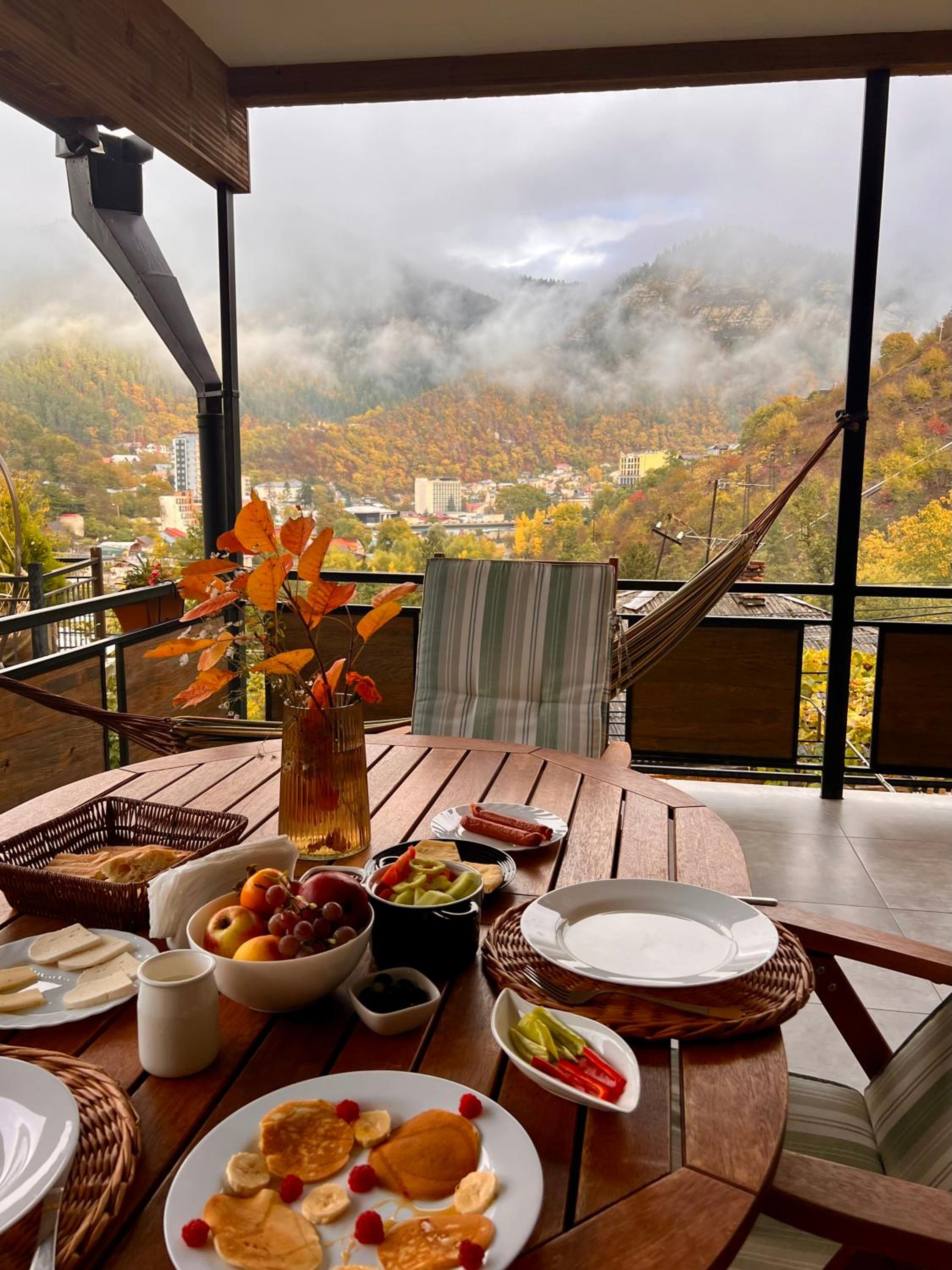 Each room at Hotel Borjomi Verde features a private balcony, offering a tranquil retreat. Guests can revel in the city views from the comfort of their room. The modern amenities include a flat-screen TV, a hairdryer, and a well-equipped private bathroom with complimentary toiletries.
