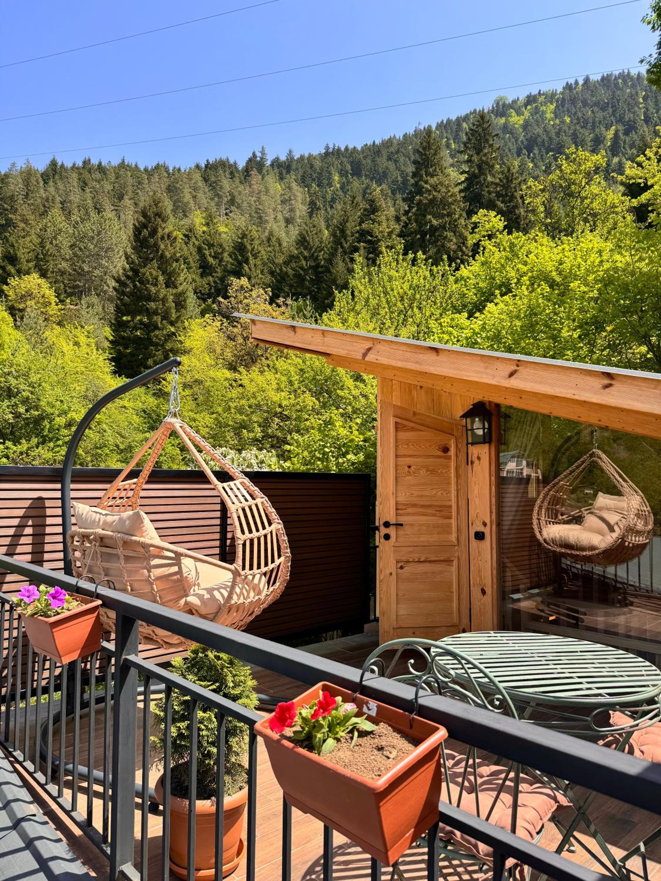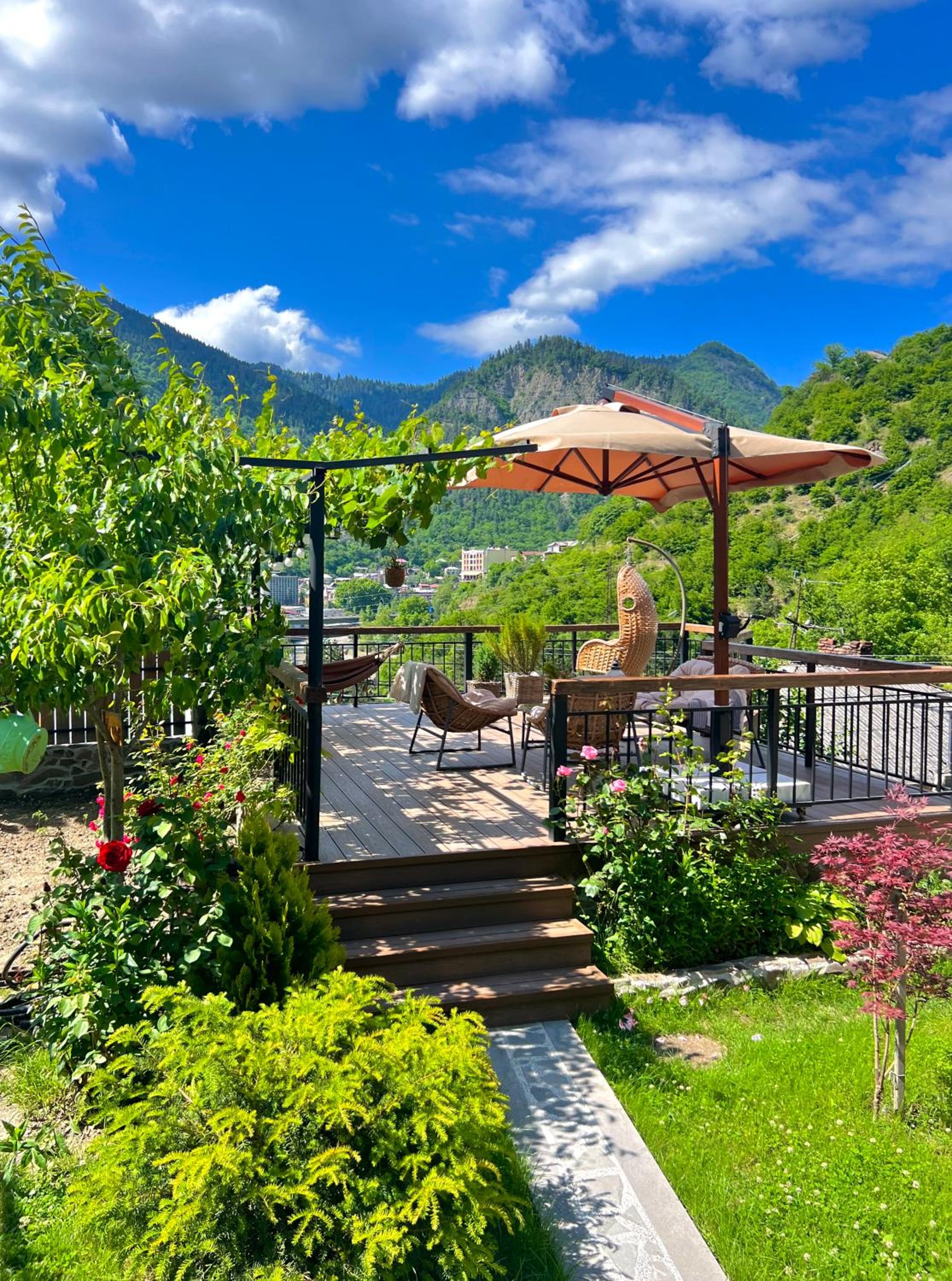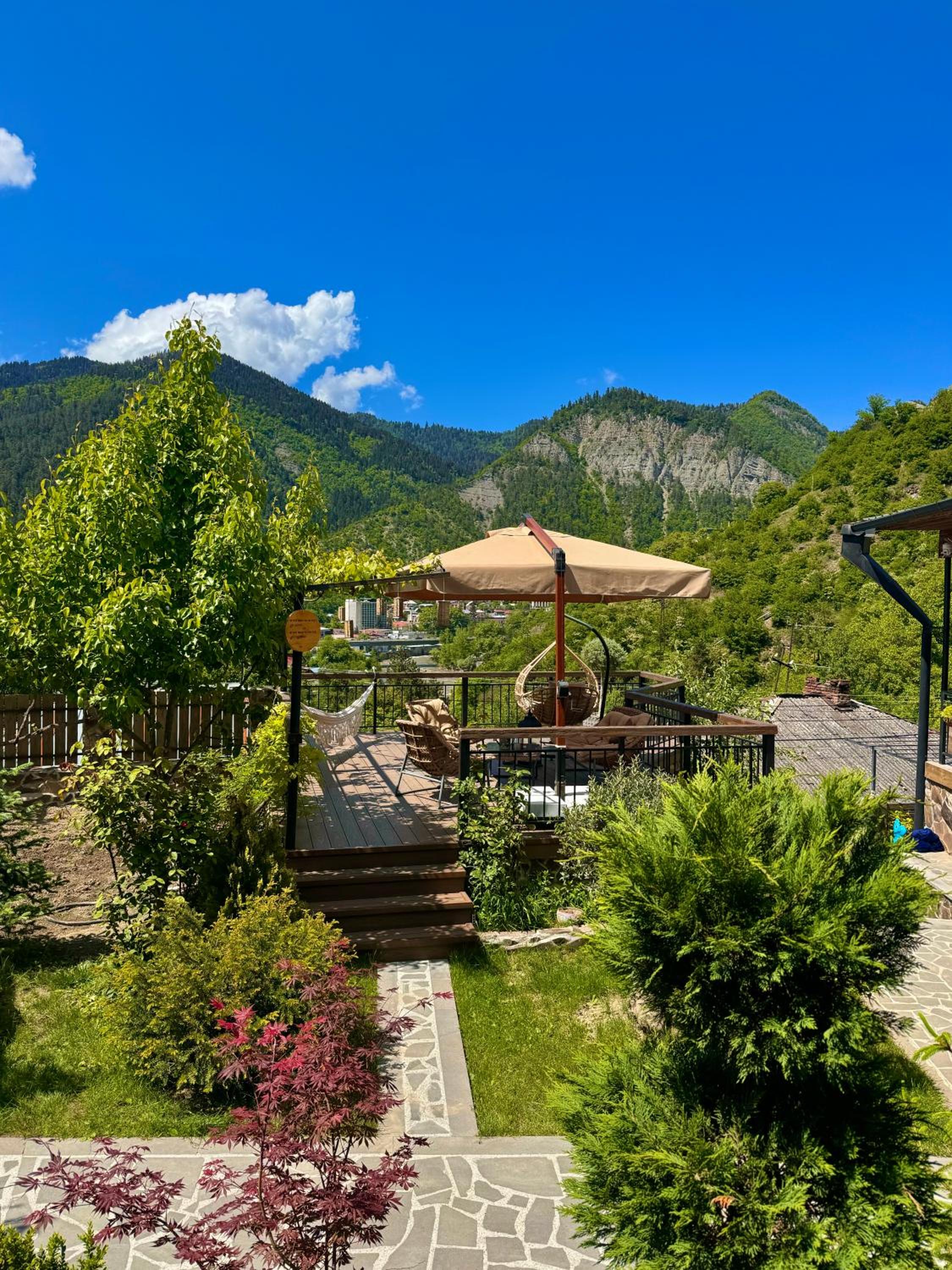 Hotel Borjomi Verde, nestled in the picturesque town of Borjomi, offers a serene garden for guests to unwind in. The inviting terrace provides a perfect spot to enjoy the surrounding beauty while staying connected with complimentary WiFi and convenient free parking.