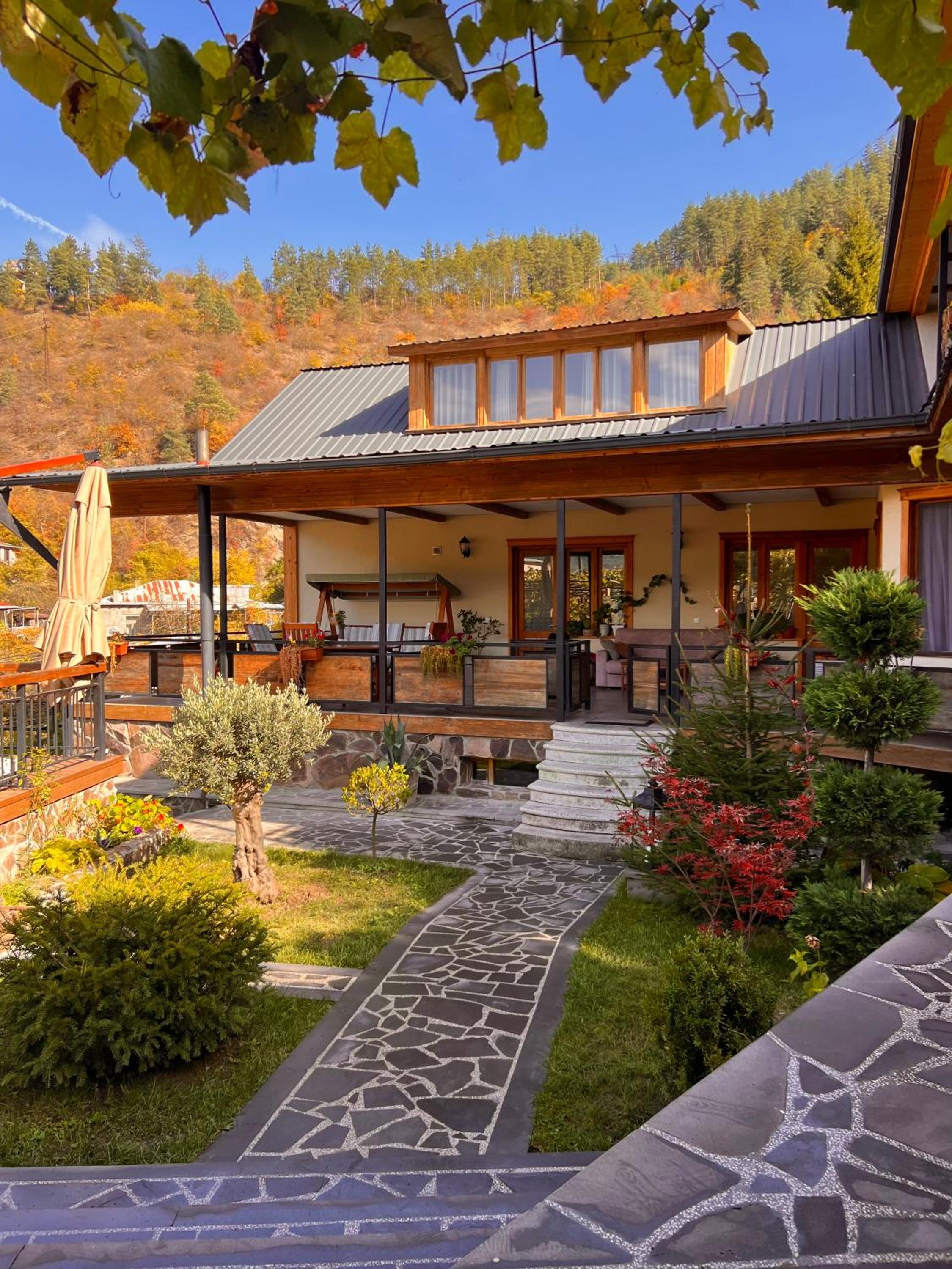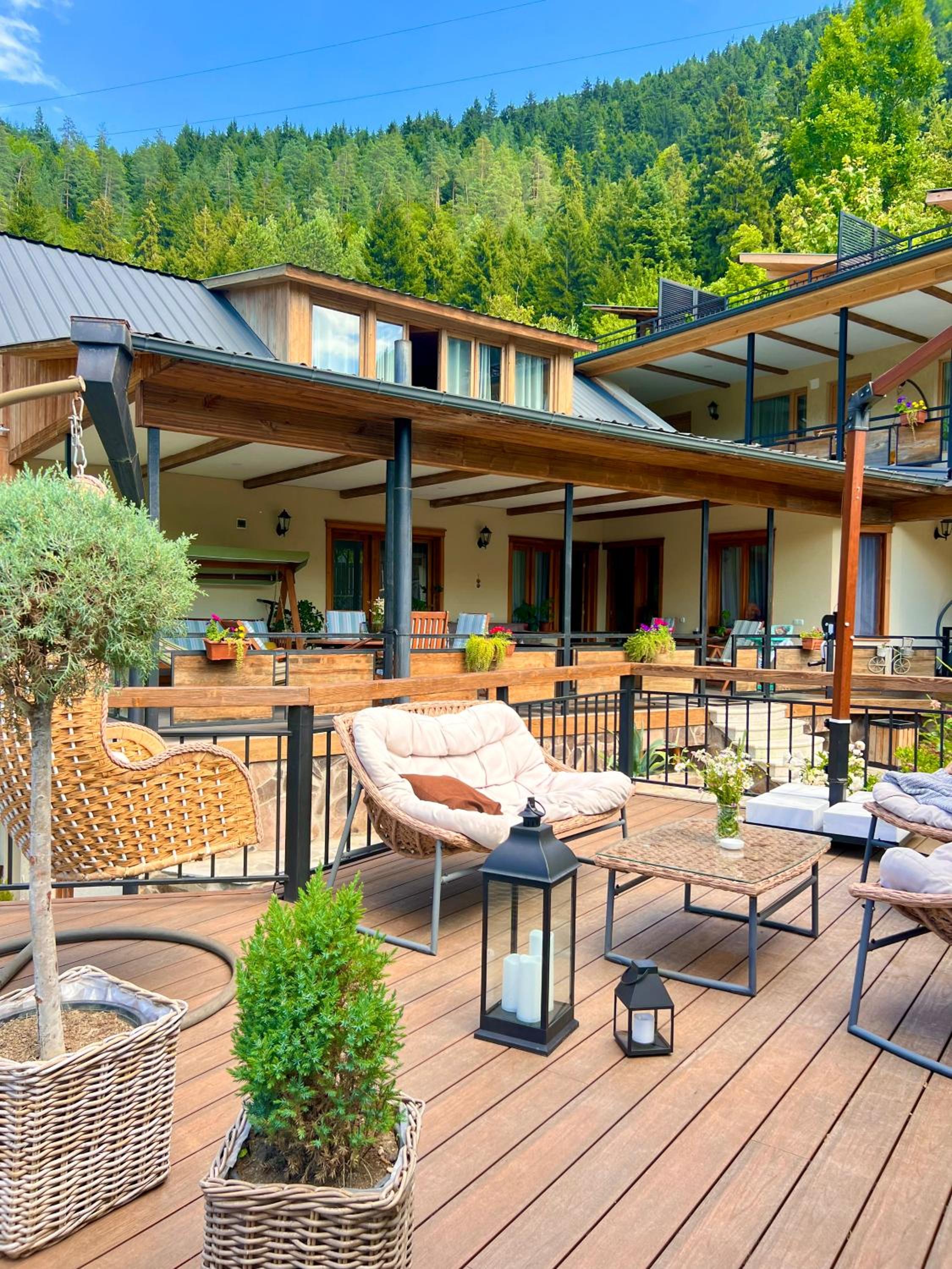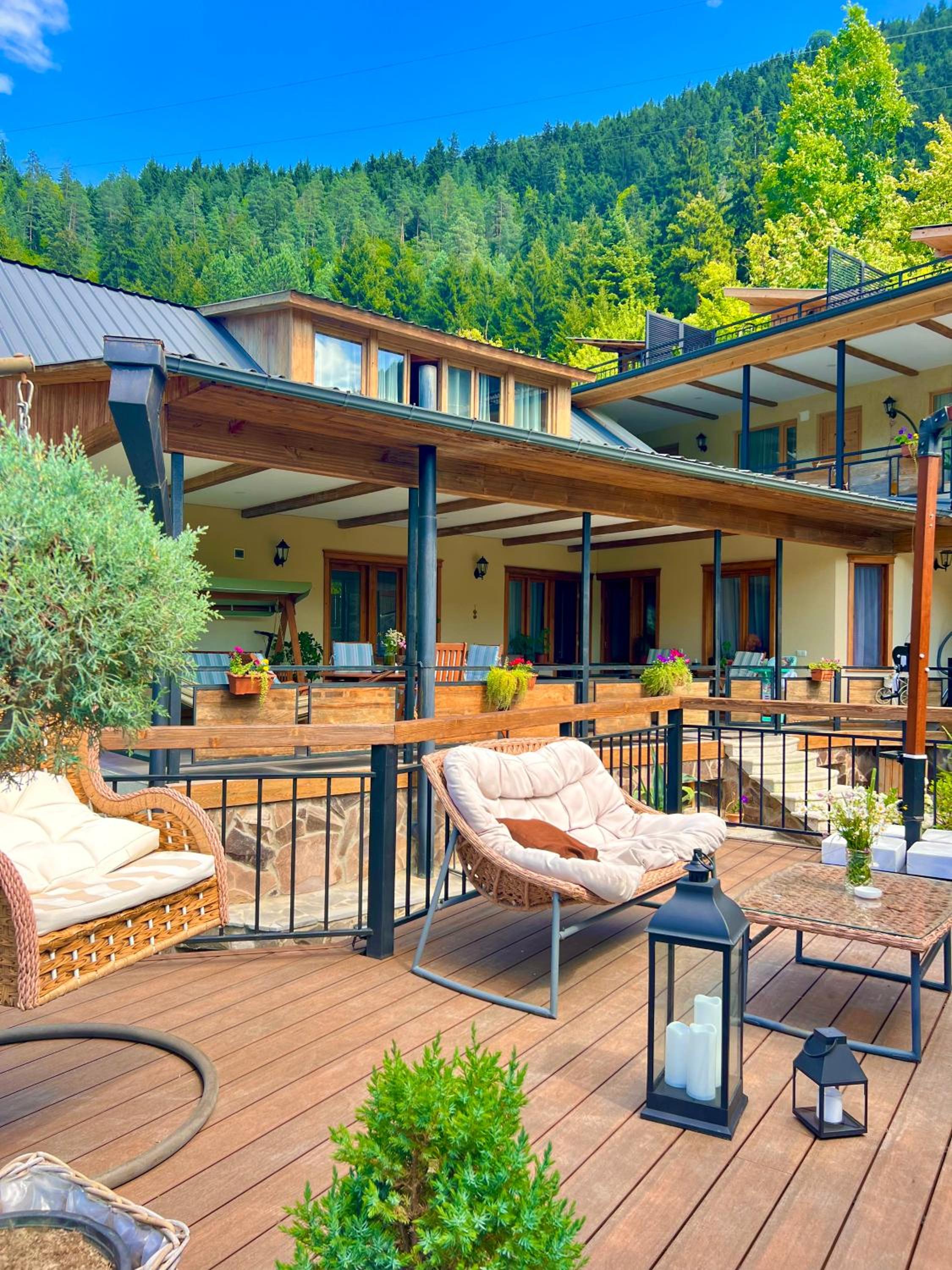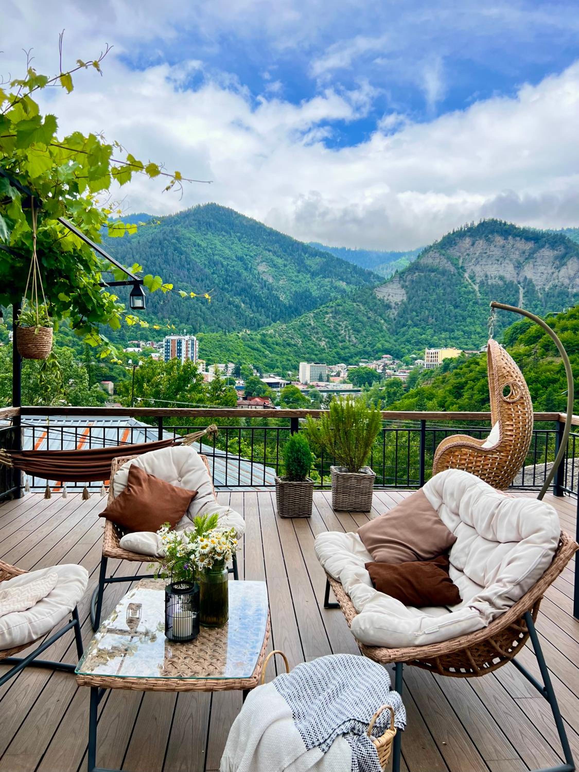 Hotel Borjomi Verde, nestled in the picturesque town of Borjomi, offers a serene garden for guests to unwind in. The inviting terrace provides a perfect spot to enjoy the surrounding beauty while staying connected with complimentary WiFi and convenient free parking.