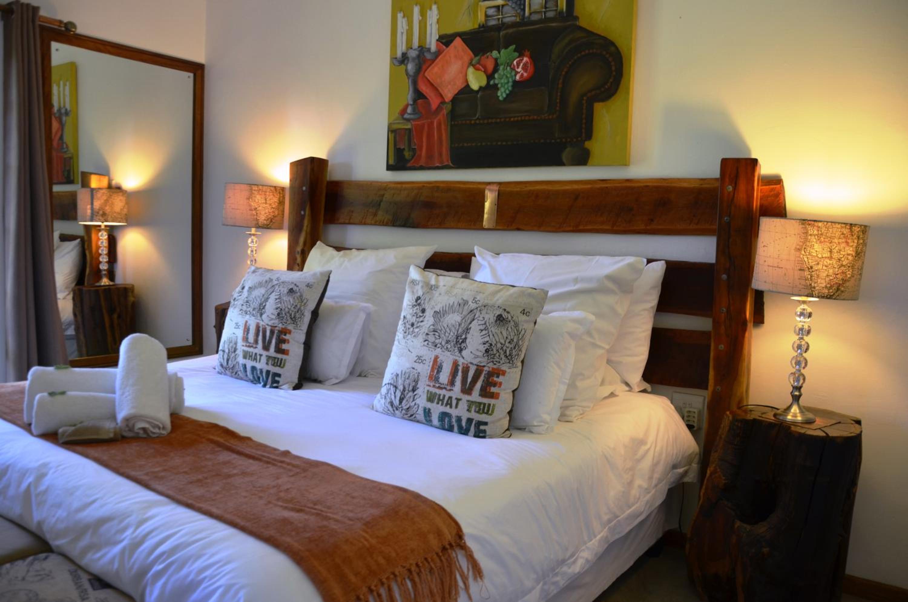 The accommodation setting is beautiful. The rooms are very spacious. Bed very comfortable. Our host was very gracious. The food was good. Definitely a hidden gem. Our own little island in South Africa, many people don't know about. Beautiful open-air chapel that it set next to the river, stunning garden. Rooms are all decorated individually lots of love and time has been put into the rooms.