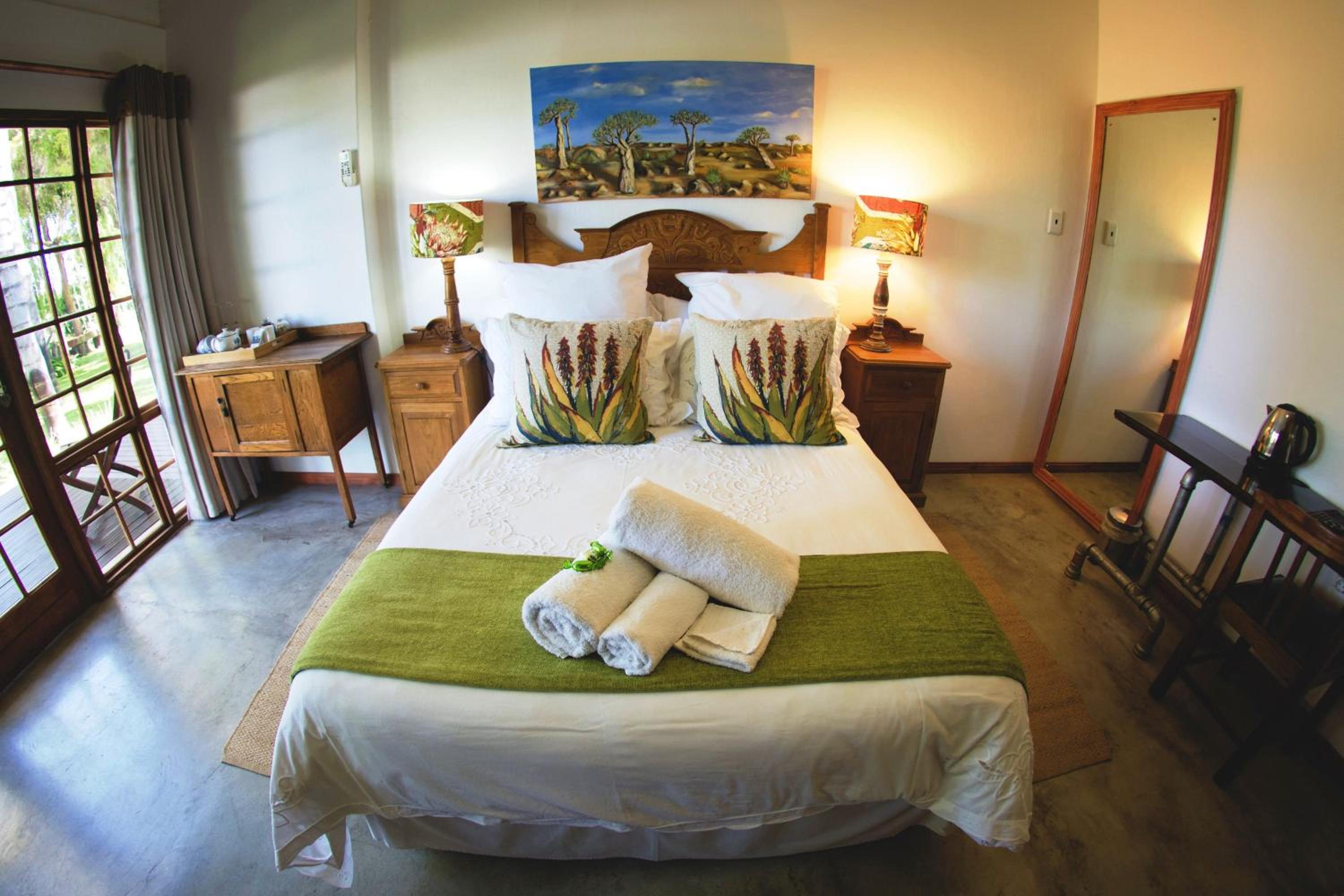 Nestled among picturesque vineyards on Kanoneiland, the 4-Star African Vineyard Boutique Hotel & SPA in Upington offers a luxurious retreat just a short drive from the city. The vine-themed rooms provide tranquil garden views, perfect for a relaxing stay.