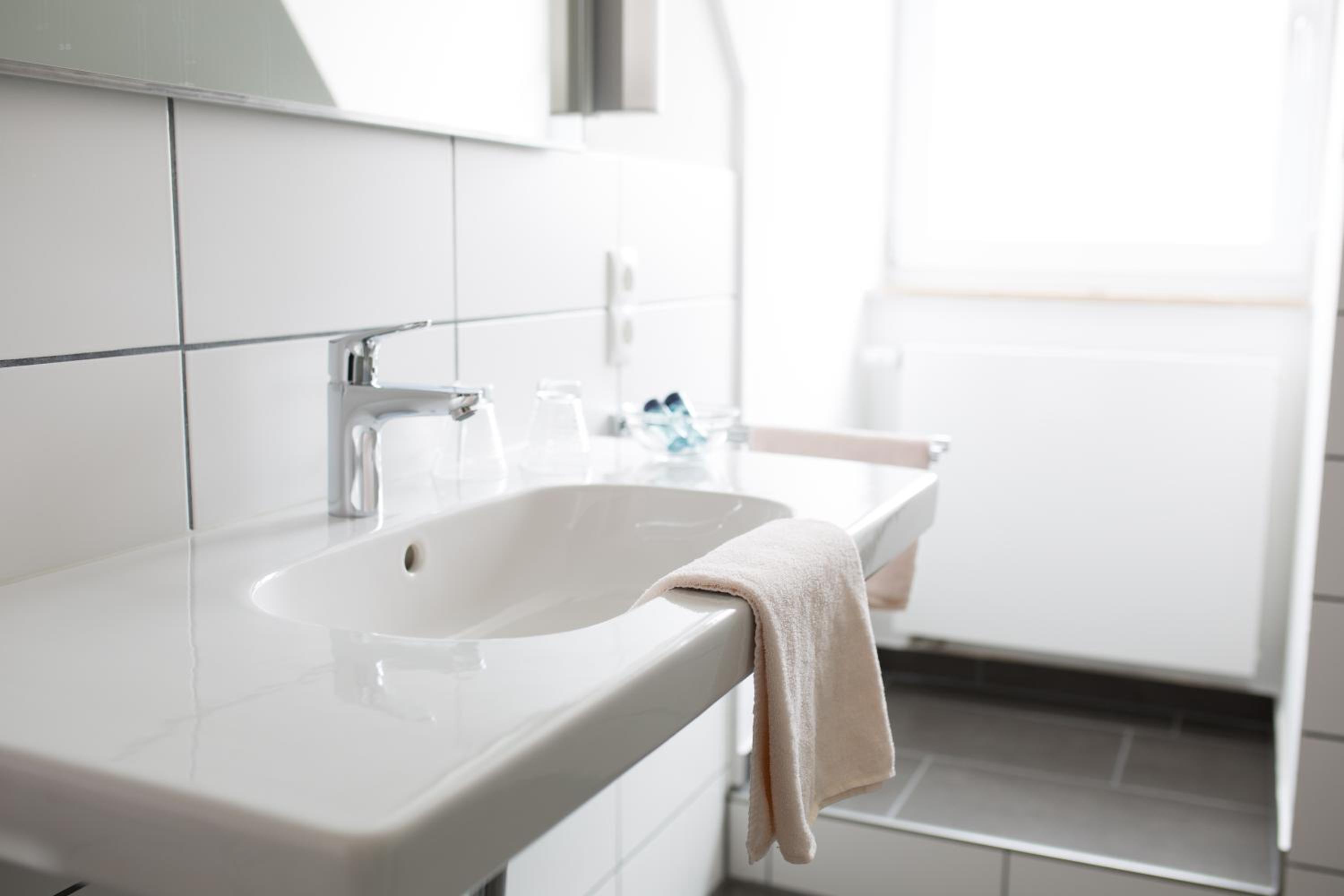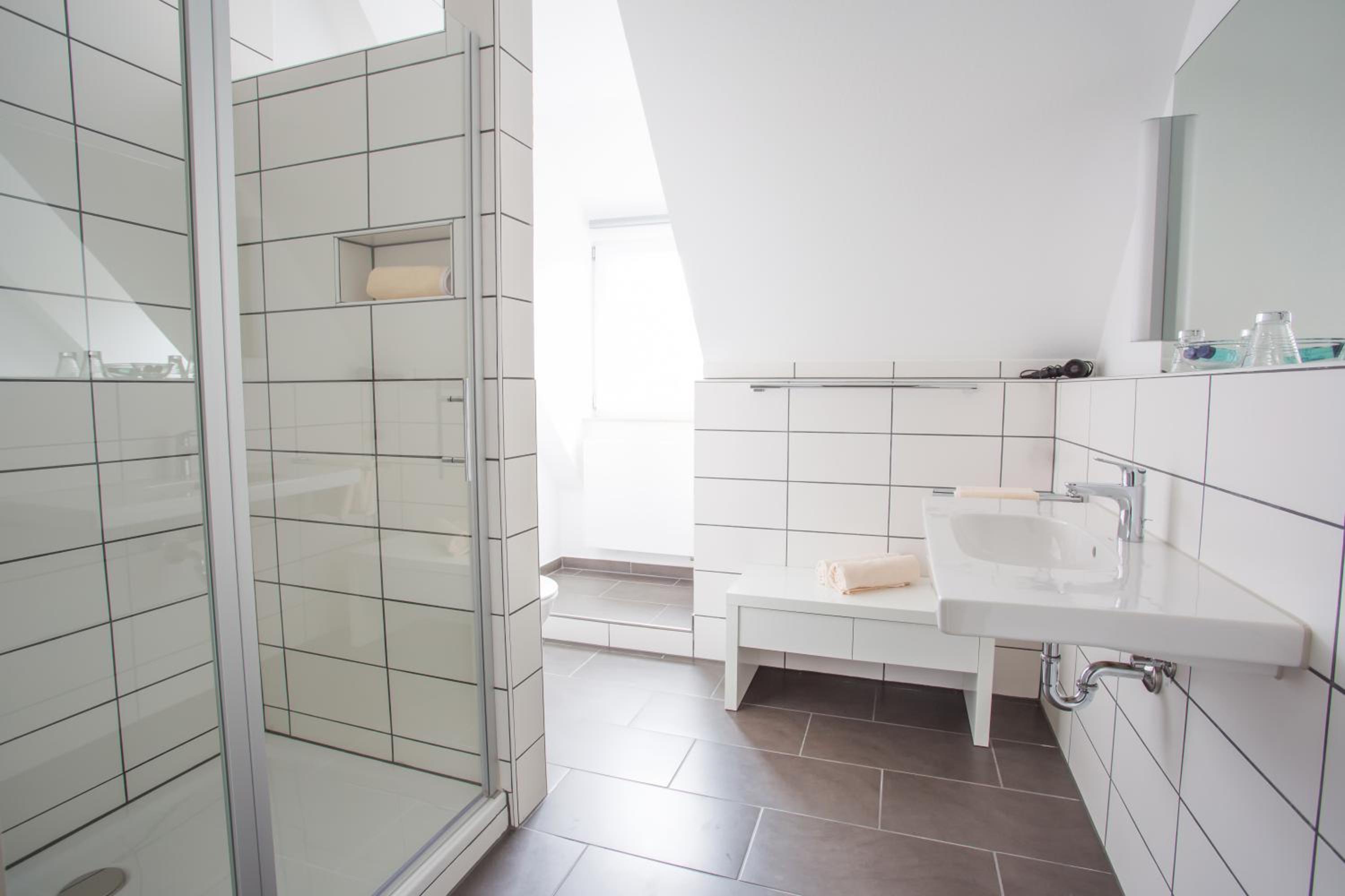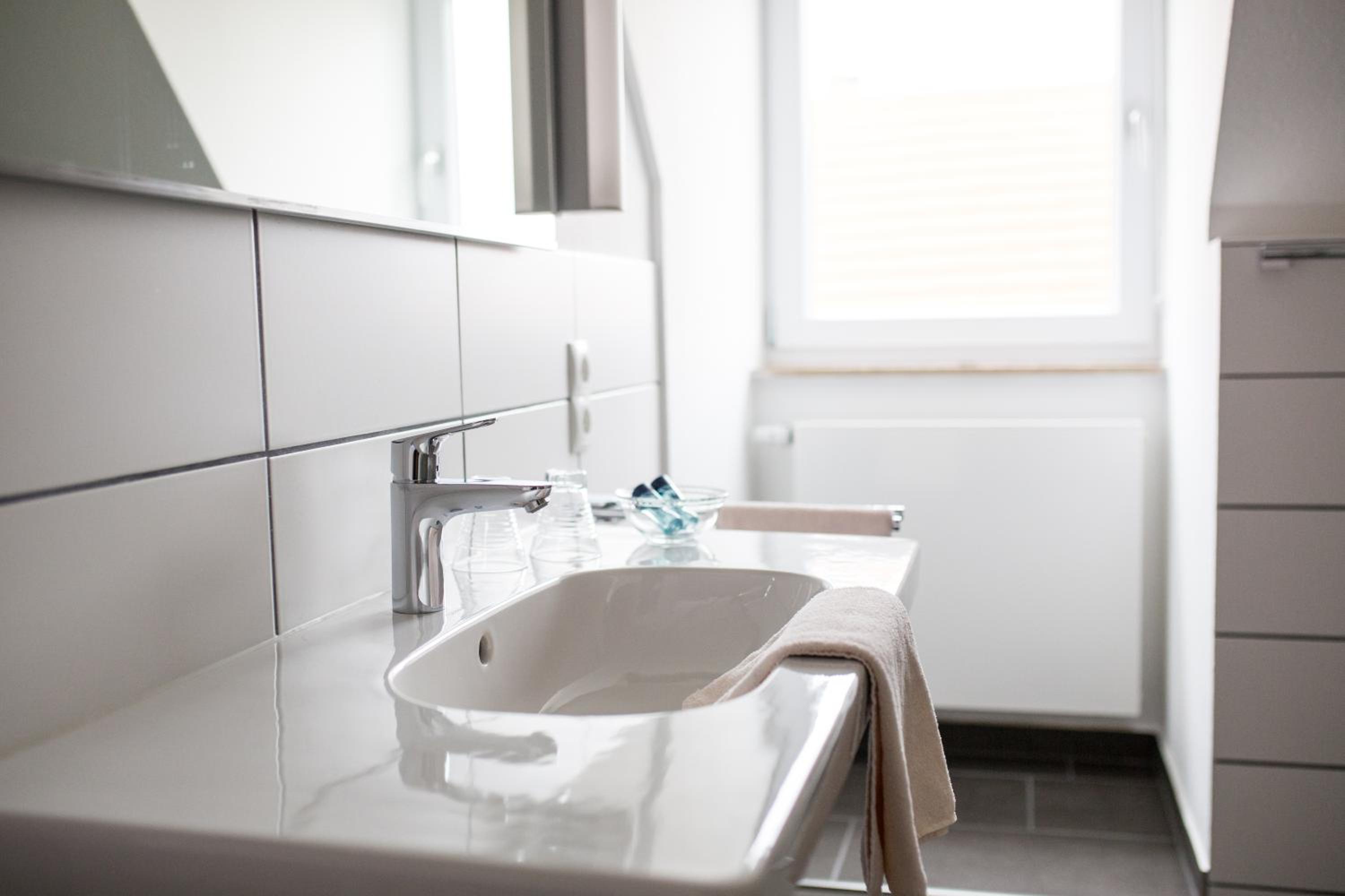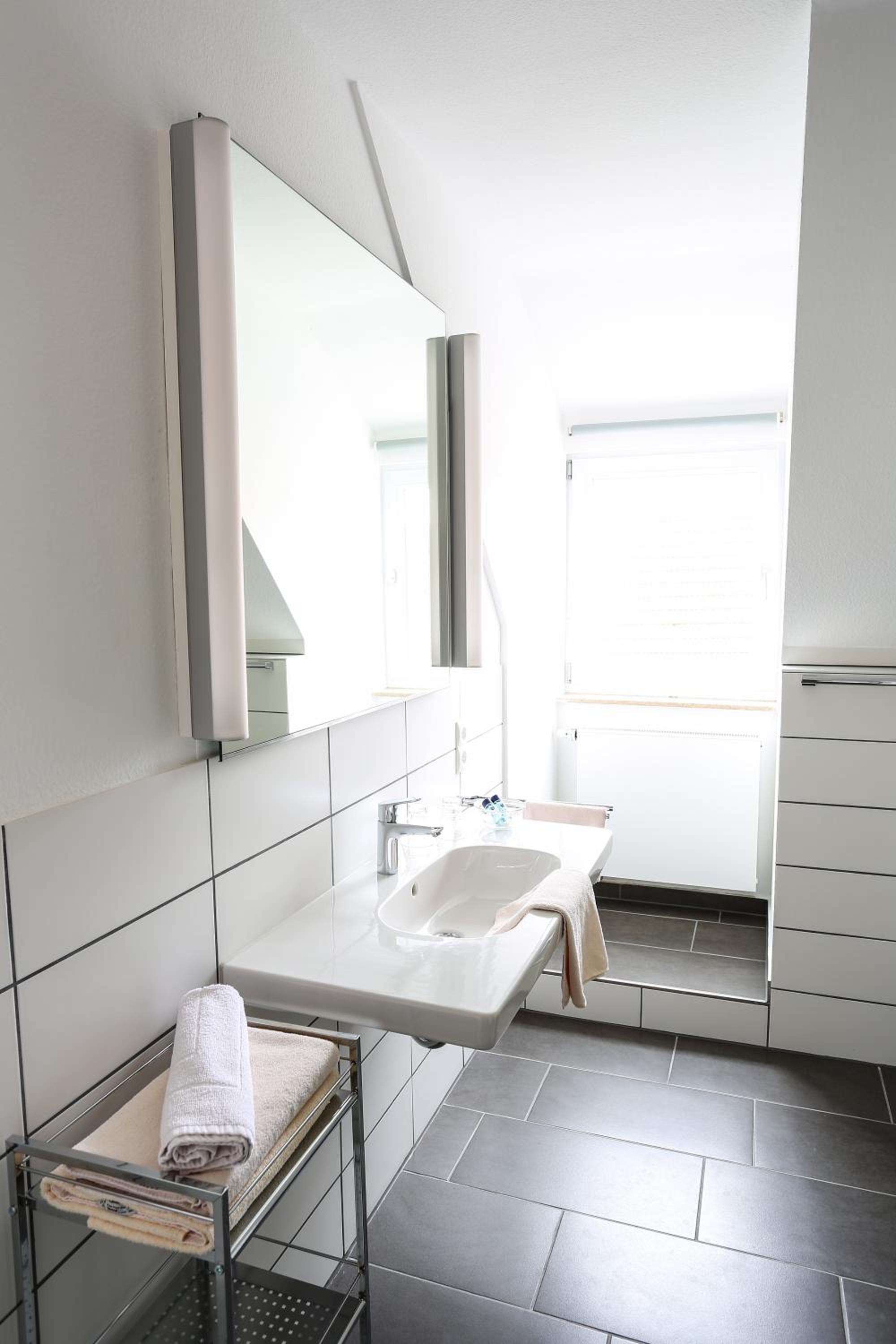 Ruhig gelegen, gut ausgestattetes Zimmer mit einem geräumigen tollen Bad.