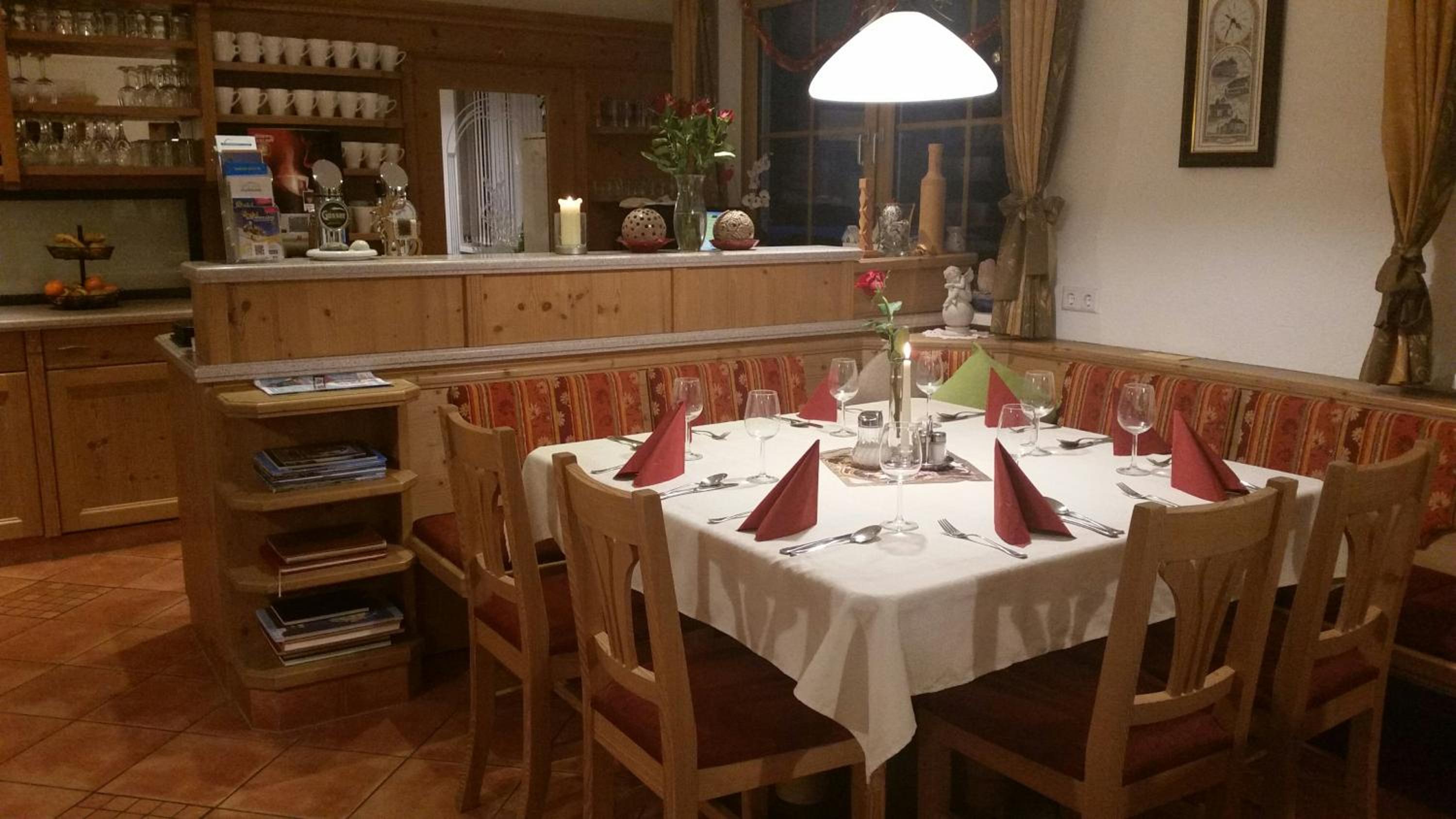 Der Aufenthalt in der Pension war sehr schön. Das Frühstück war reichhaltig, es gab von allem etwas. Zusätzlich wurden uns noch Rührei, Spiegelei oder weiche Eier angeboten. Der geheizte Skikeller und der Schuhtrockenraum sind auch sehr gut.