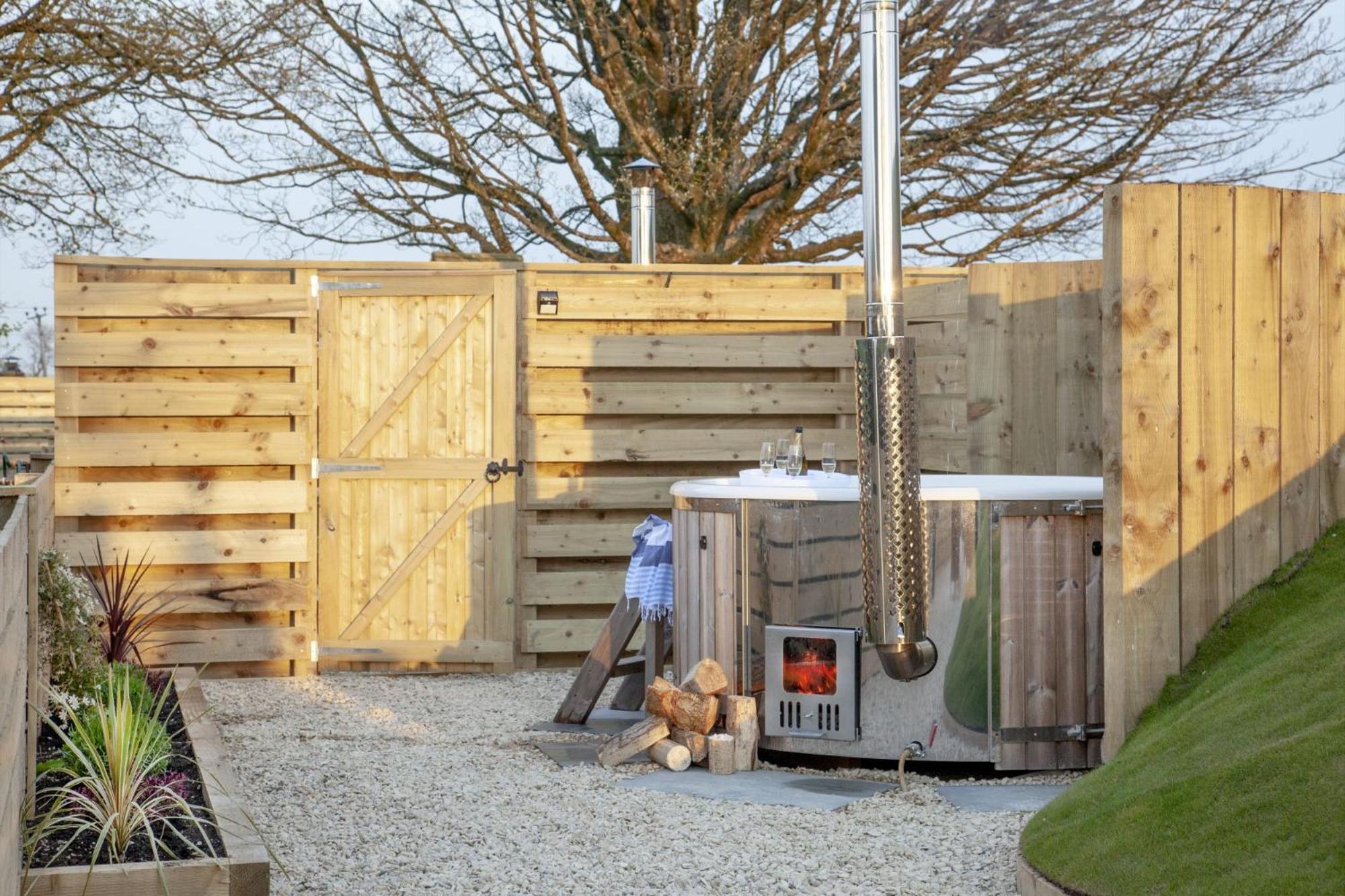 Indulge in the hot tub and enjoy the comfort of a fully equipped kitchen, flat-screen TV, and a private terrace with garden views.