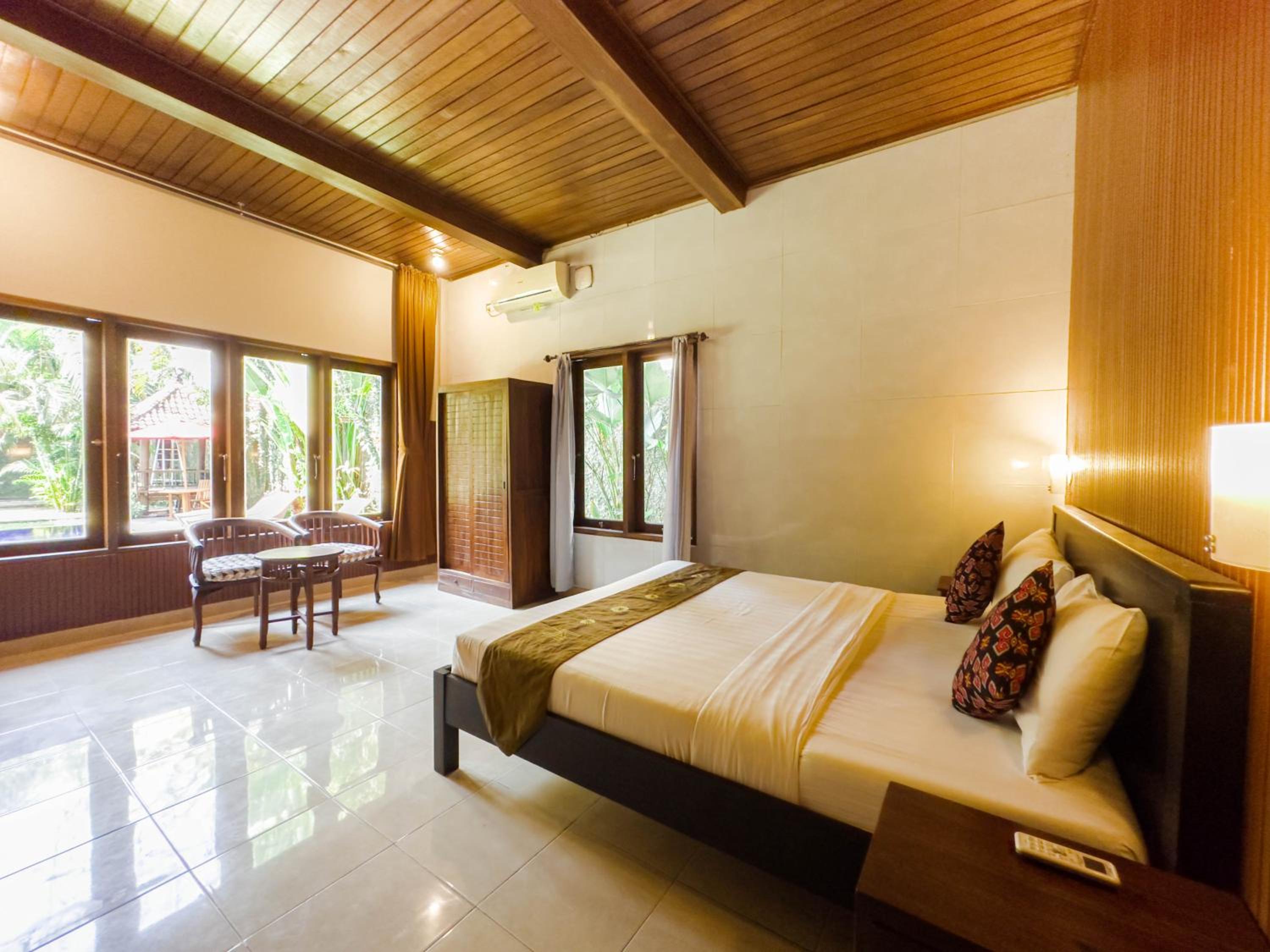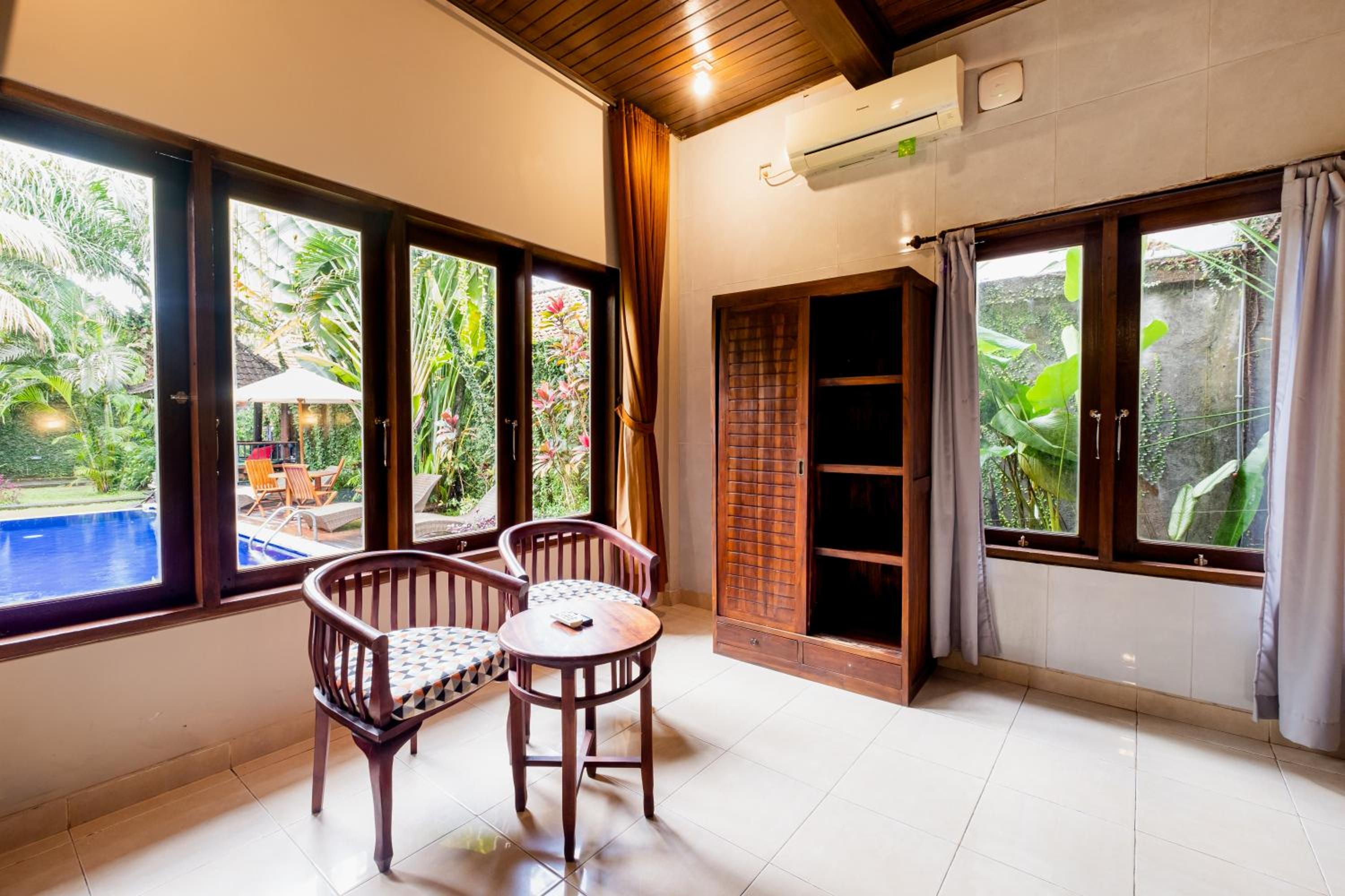 Indulge in the comfort of fully air-conditioned units with a fully equipped kitchen, private bathrooms with bathrobes, and free WiFi. Relax on the balcony with pool views or take a dip in the swimming pool.