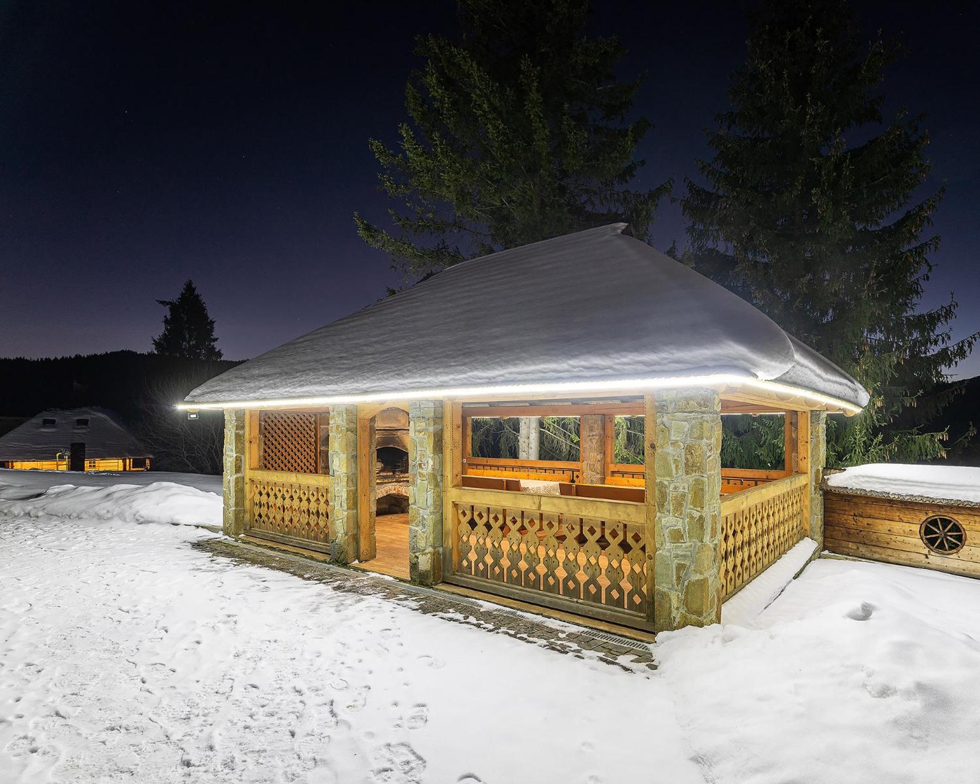 Чисто,гарні будиночки,привітний персонал,живий вогонь в каміні,великий балкон з чудовим краєвидом.Дуже гарне СПА.Затишне,комфортне,колоритне місце.Кожна деталь в номері продумана.Всі зручності для гостей були присутні