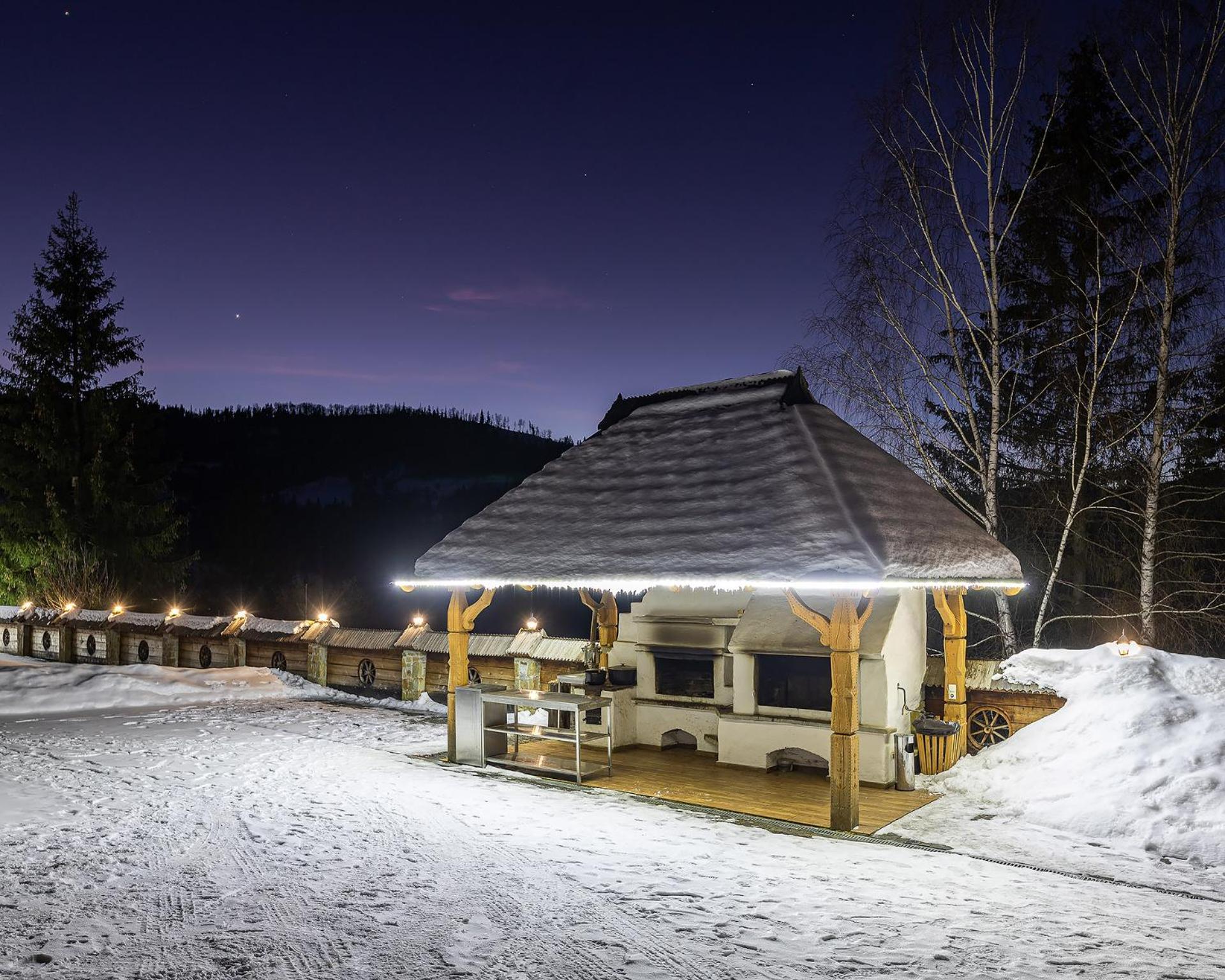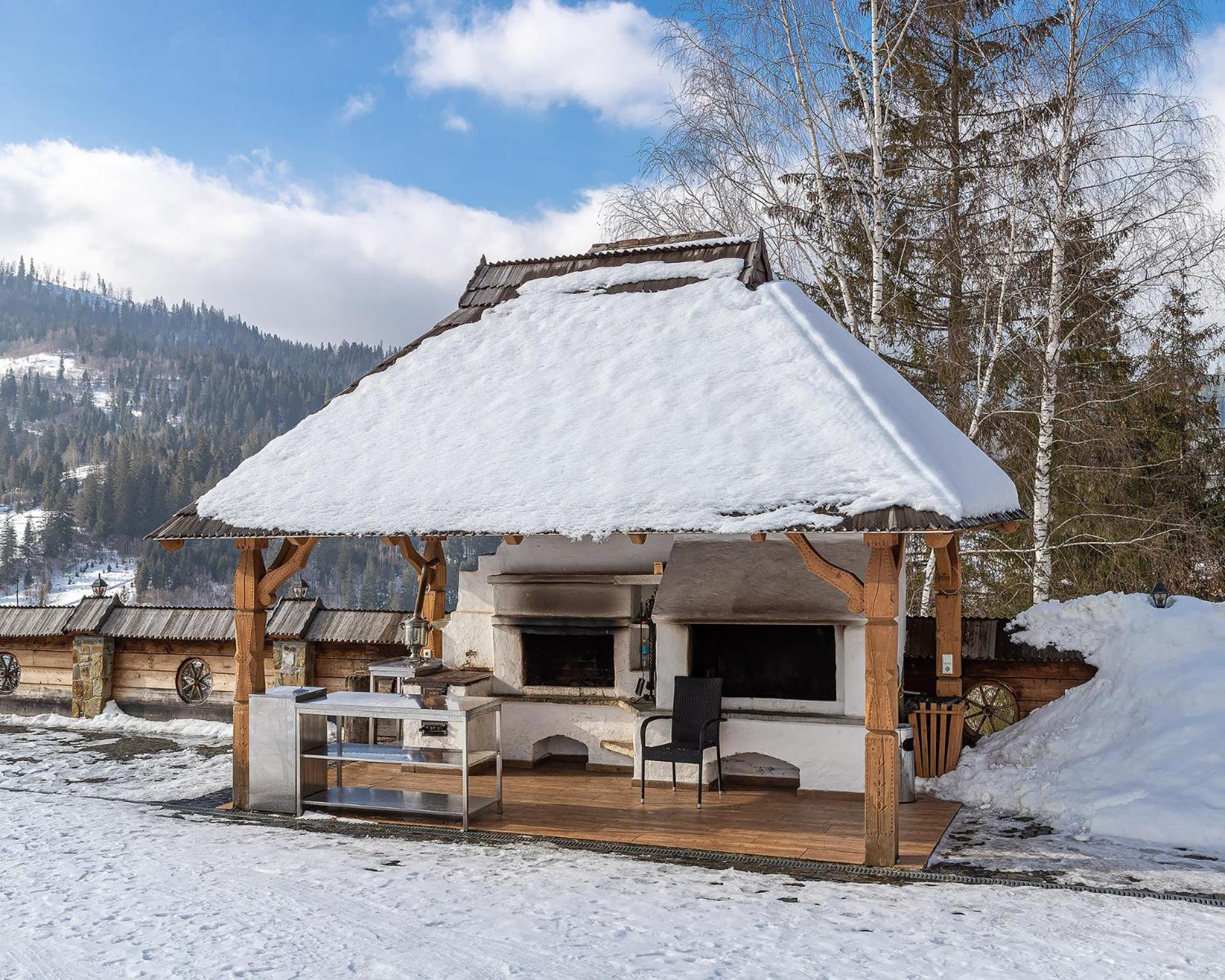 Indulge in breathtaking mountain views and cozy up by the outdoor fireplace at Апарт-Готель "Панщина".